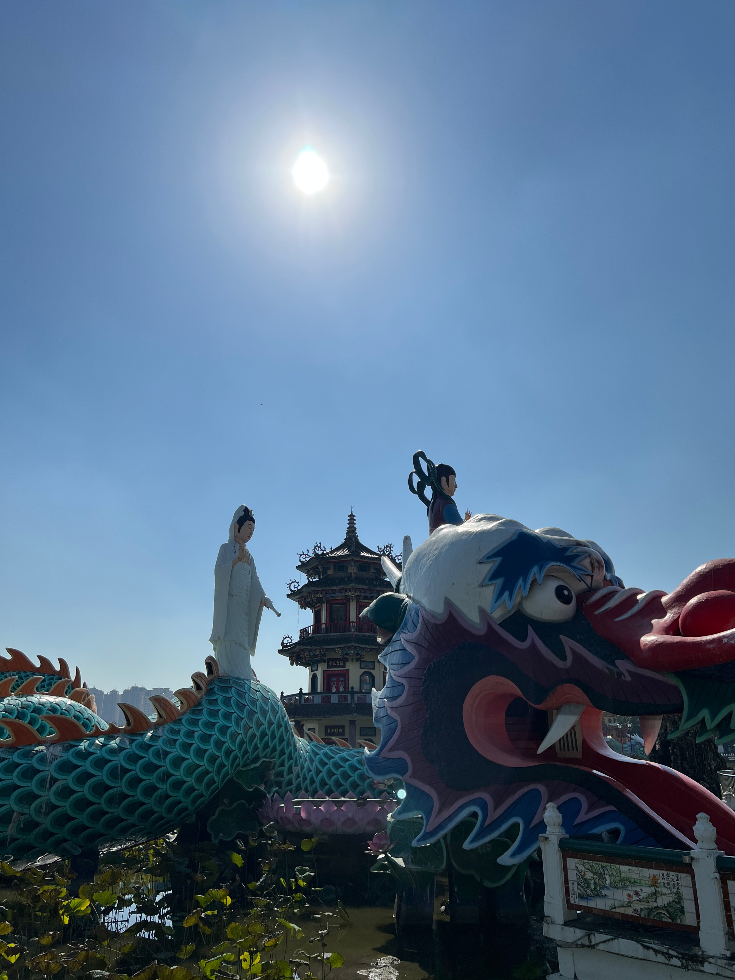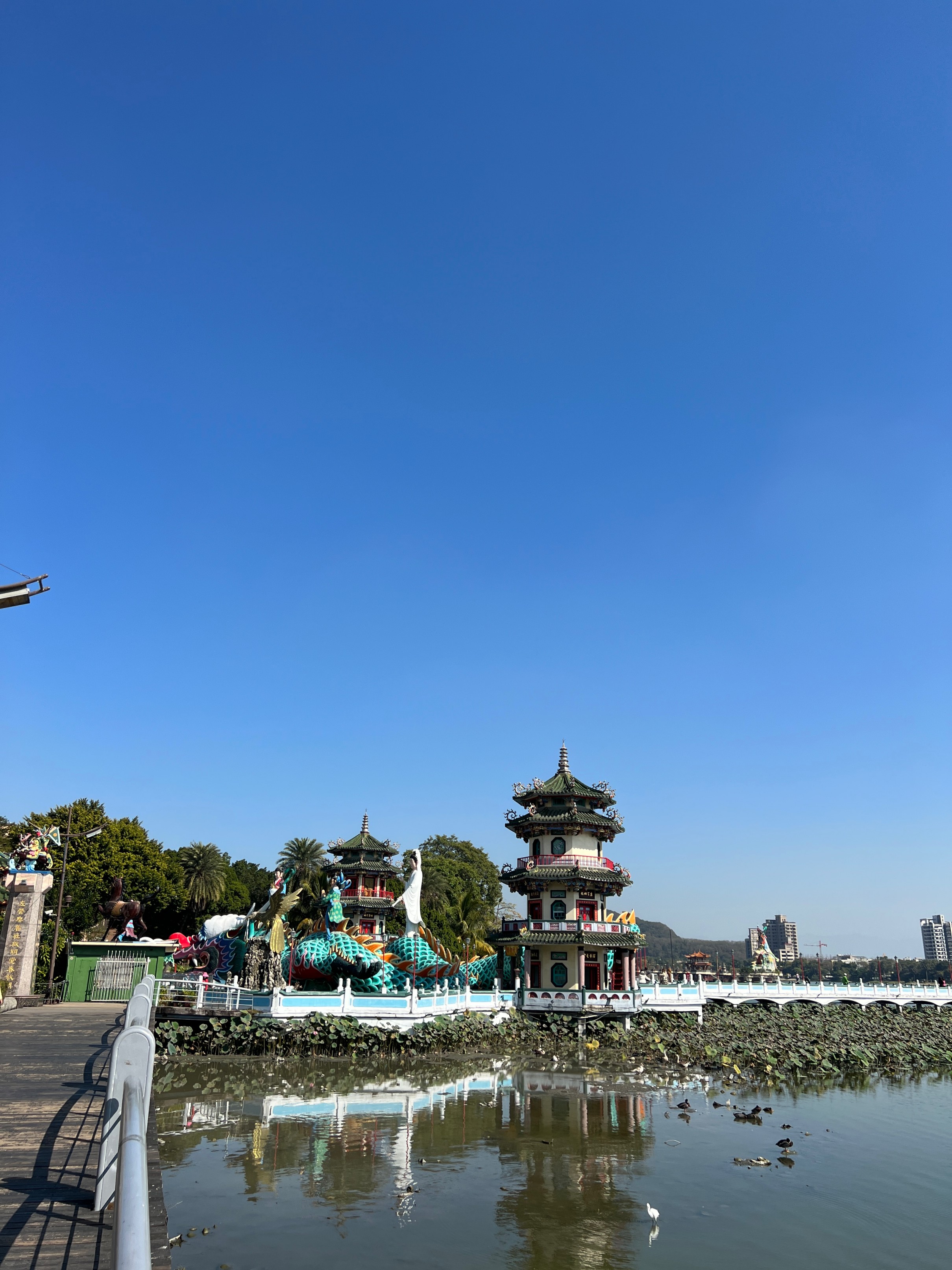 #용호탑 은 가오슝 여행 홍보 사진에 무조건 등장하는 그 호랑이랑 용이 있는 두개의 탑인데, 그 탑을 배경으로 사진을 찍으면 꽤 잘 나온다. 물론 날씨가 도와줘야겠지만. 원래는 안에도 들어갈 수 있다고 하는데 내가 갔을 때는 아쉽게도 안으로 들어가지는 못했다.