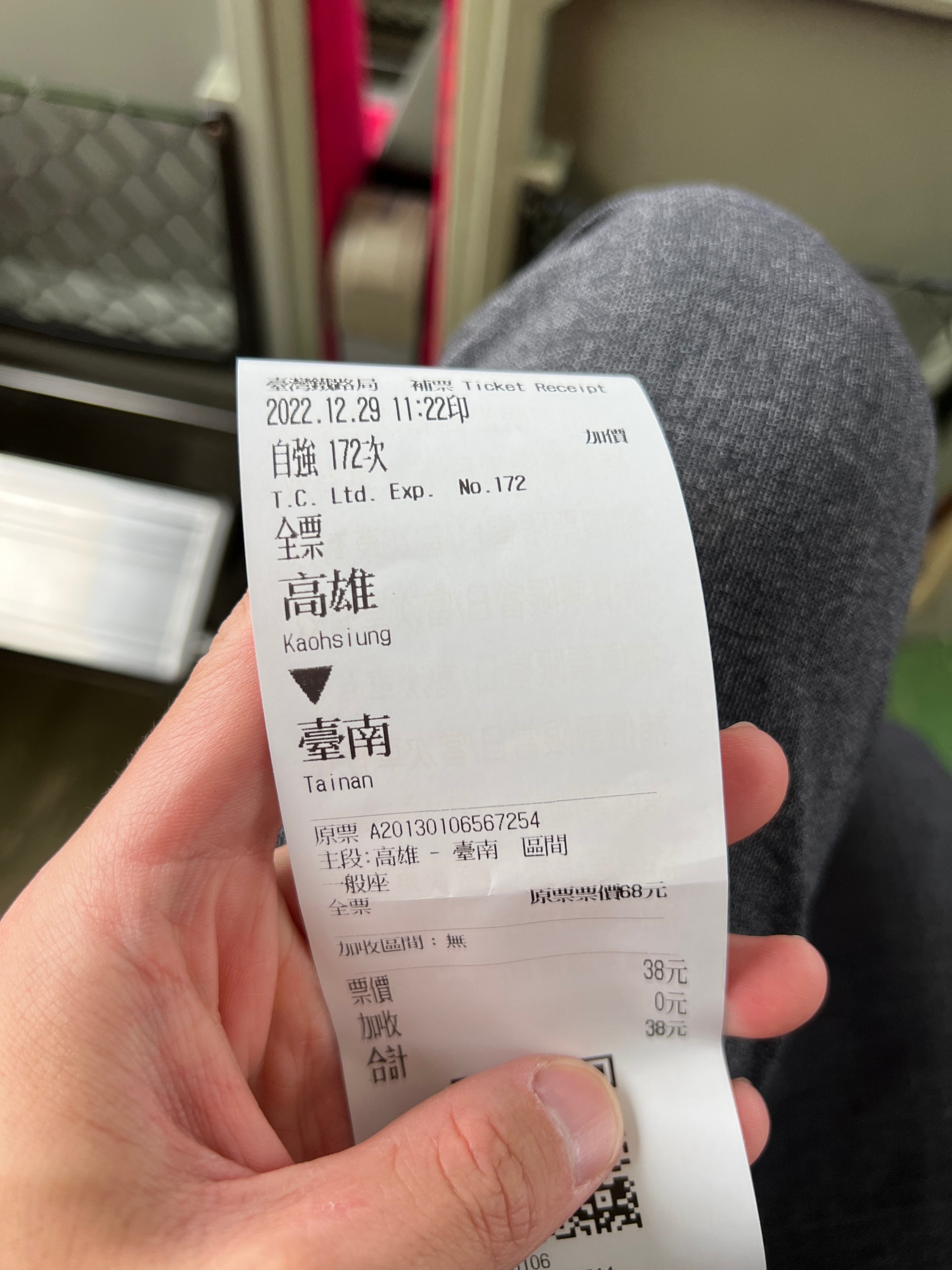 38TWD 추가결제. 우리 돈으로 2000원 정도의 차이니까 당연히 지정좌석 열차를 타는 게 훨씬 낫다.