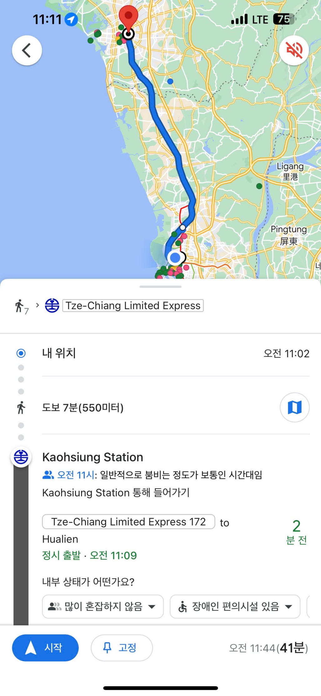 가오슝에서 타이난역까지는 약 40분 정도 소요된다.
