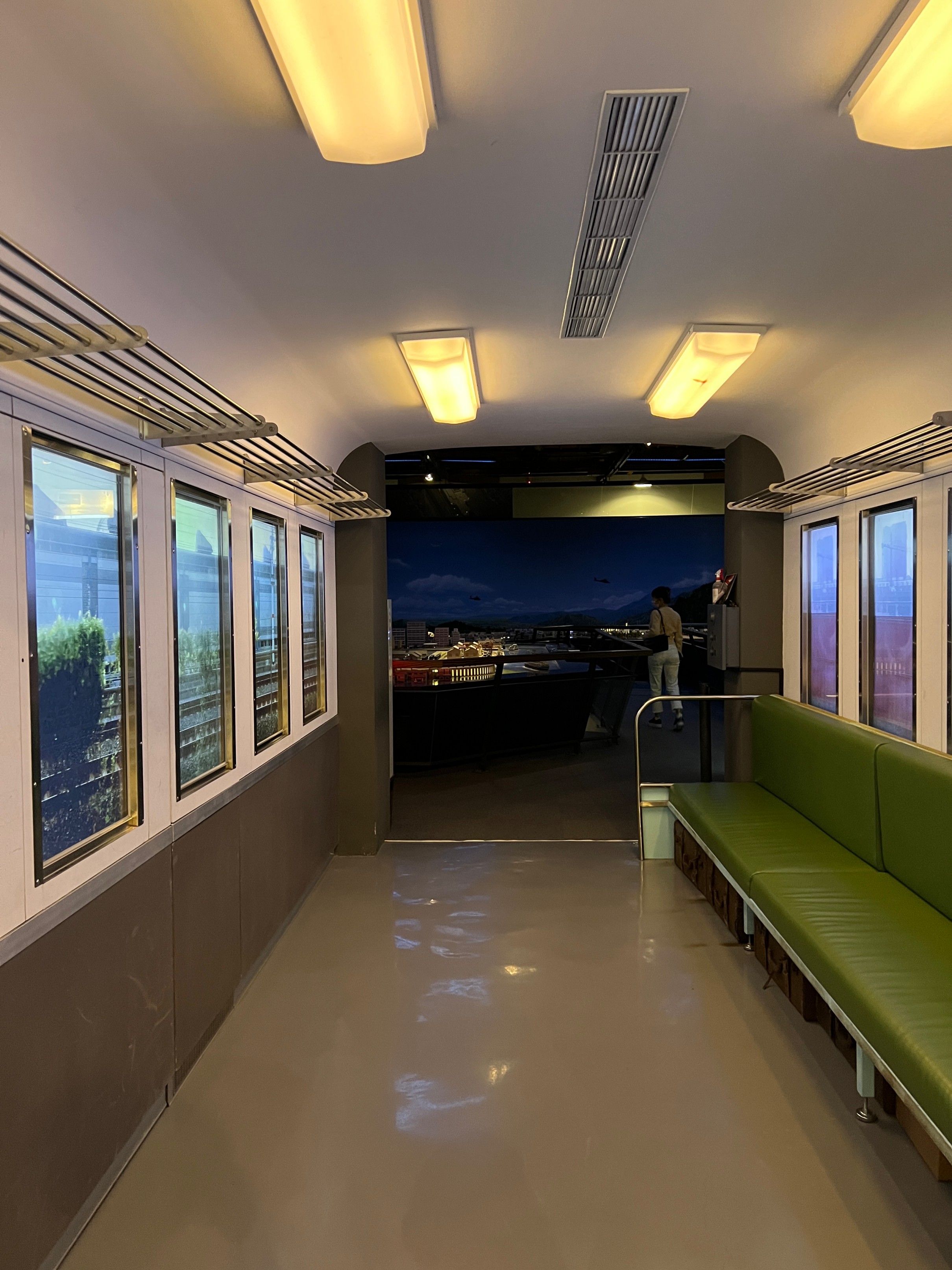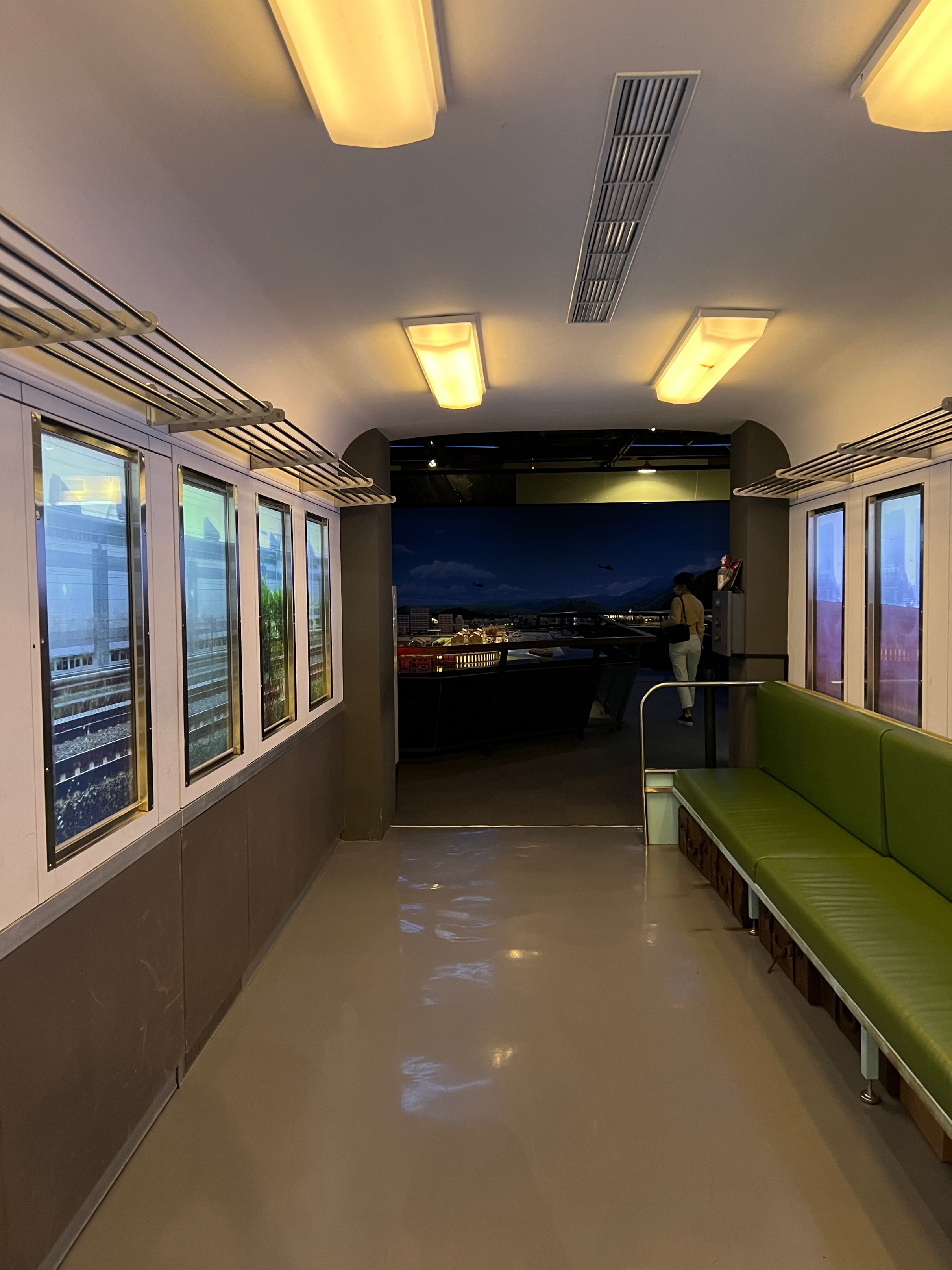 양쪽 사이드에 있는 모니터를 창문처럼 해두고, 실제 기차를 타고 풍경을 보는 것처럼 꾸며뒀는데 퀄리티가 괜찮았다.