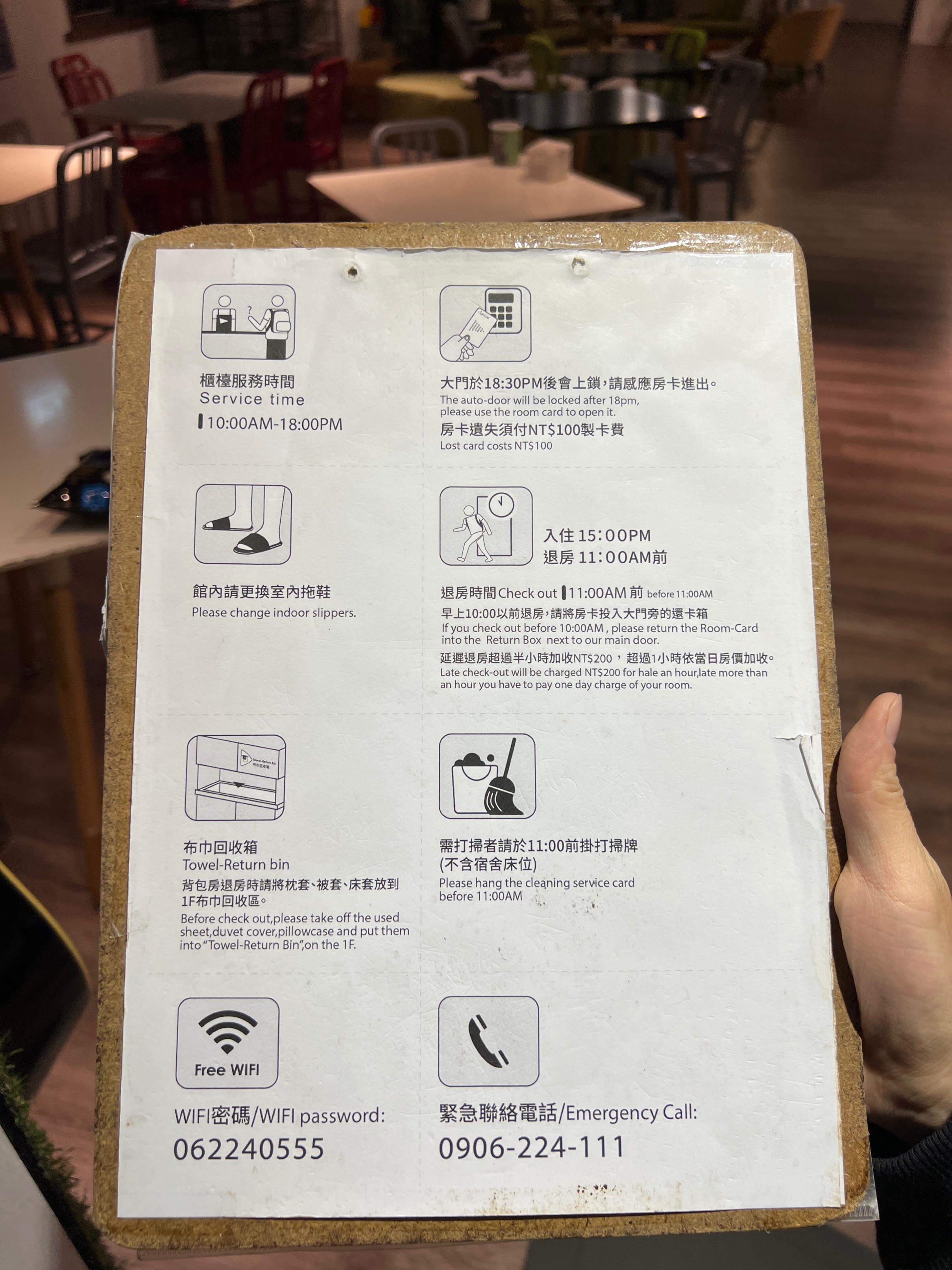 체크인 시간은 오후 3시부터, 그리고 체크아웃은 다음날 11시까지이다.