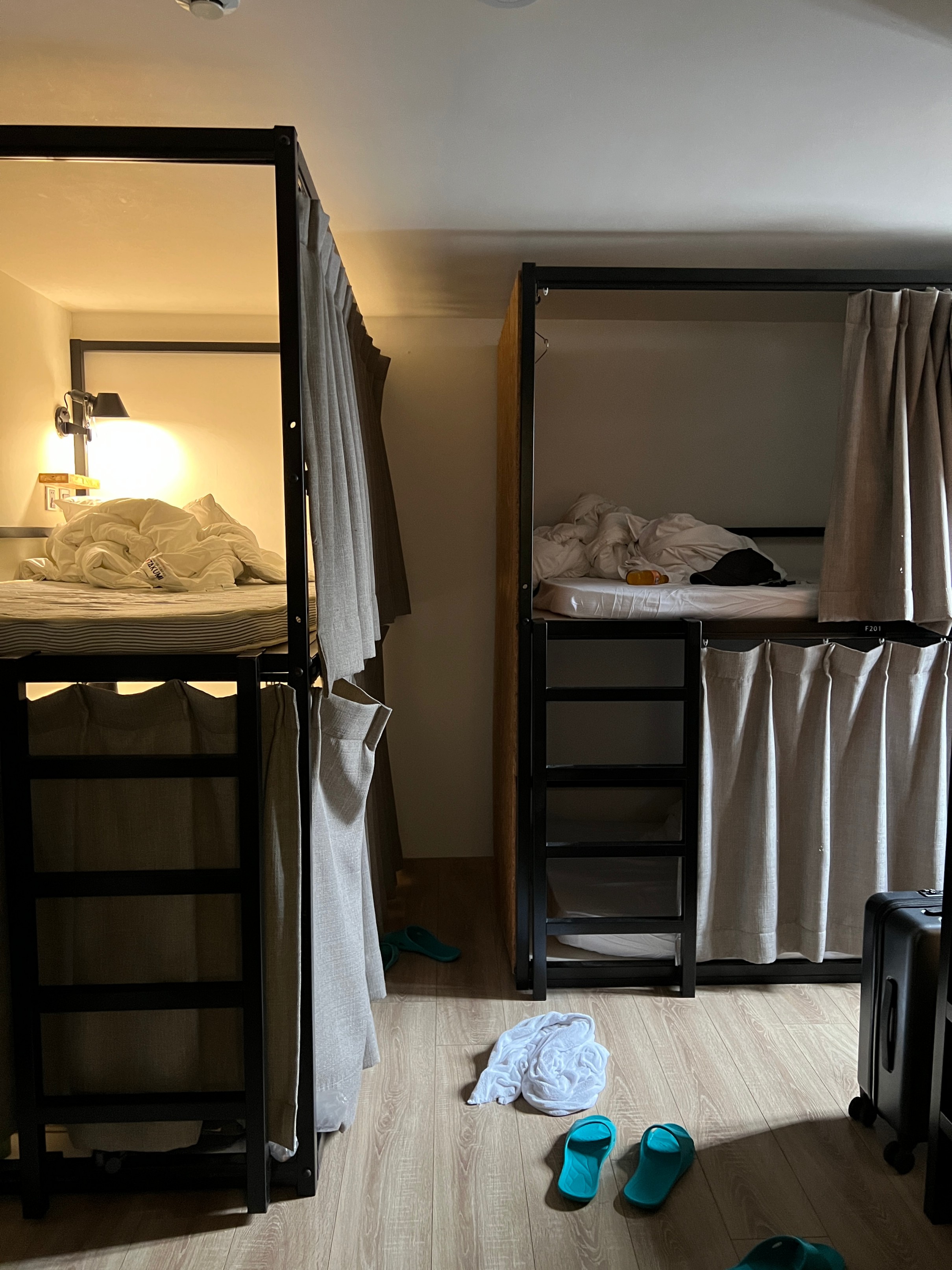 내가 묵은 방이 6인실이었던 걸로 기억하는데, 침대마다 커튼이 있고 조명도 따로 있어서 나름 프라이버시를 지킬 수 있다.