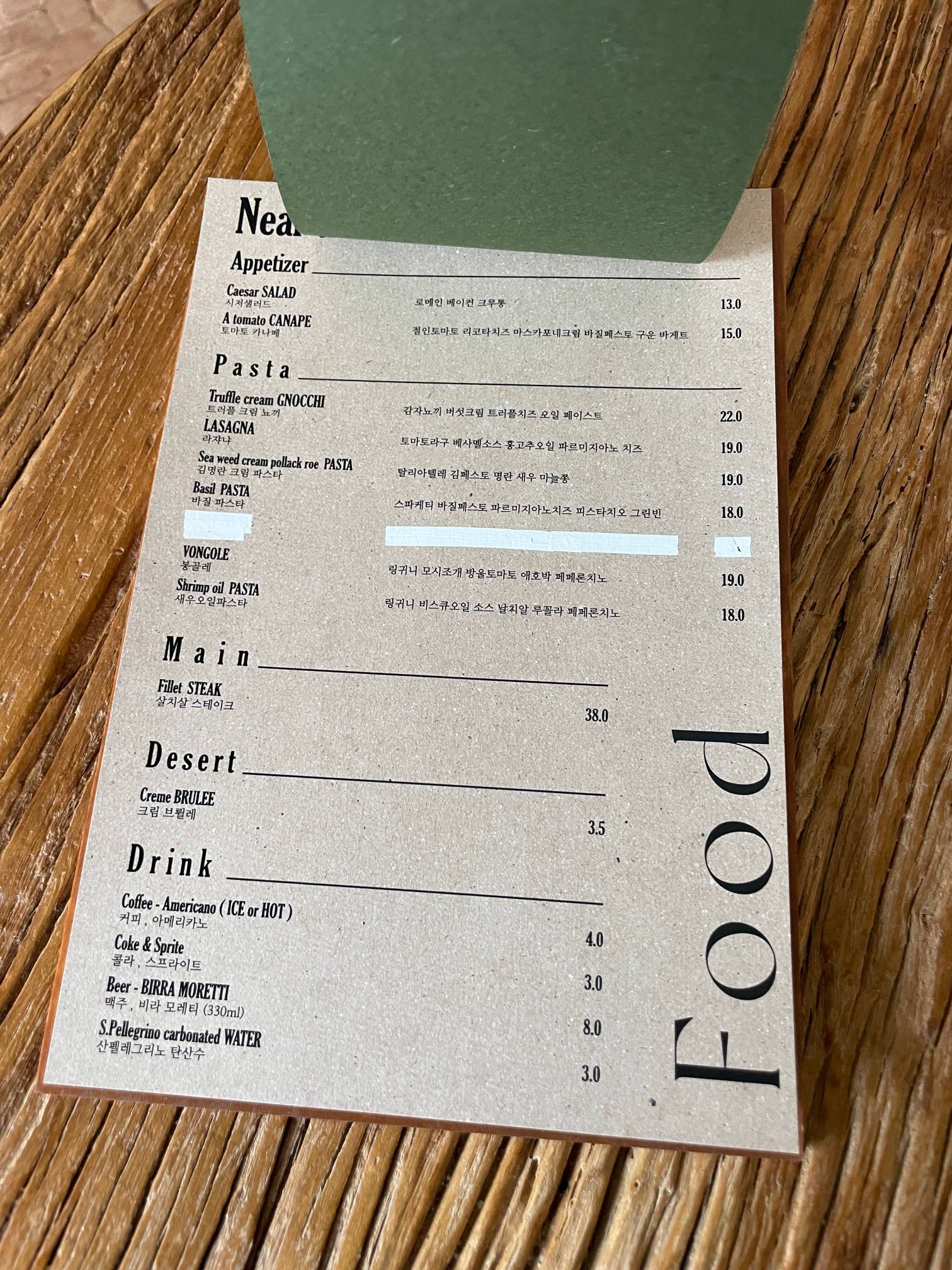 뒤에는 바로 음식 메뉴인데 저는 트러플 뇨끼와 김명란 파스타를 시켰습니다.