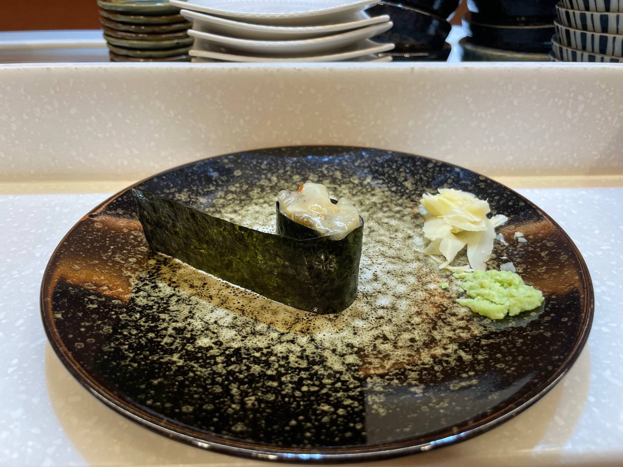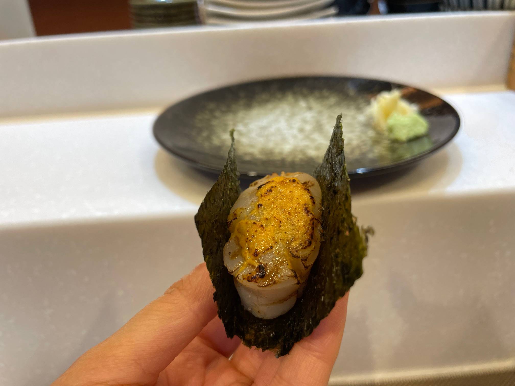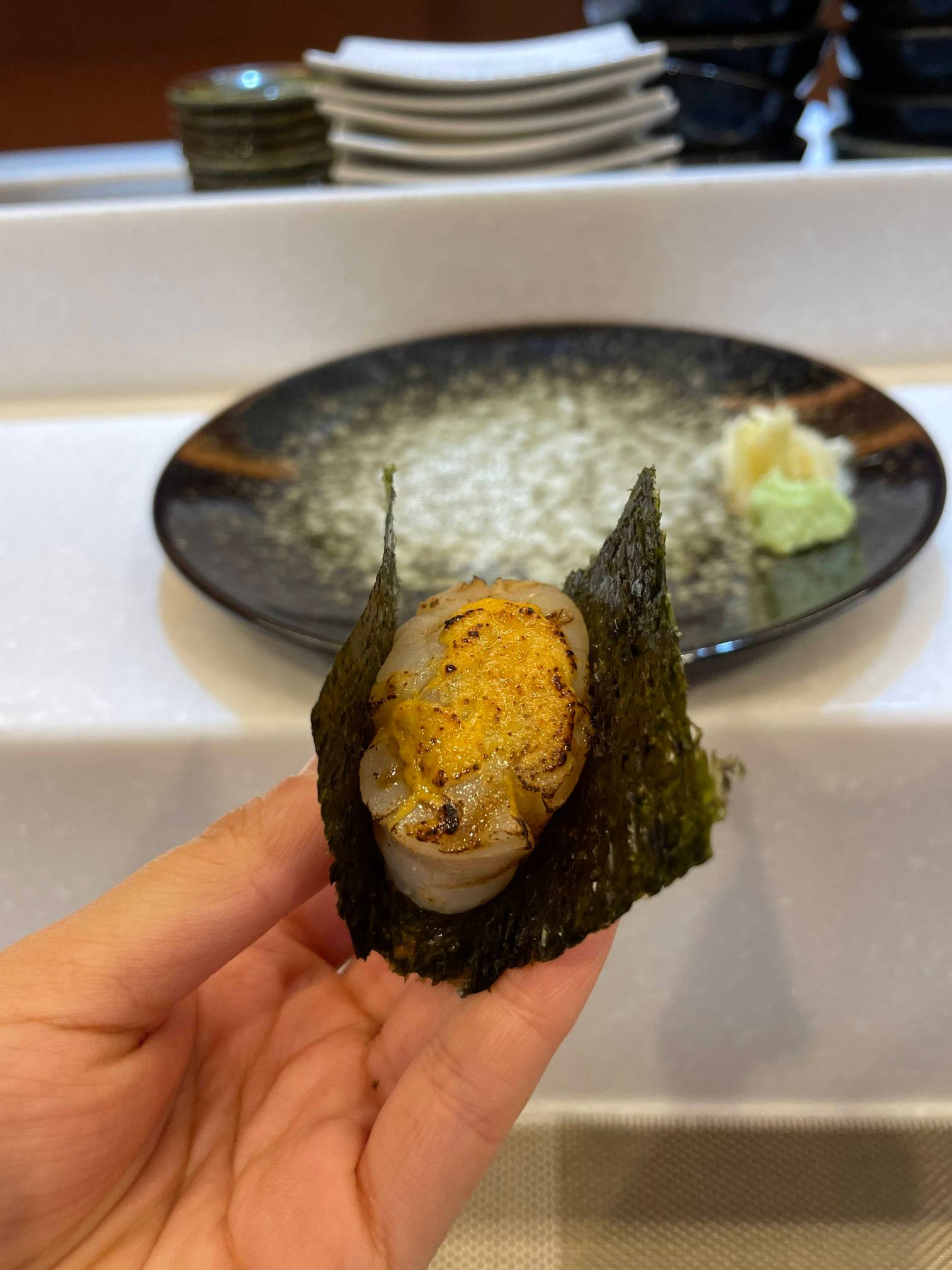 세번째로 가리비 관자에 성게를 살짝 올려서 나온 메뉴 꼭꼭 씹어 드시면 더 맛있더라구요