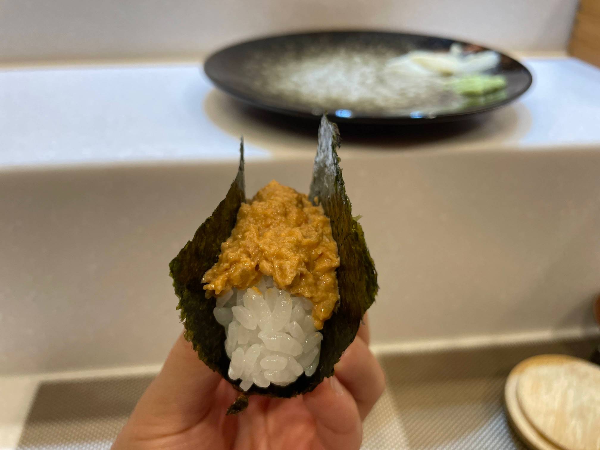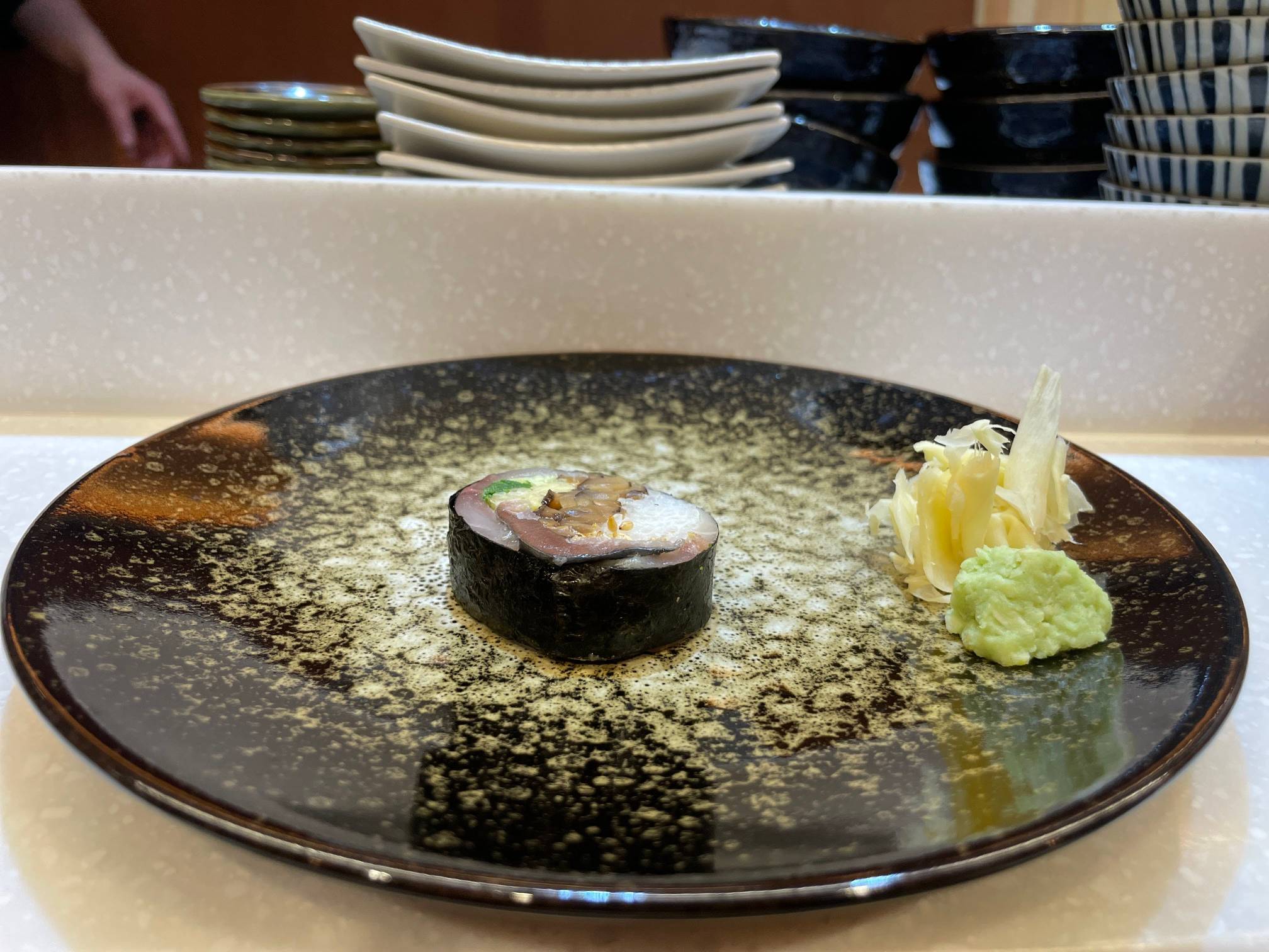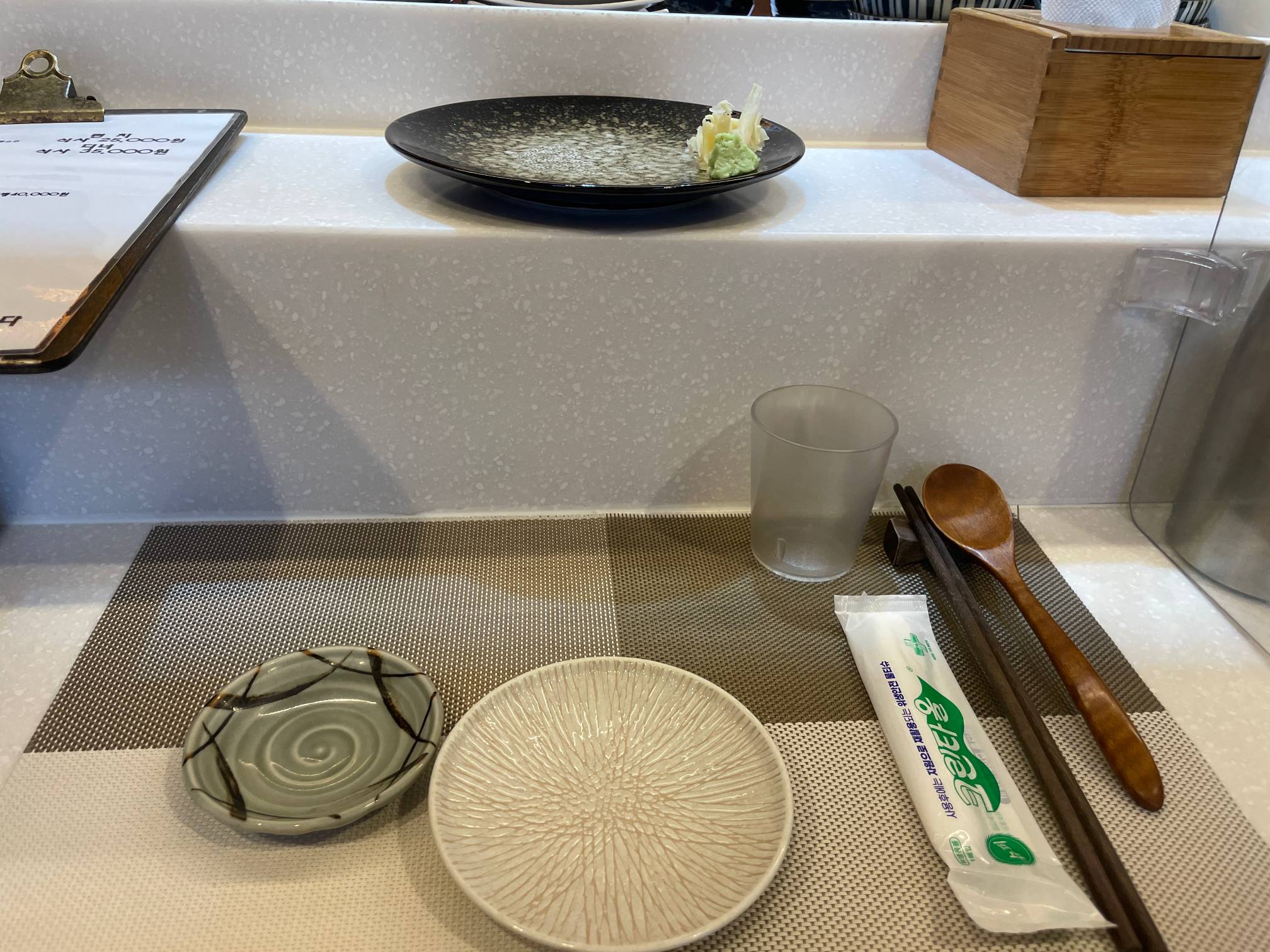 입장 순서대로 착석하는데, 팁을 하나 드리자면 쉐프님이 초밥을 만드는 모습 잘 보기 위해서는 문에서 들어가서 맨 안쪽 자리를 기준으로 5번 6번 자리가 좋을 것 같습니다. 그러면 바로 앞에서 쉐프님이 초밥을 만들어주시는 모습을 바로 앞에서 사진으로 담을 수 있습니다.
