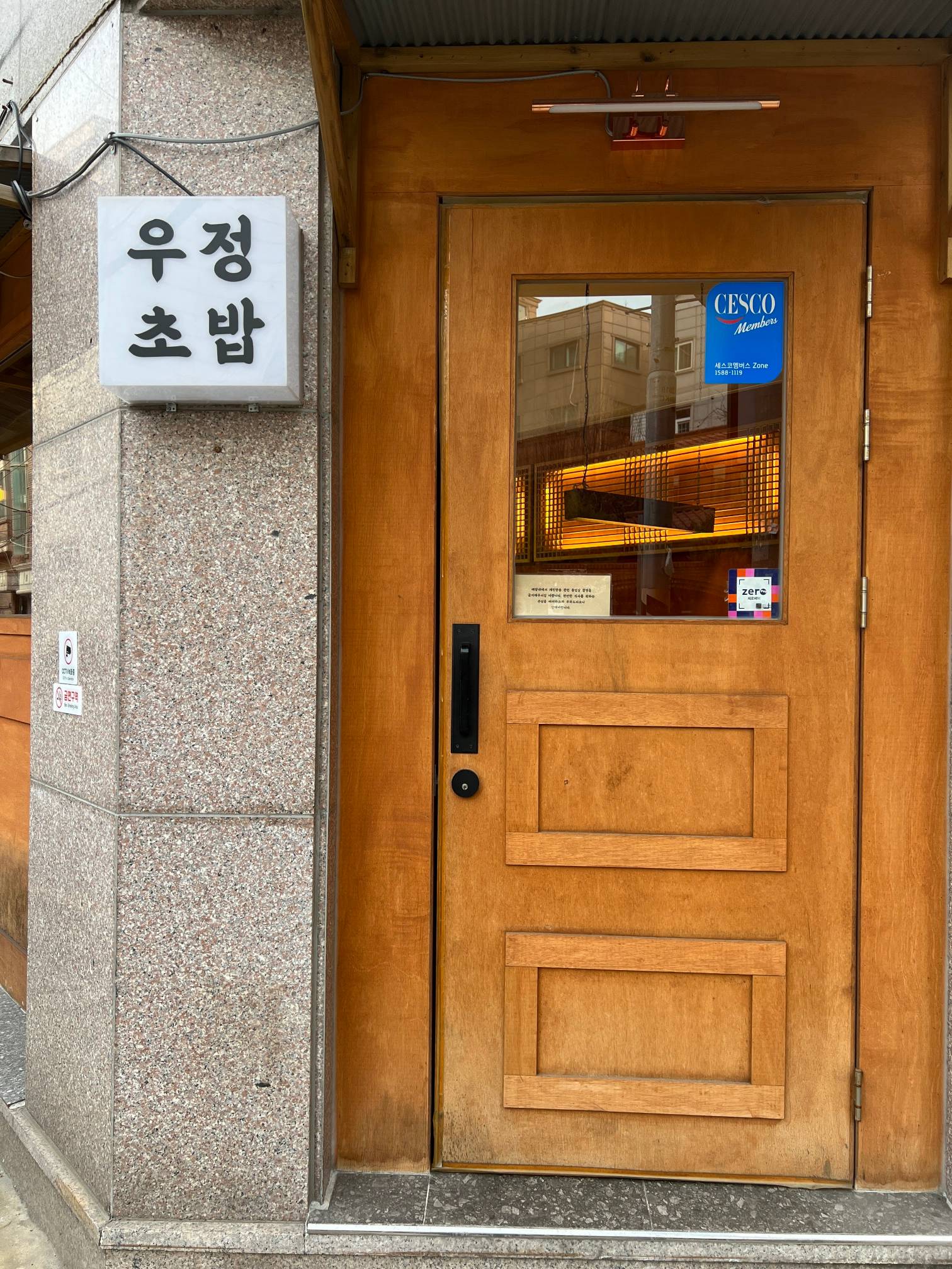 우정초밥 외관입니다. 고려대역 이번 출구 에서 도보 10분 이내로 도착할 수 있습니다. 골목 안이라서 주차가 쉽지 않기 때문에 차라리 도보로 이동하는 걸 추천합니다.