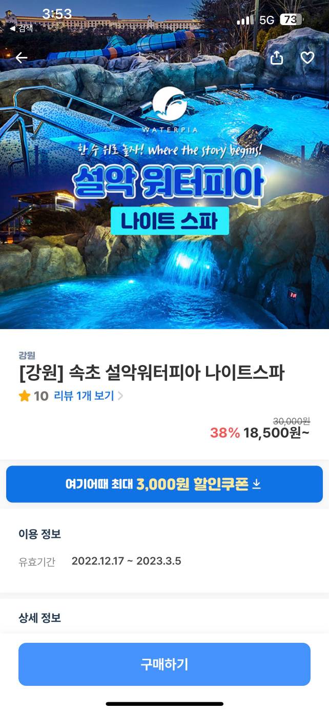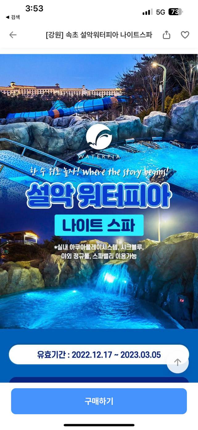 이번에 소개할 곳은 국내 겨울온천 여행 필수코스. "설악 워터피아 나이트스파"이다.