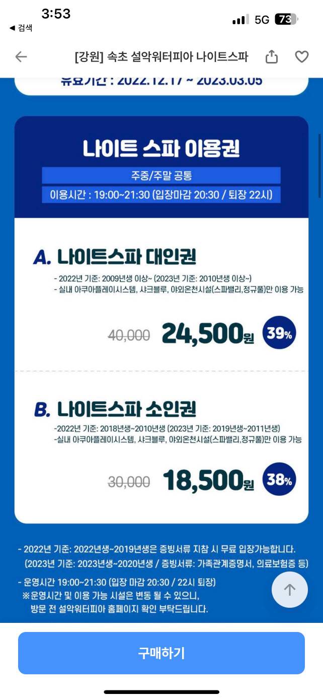 참고로 나이트스파는 올해 3월 5일까지 운영하니 운영기간이 얼마 남지 않았다.