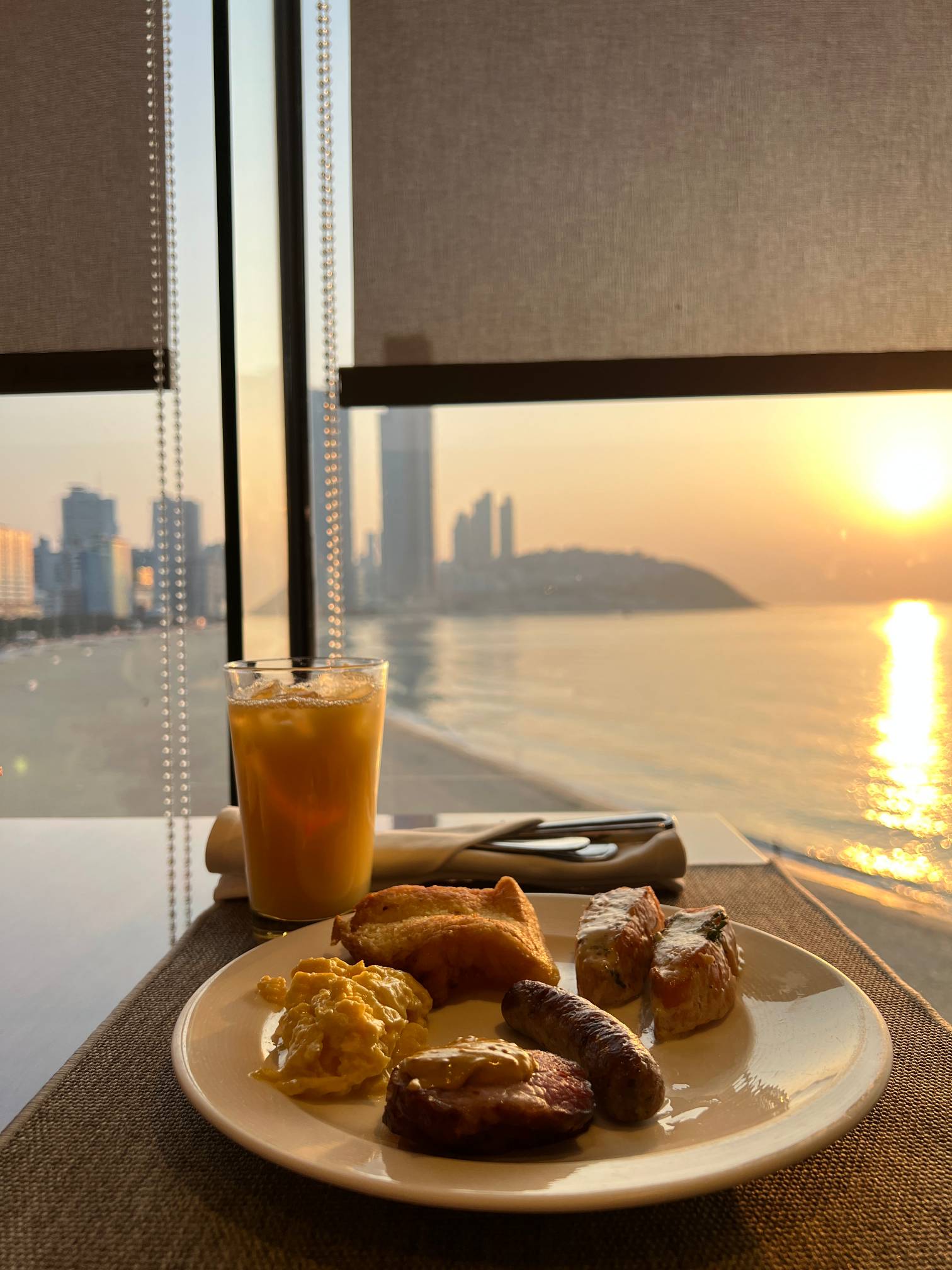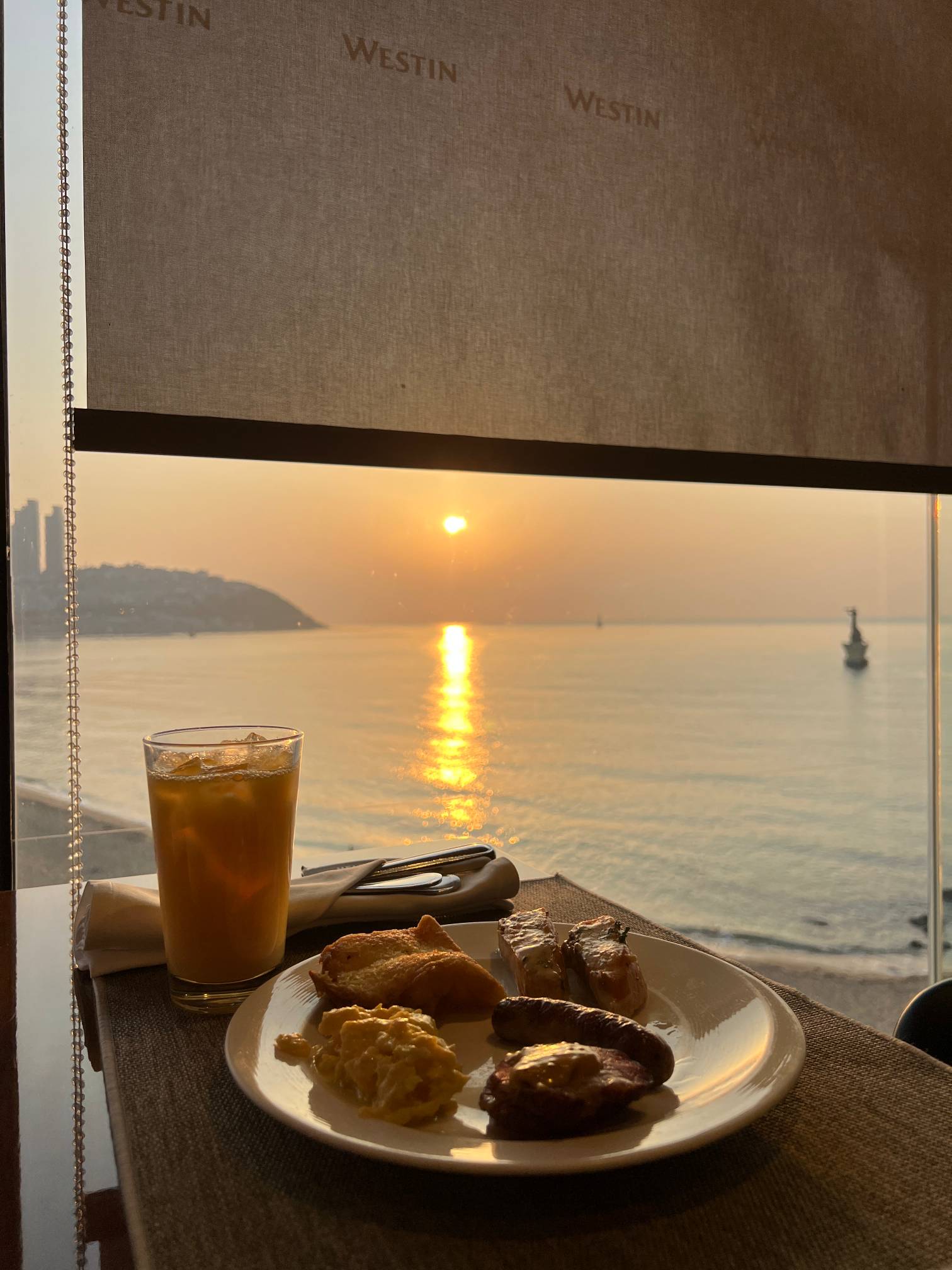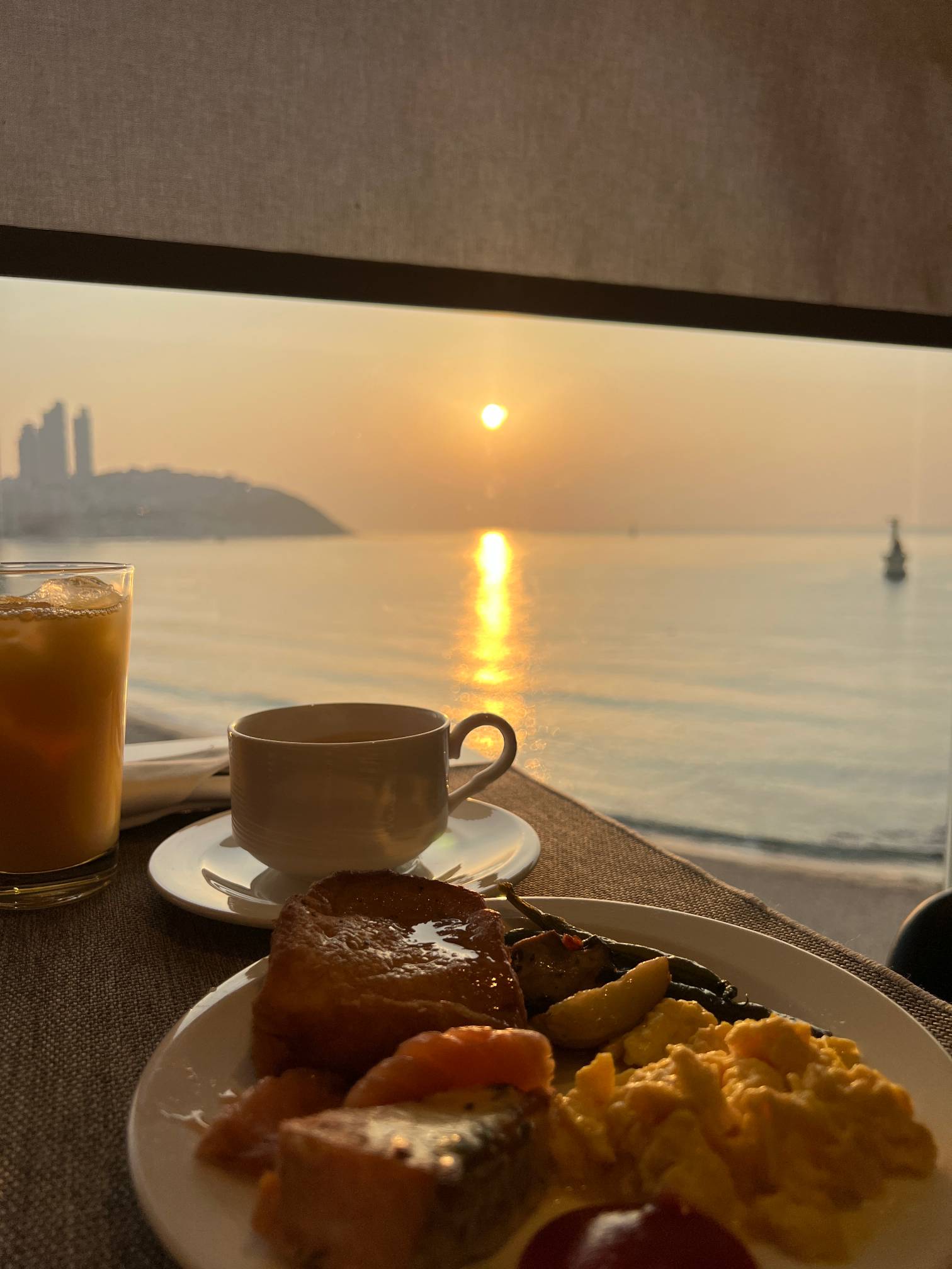 뭐 햇빛 때문에 어쩔 수 없는 거기는 한데, 차라리 전날 오후에 탁 트인 오션뷰 보기를 잘한 듯.