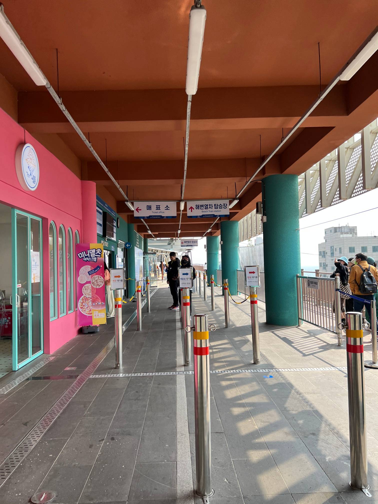 원래는 저기 왼편에 있는 매표소에서 표를 구매해서 오른쪽에 있는 탑승장에서 시간 맞춰서 탑승을 하면 되는데,