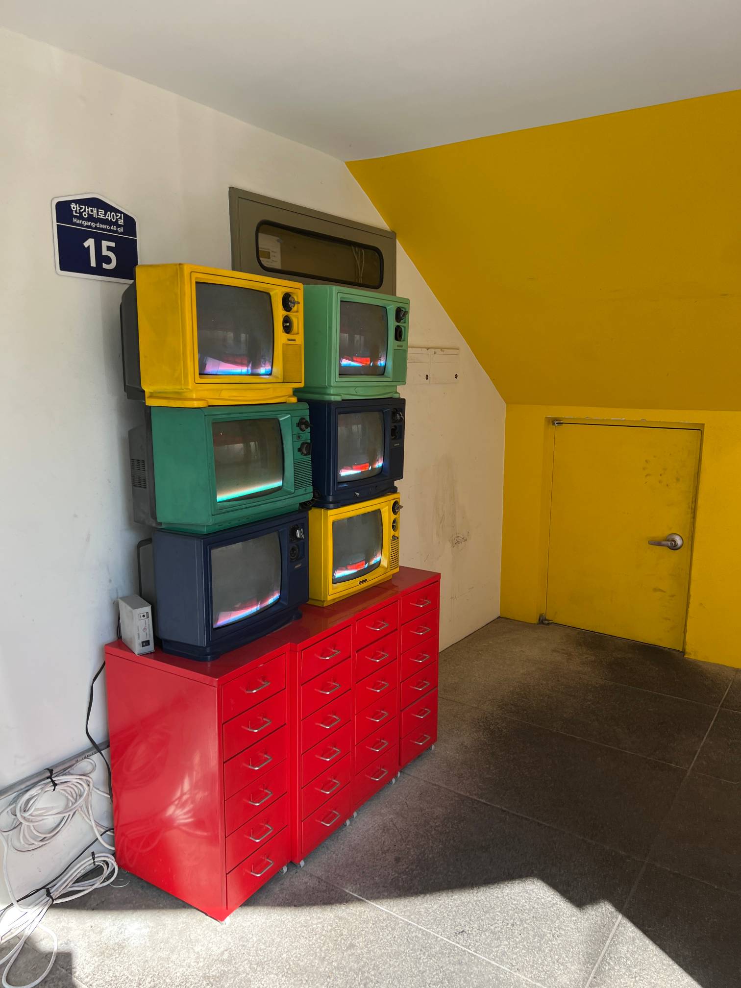 이런 레트로한 티비로 바깥을 꾸며두고 있다.