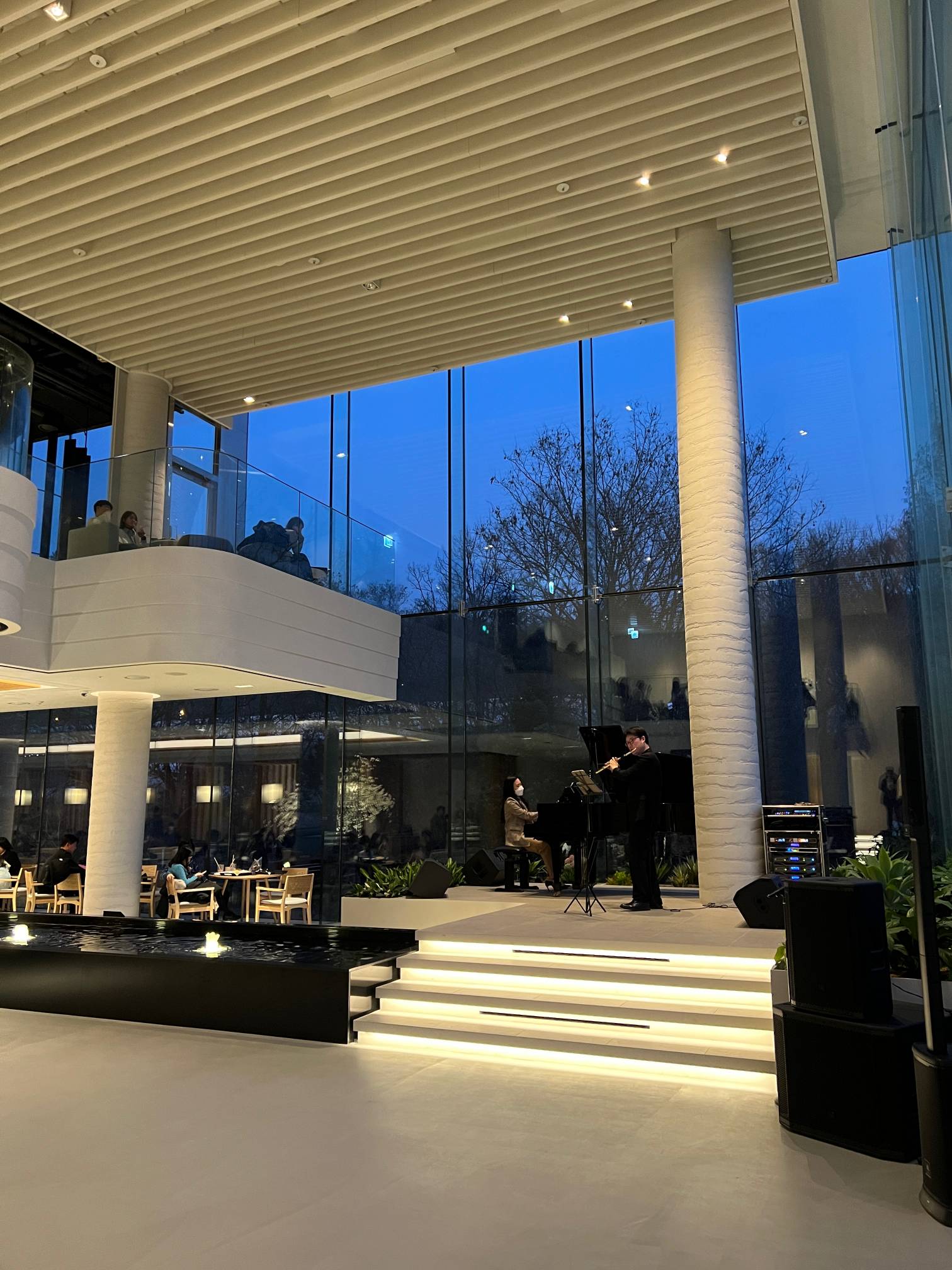 3층에 있다가 어디선가 플룻 소리가 들려서 내려다보니 2층에서 저렇게 피아노와 함께 공연을 하고 있었다.