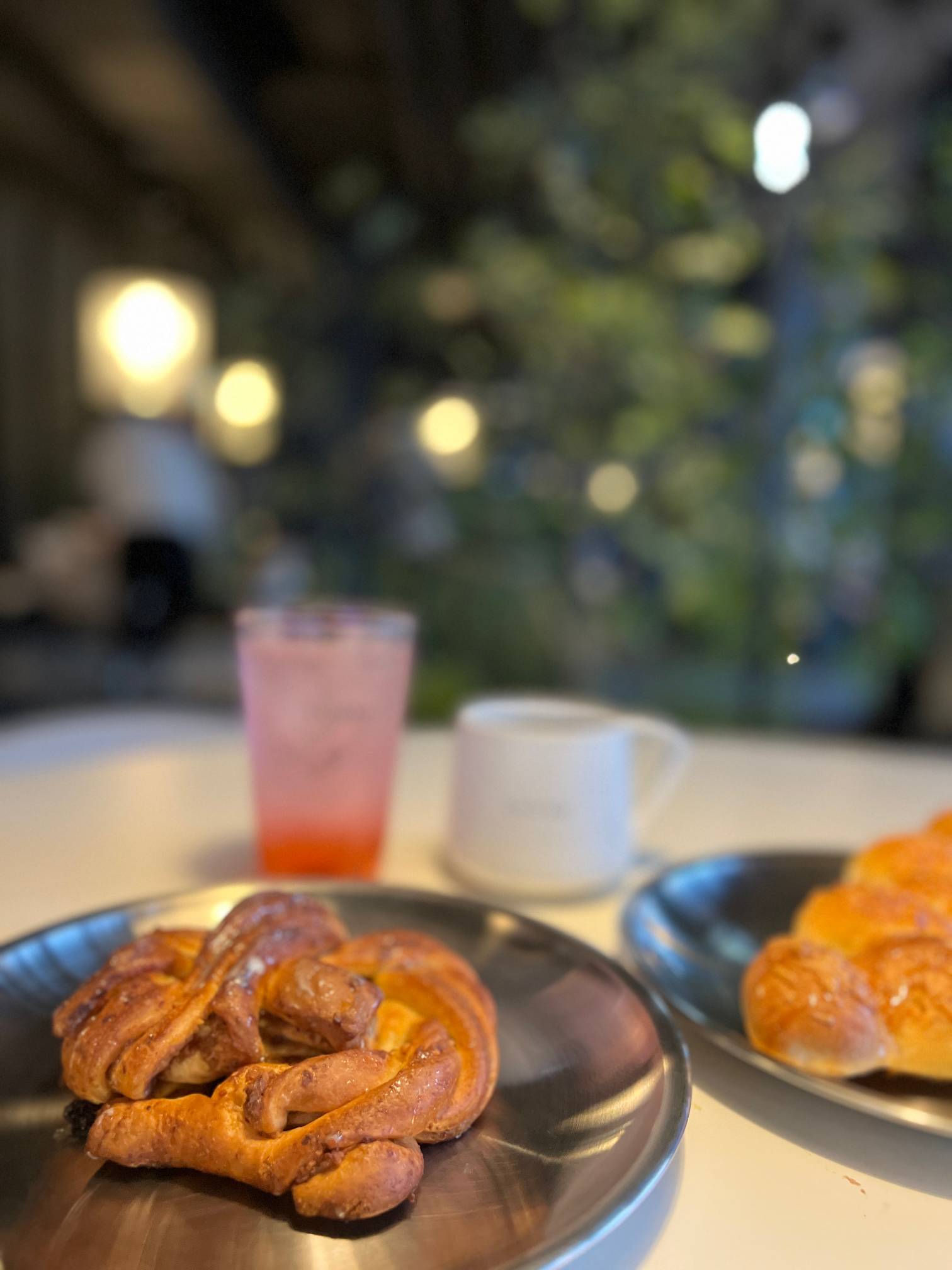내가 주문한 빵과 음료. 음료 두잔에 빵 두개 했는데 가격이 거의 3만원 ...