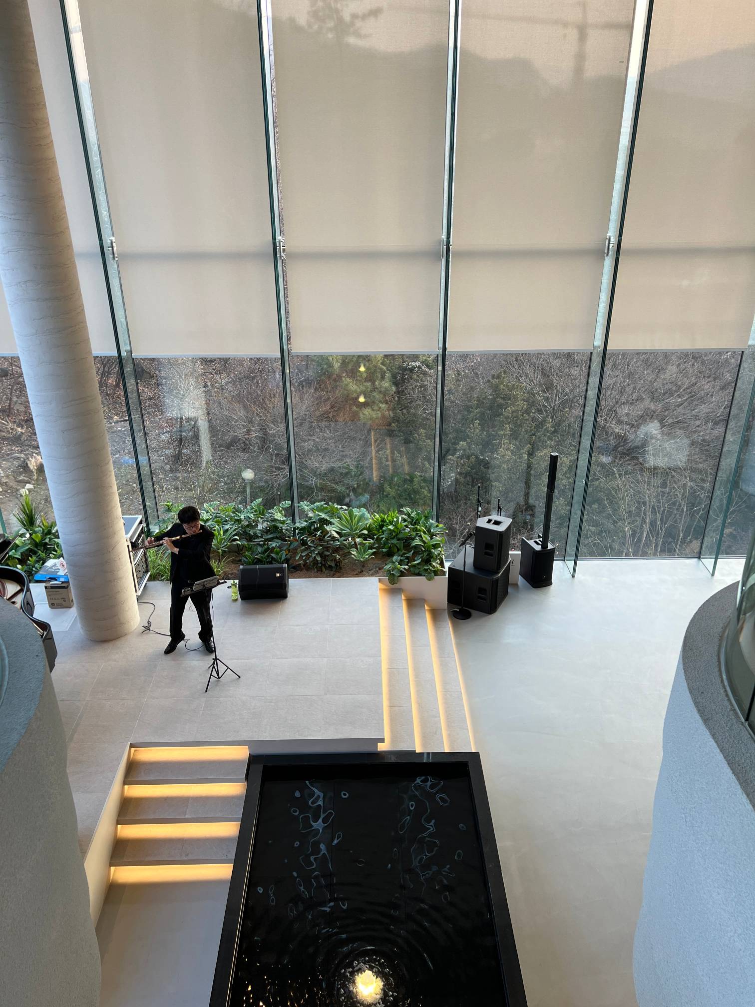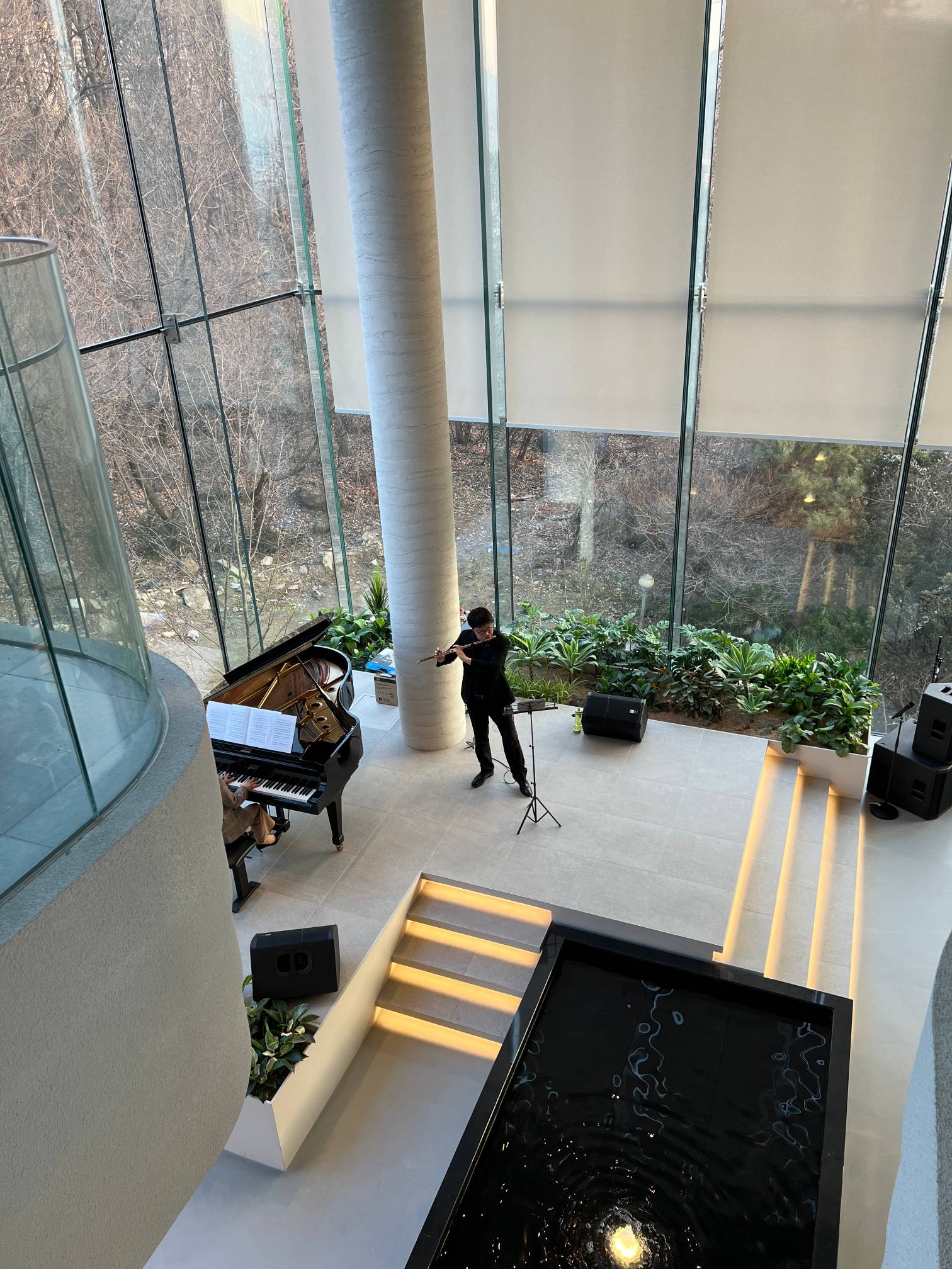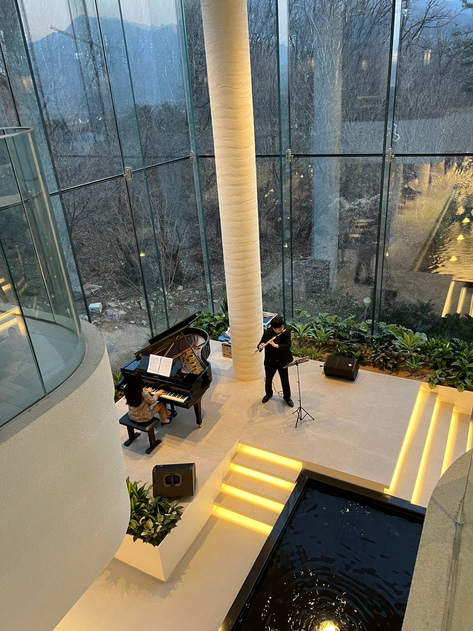 3층에 있다가 어디선가 플룻 소리가 들려서 내려다보니 2층에서 저렇게 피아노와 함께 공연을 하고 있었다.