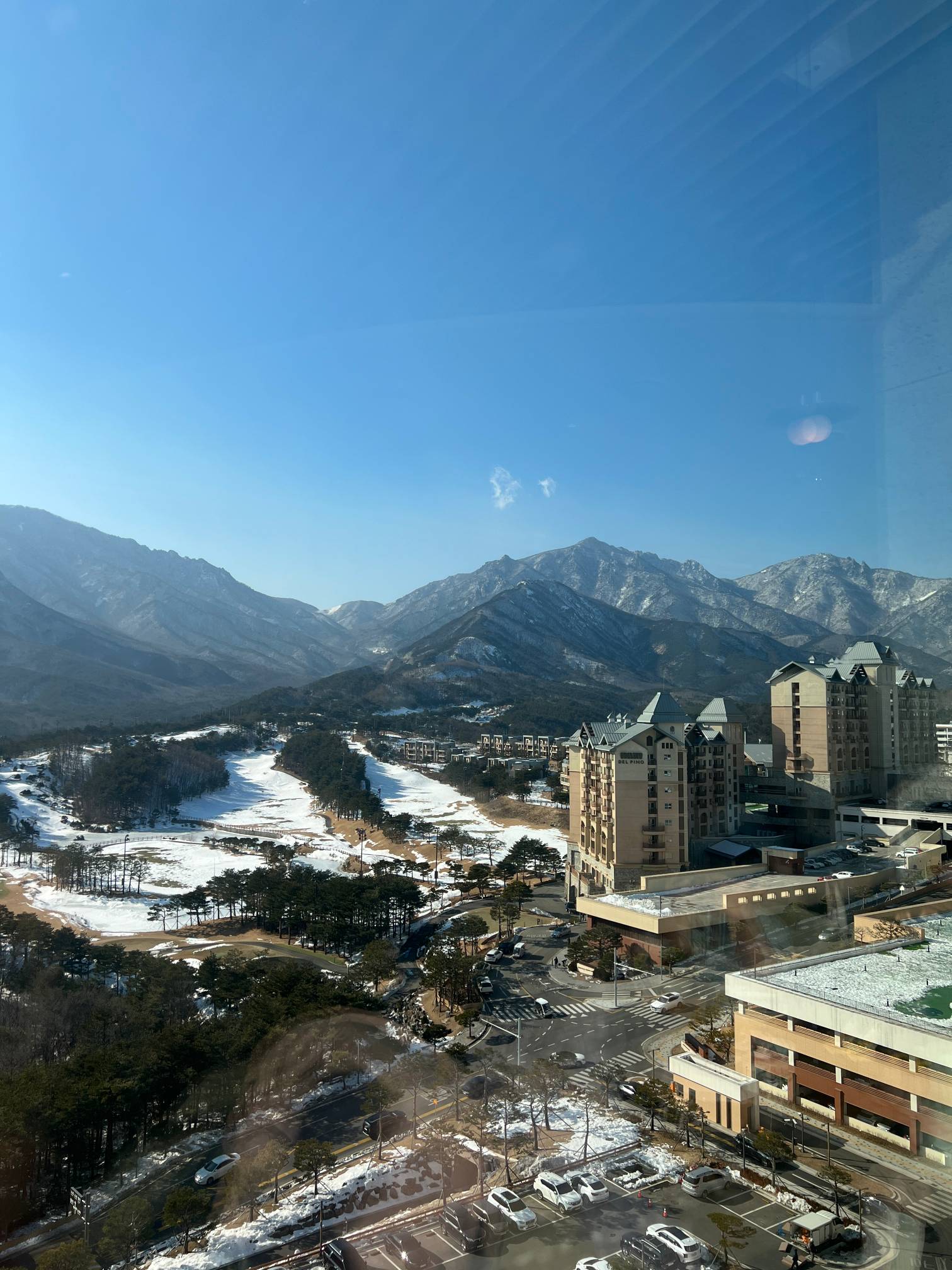 바로 앞이 주차장이고 뭐 듬성듬성 건물들 있고 그래서 탁 트인 느낌이 들지 않음.
