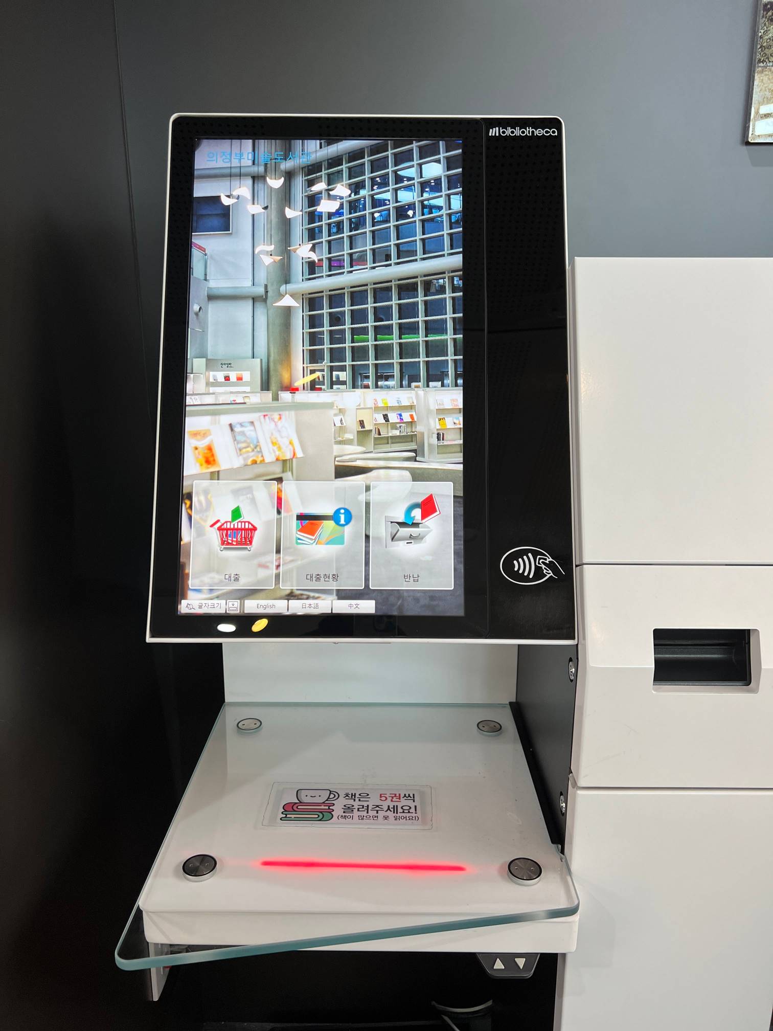 도서를 대여할 때에는 이런 식으로 기계에 넣으면 된다.