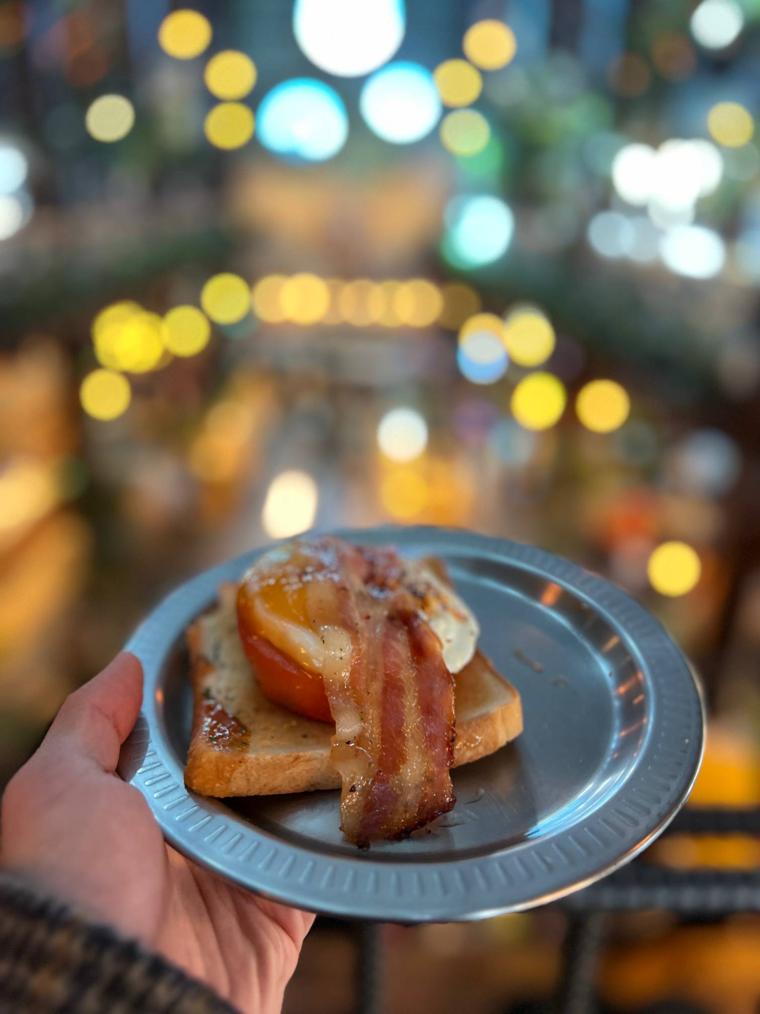 뭐 그냥 이렇게 식빵 위에 베이컨이랑 이것저것 올려서 먹으면 된다.