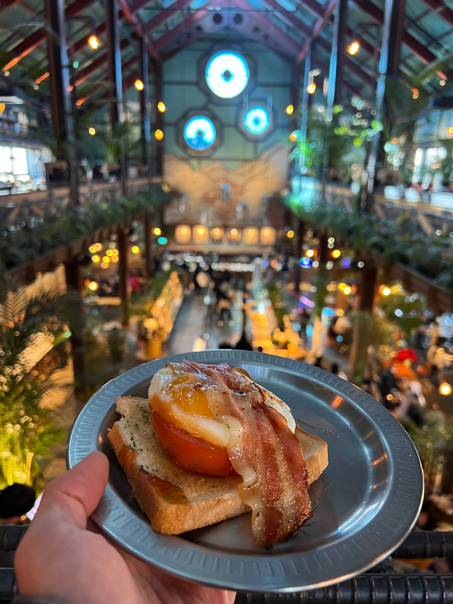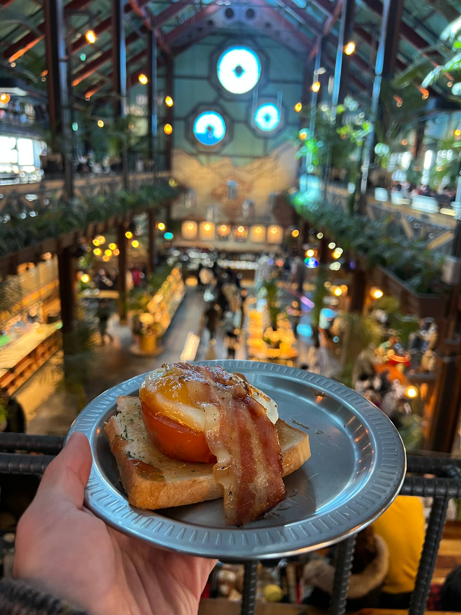 뭐 그냥 이렇게 식빵 위에 베이컨이랑 이것저것 올려서 먹으면 된다.