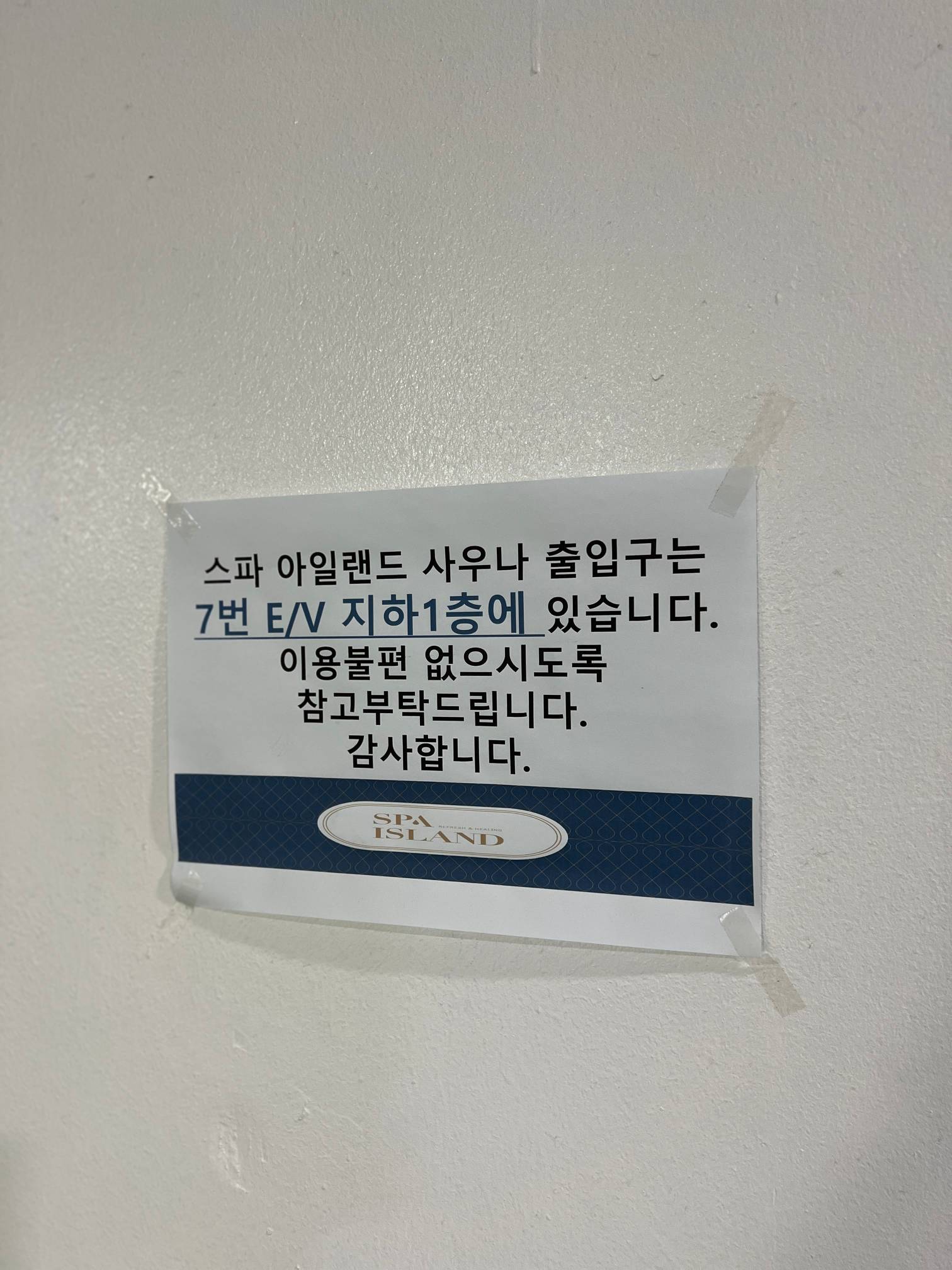스파아일랜드는 지하1층, 7번 엘리베이터 쪽에 있으니 당황하지 말고 이쪽으로 가면 된다.