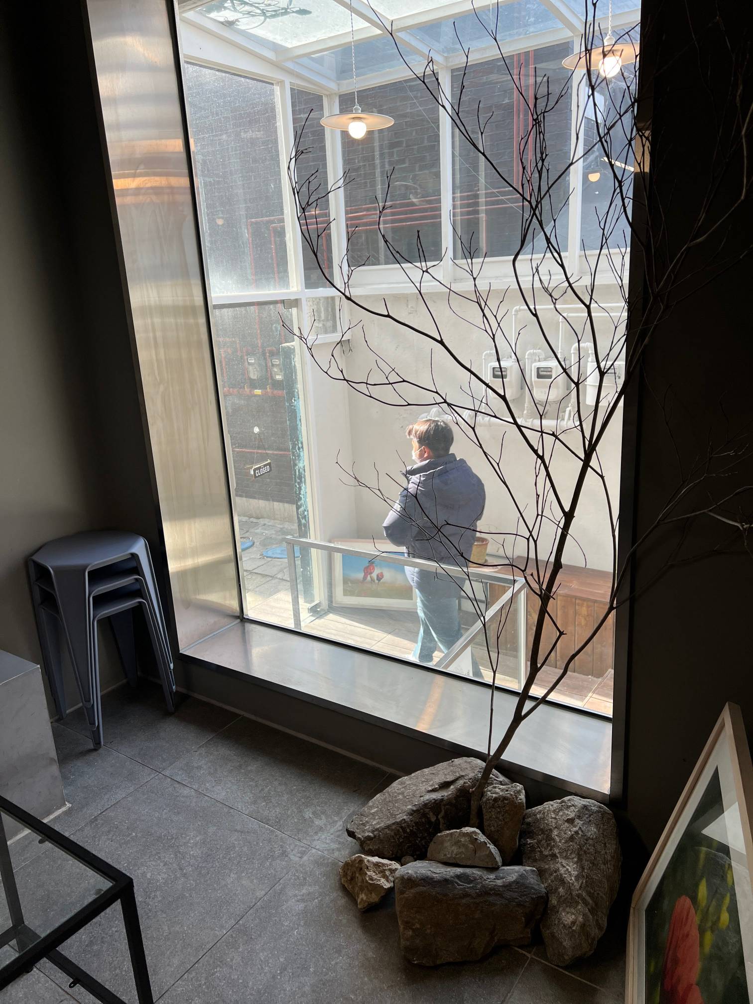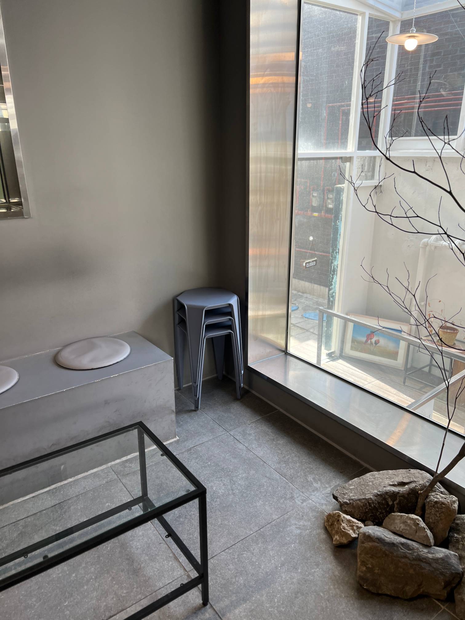 저렇게 콘크리트를 의자로 활용하고 있는데 실내 분위기랑 잘 어울린다.