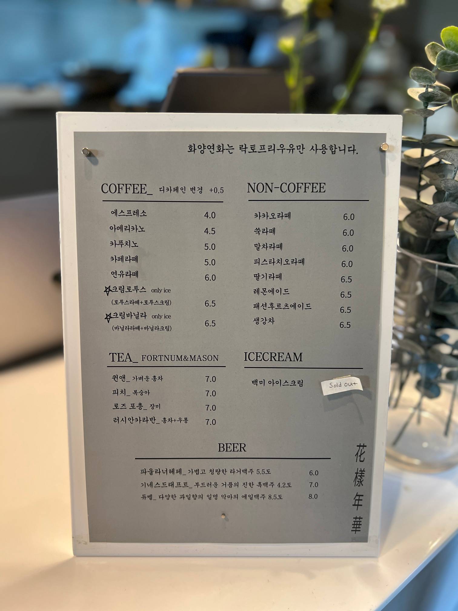 '화양연화'를 검색하면 무슨 양고기집이 같이 나오는데 거기는 아니고, 여기는 카페이다.