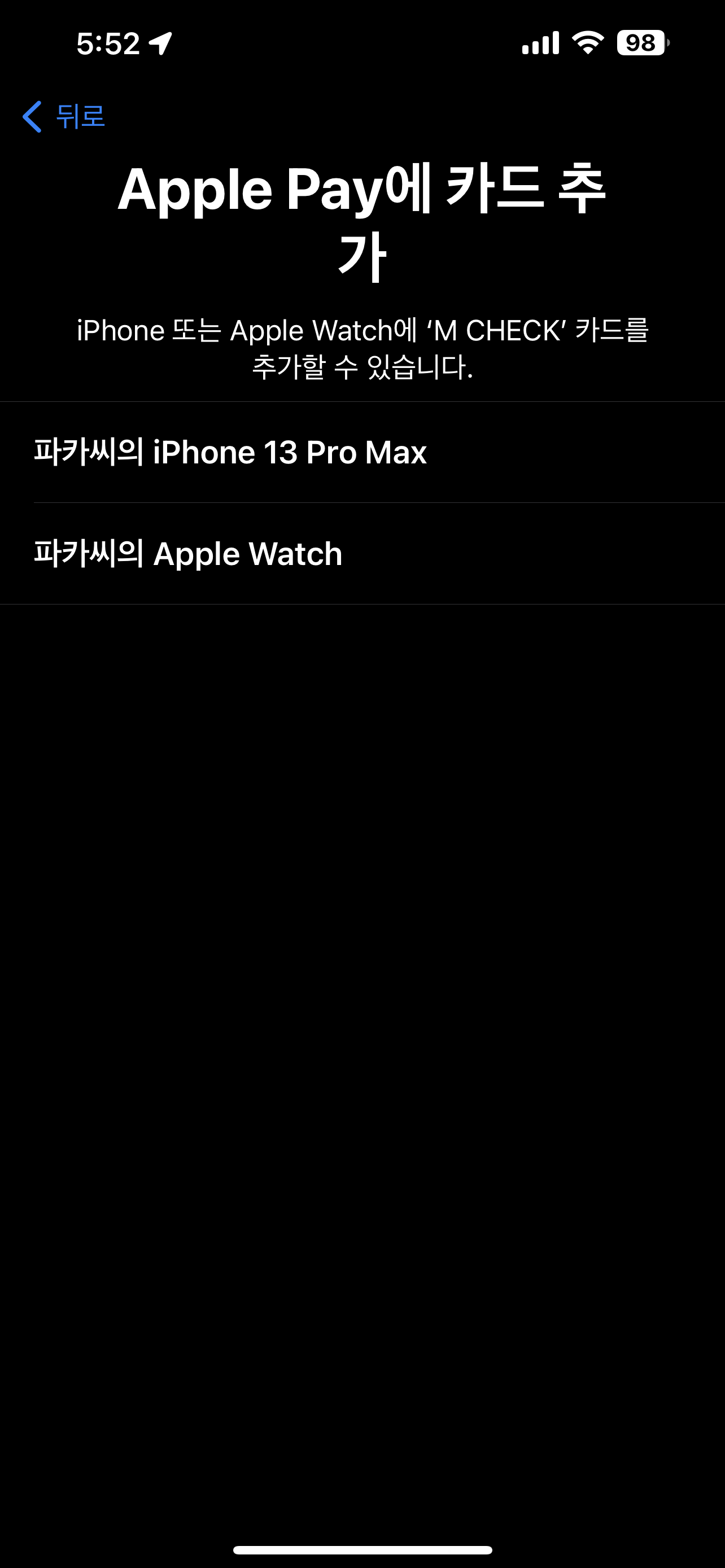 그러면 어떤 기기에 추가할 것인지가 나오는데, 당연히 애플워치에서도 사용이 가능하다.