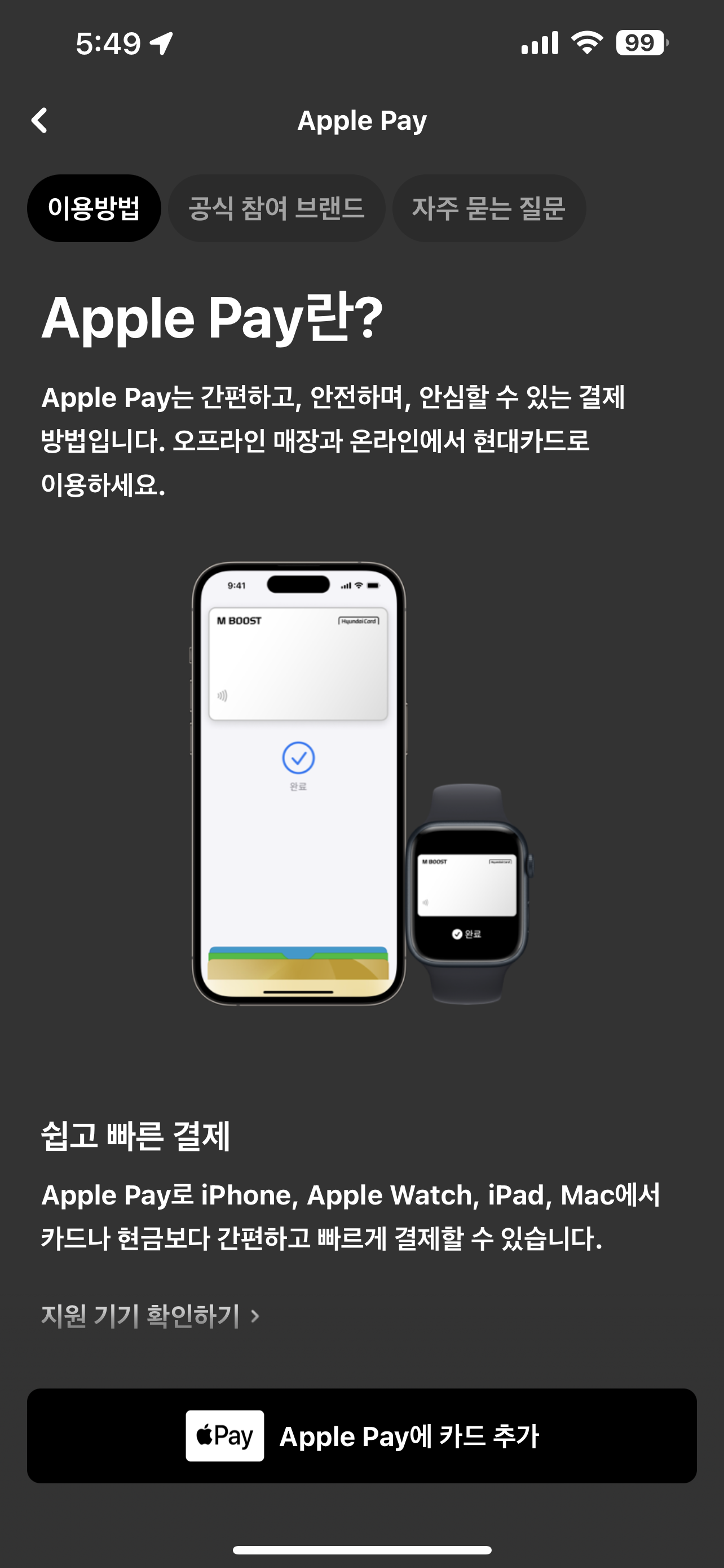 이용 방법이 나오는데 하단에 있는 '애플페이에 카드 추가' 버튼을 누르면