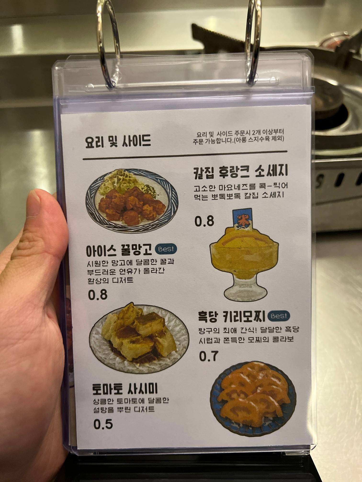 오뎅 메뉴 말고도 이런 사이드 메뉴가 있는데, 둘이 왔을 때는 그냥 모듬오뎅 하나를 시키는 게 나은 것 같고,