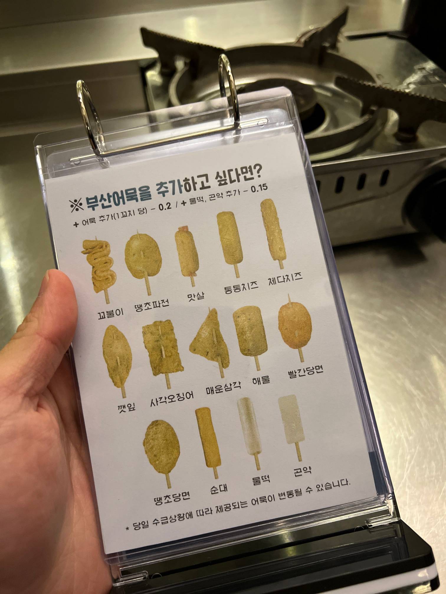 어묵을 추가하고 싶을 때에는 여기에 있는 걸 보고 자기가 딱 원하는 걸 찍어서 추가할 수 있다.