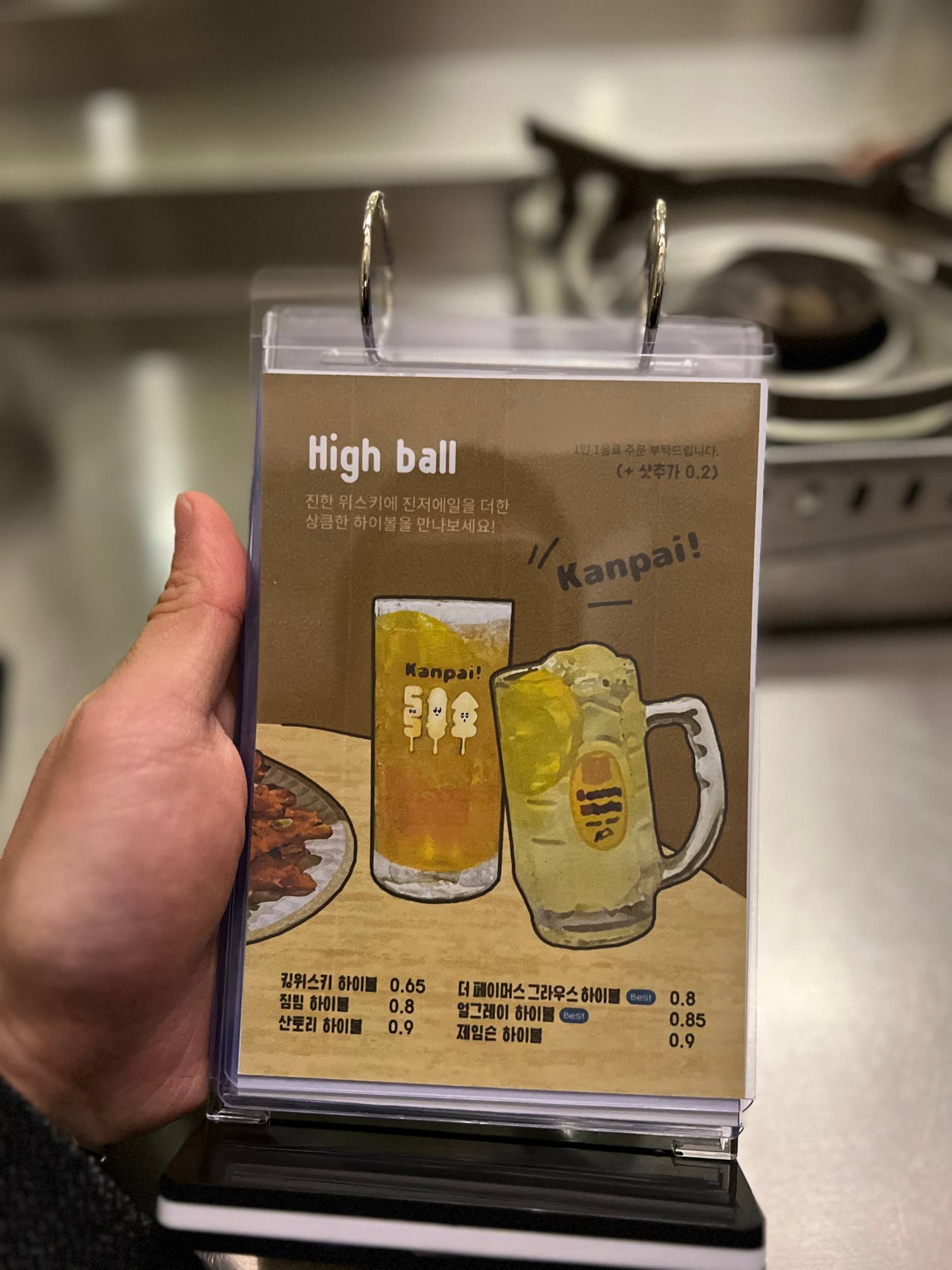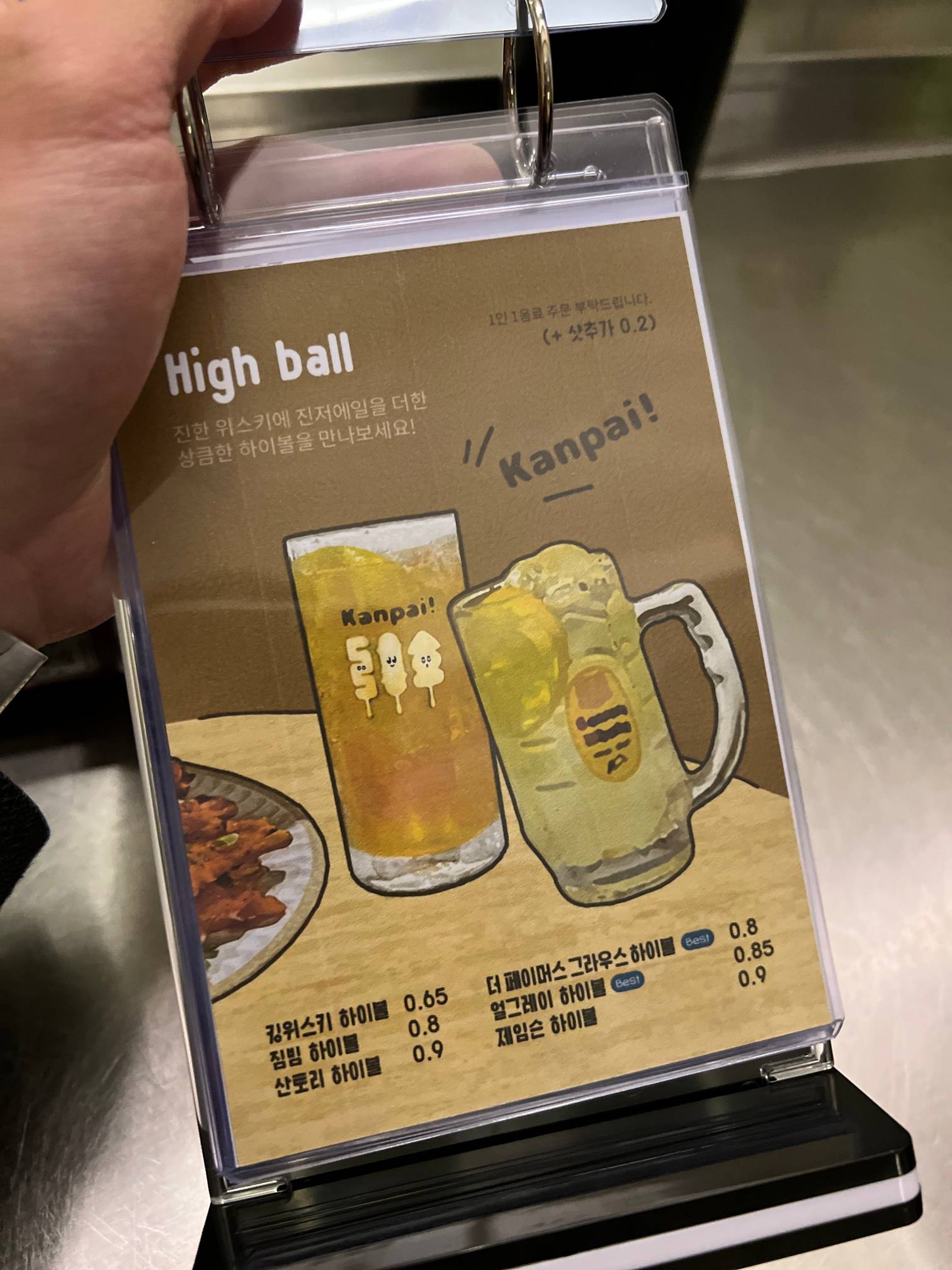아무래도 요새 가게들이 이제 테이블당 단가를 좀 높이려면 소주 파는 것보다는 차라리 비싸게 하이볼 한잔 파는 게 나으니 이런 식으로 하는 가게들이 많아지는 것 같다.