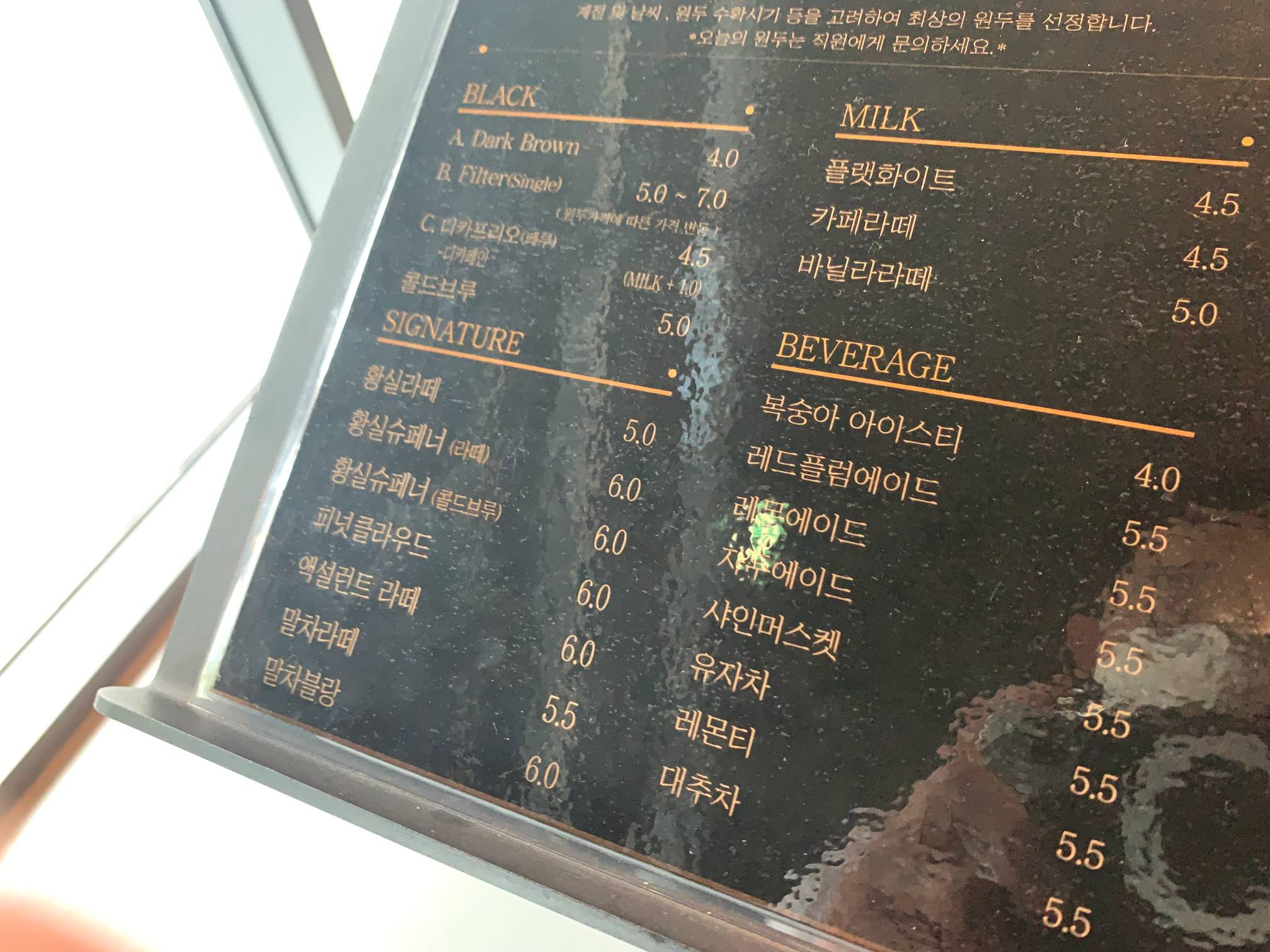 시그니처 커피인 황실라떼는 5천원, 황실슈페너는 6천원이다.