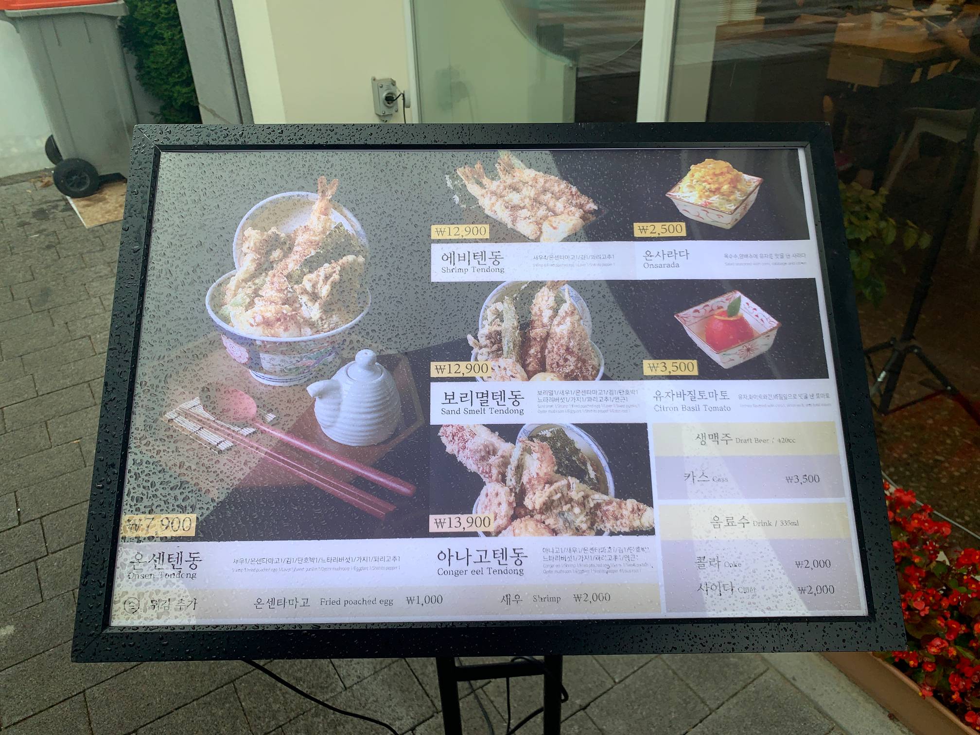 온센텐동은 7900원, 에비텐동이 12900원이다.
