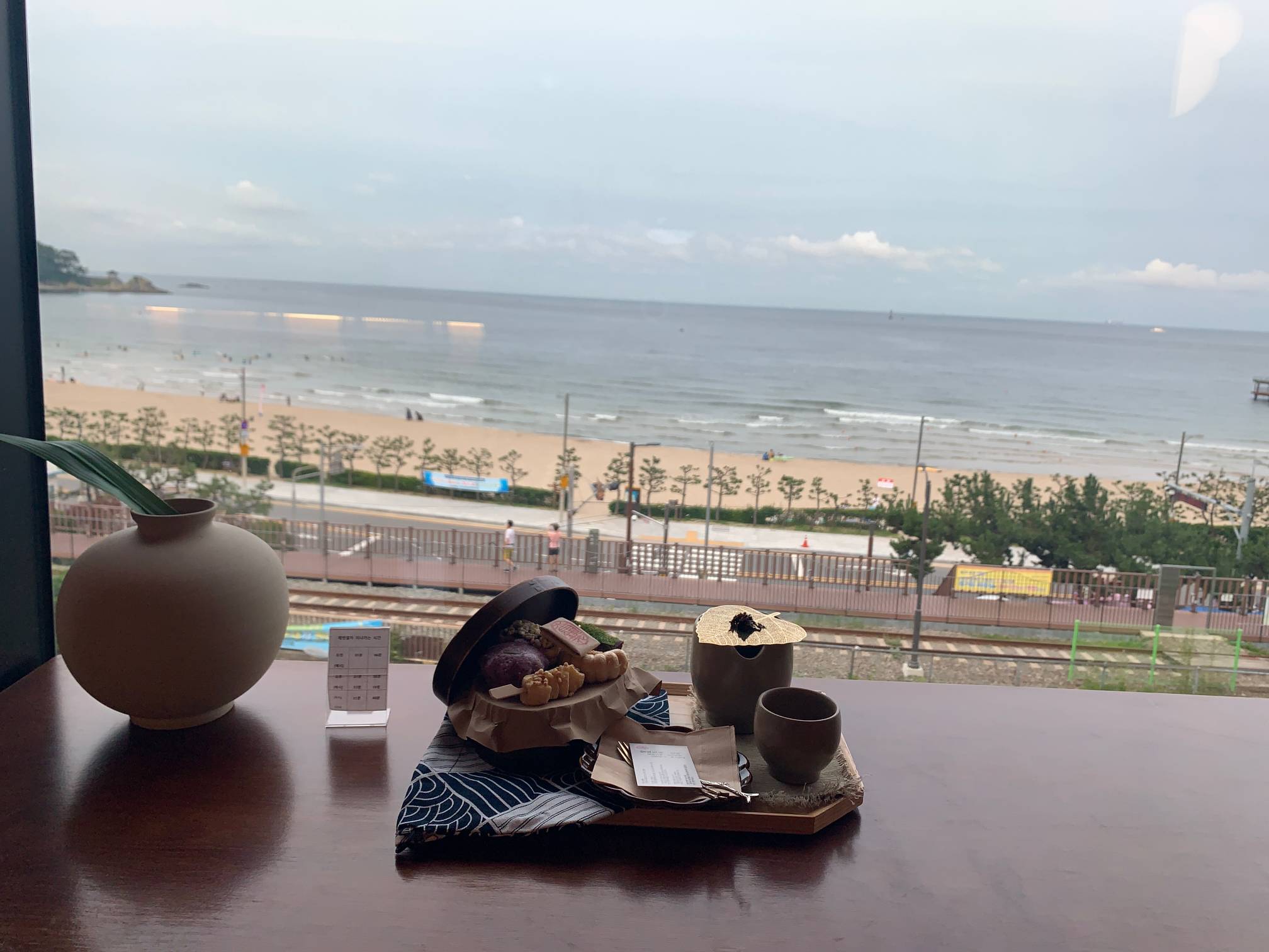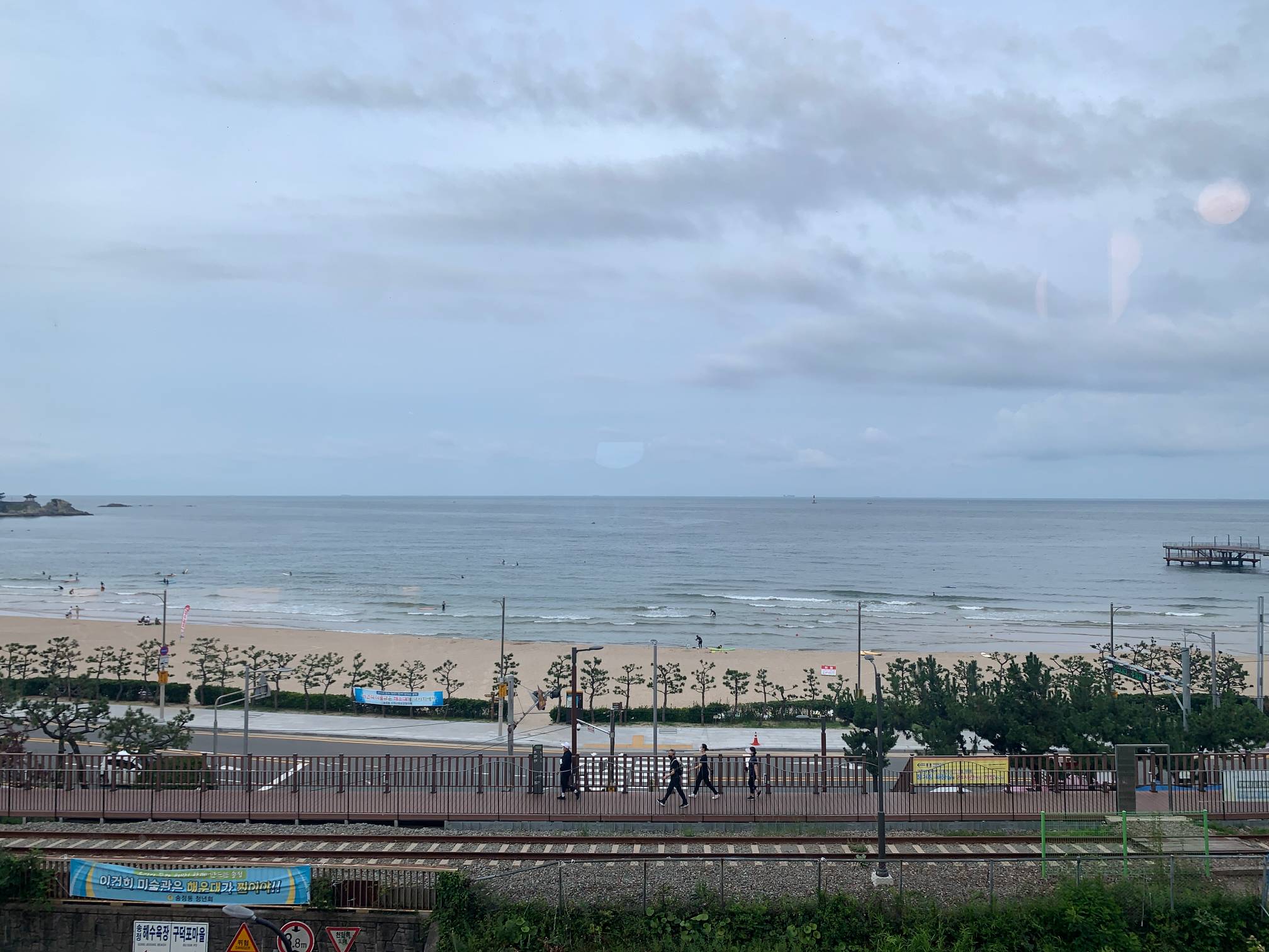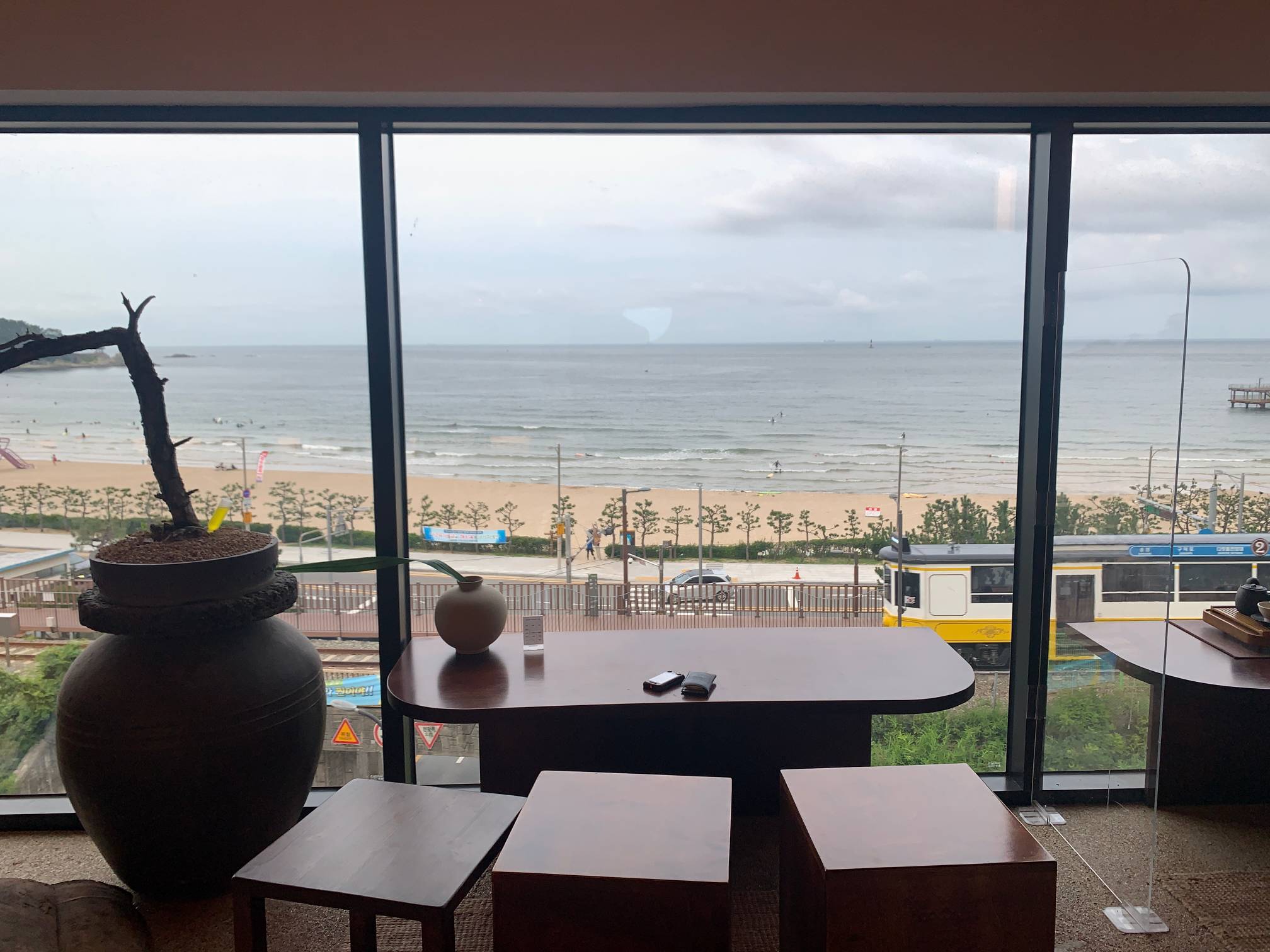 송정 해수욕장을 바로 바라보는 위치이기 때문에 오션뷰가 굉장히 좋고 특히 바로 앞으로 해운대 해변 열차가 지나가기 때문에 해변 열차가 지나갈 때 사진 찍기도 굉장히 좋은 곳이다.