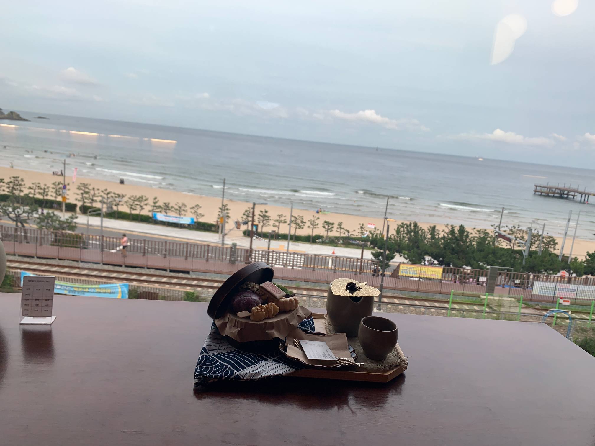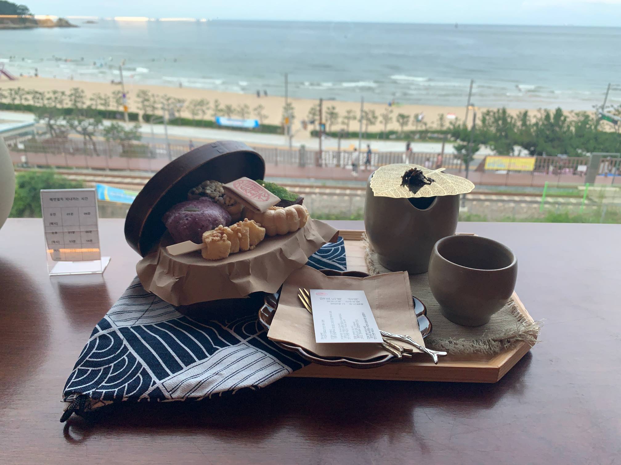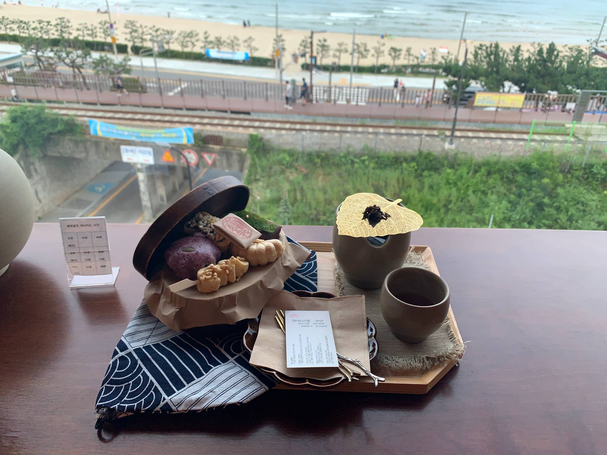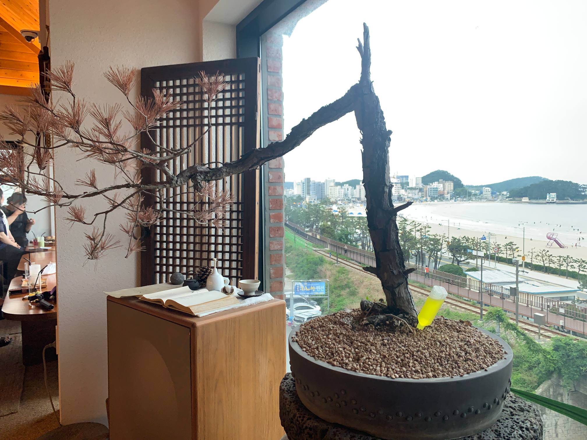 송정 해수욕장을 바로 바라보는 위치이기 때문에 오션뷰가 굉장히 좋고 특히 바로 앞으로 해운대 해변 열차가 지나가기 때문에 해변 열차가 지나갈 때 사진 찍기도 굉장히 좋은 곳이다.
