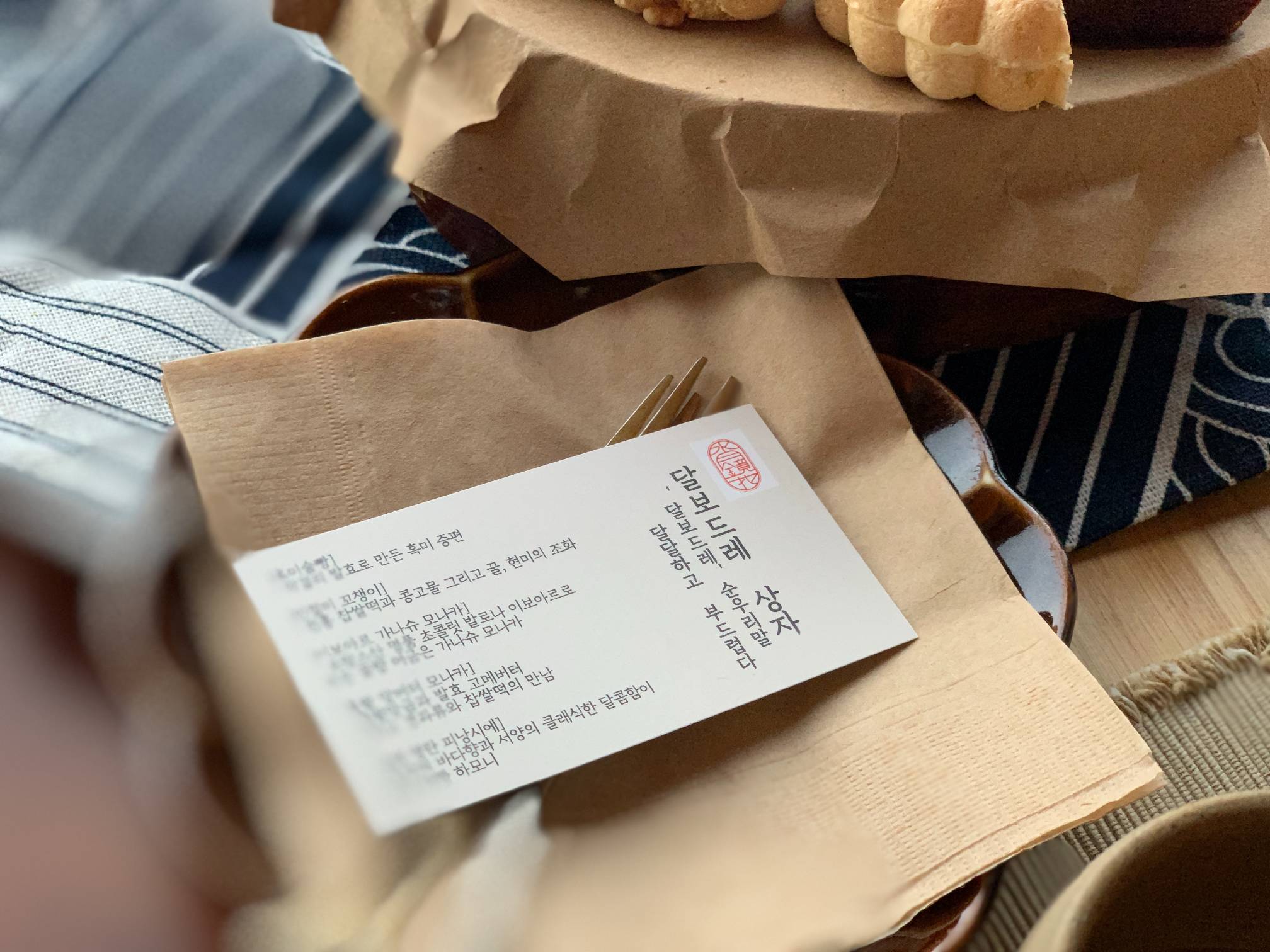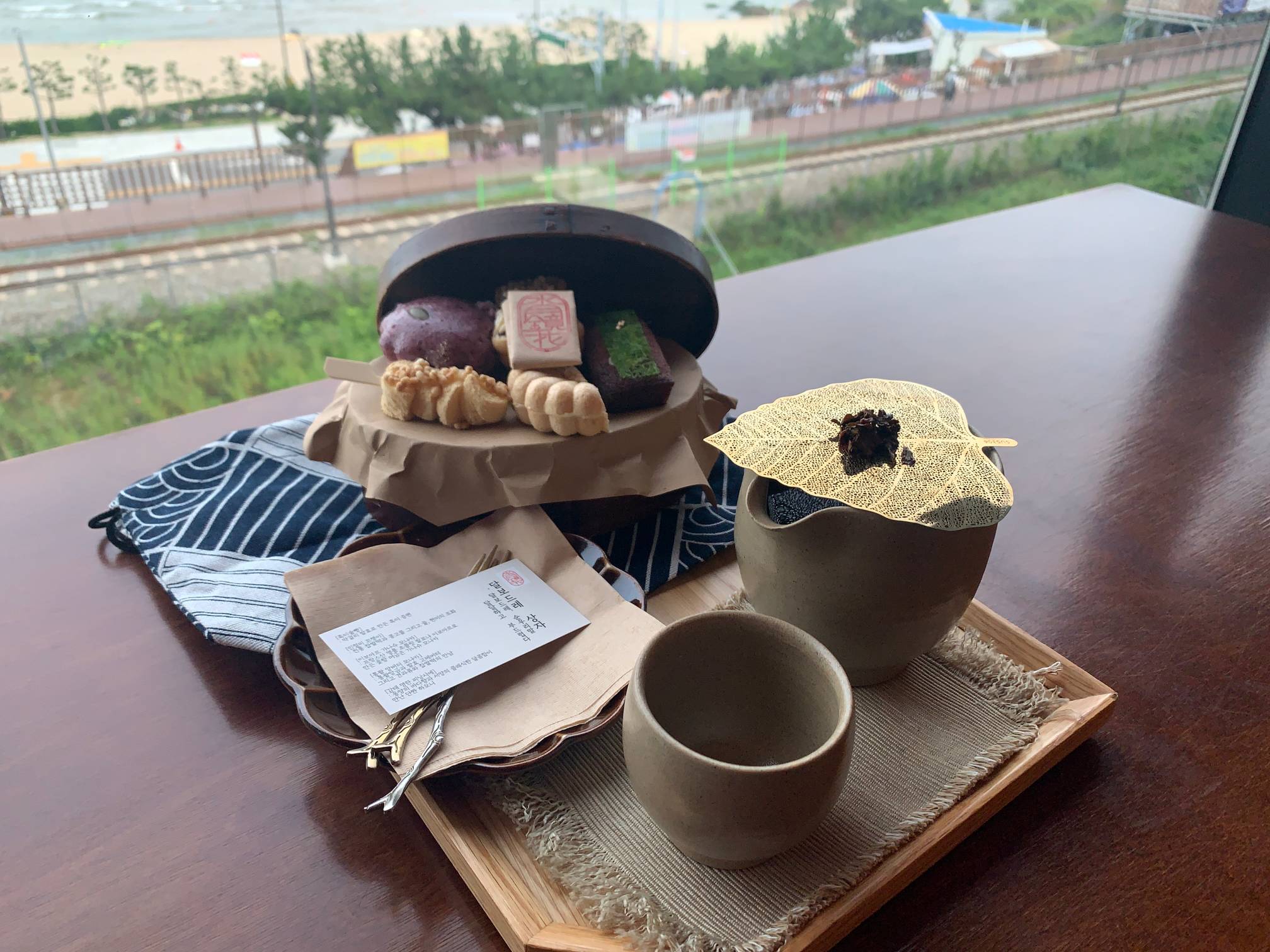 차를 하나 시키고 달보드레 상자라는 저 디저트를 하나 시켰다.