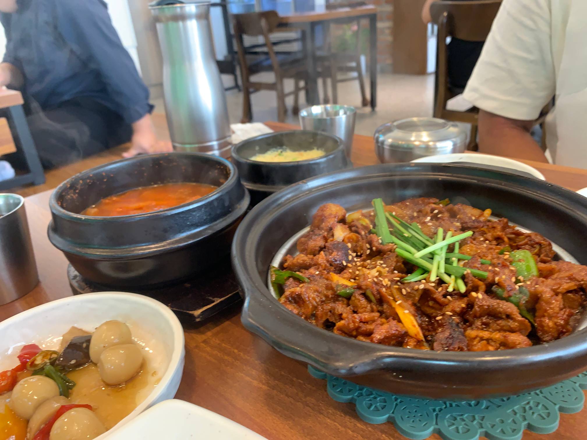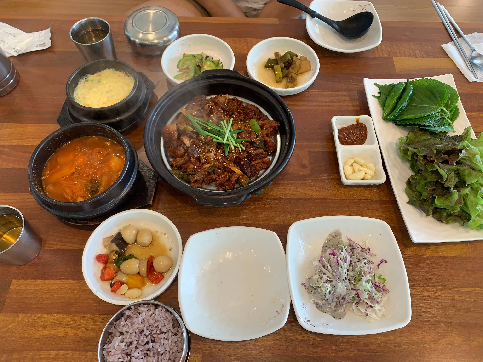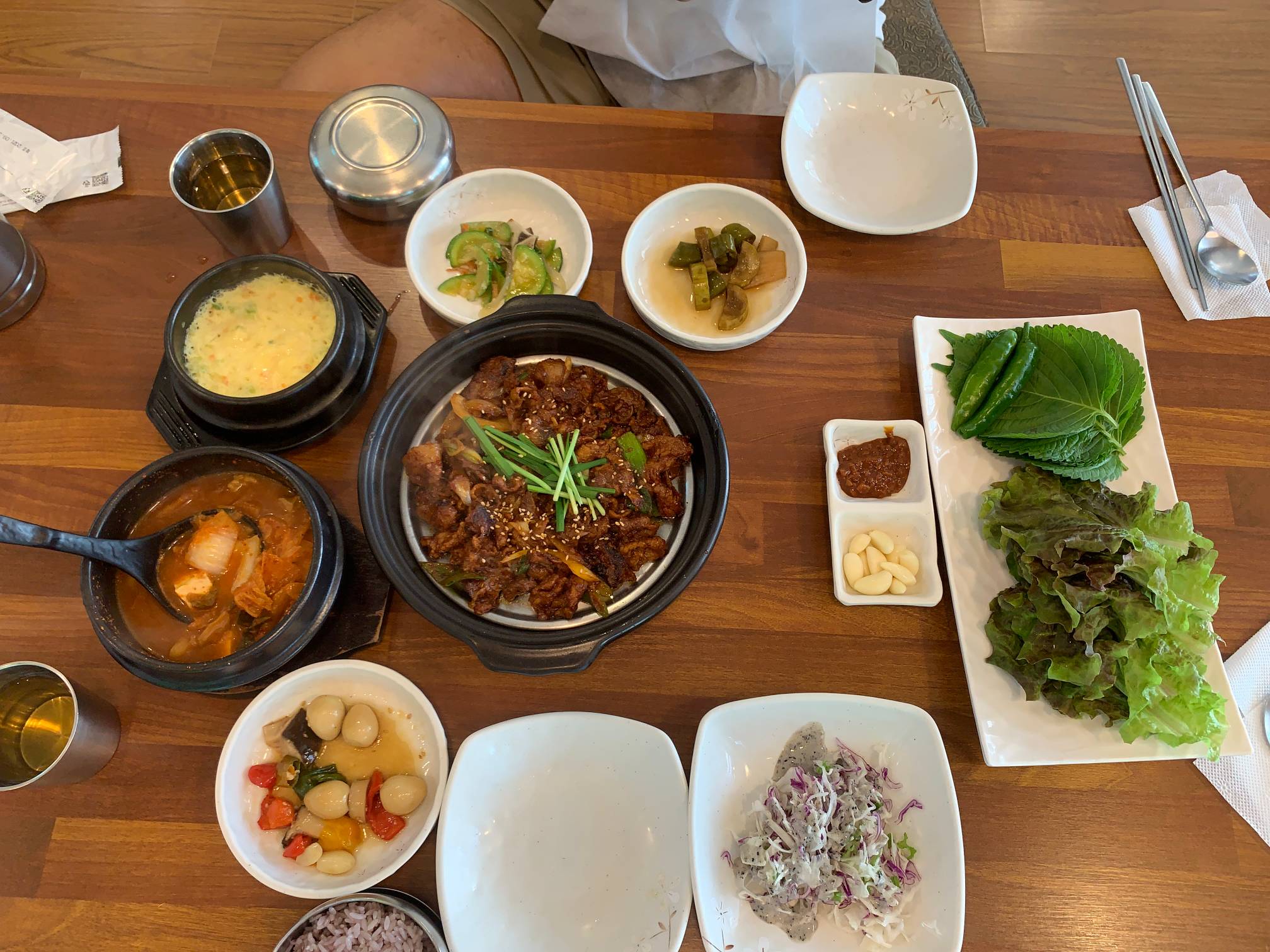 이런 식으로 간단하게 제육, 된장찌개, 쌈이 나온다.