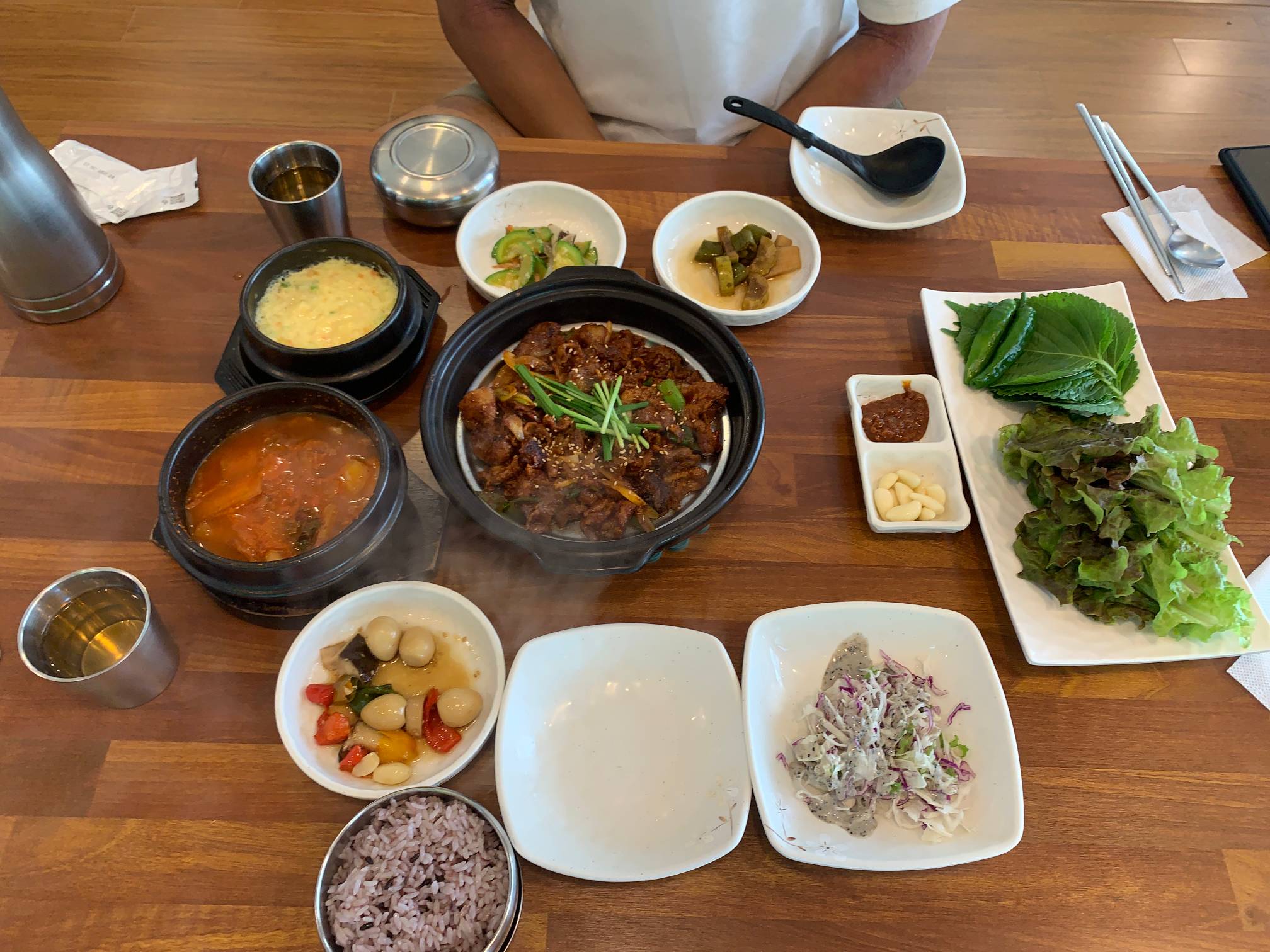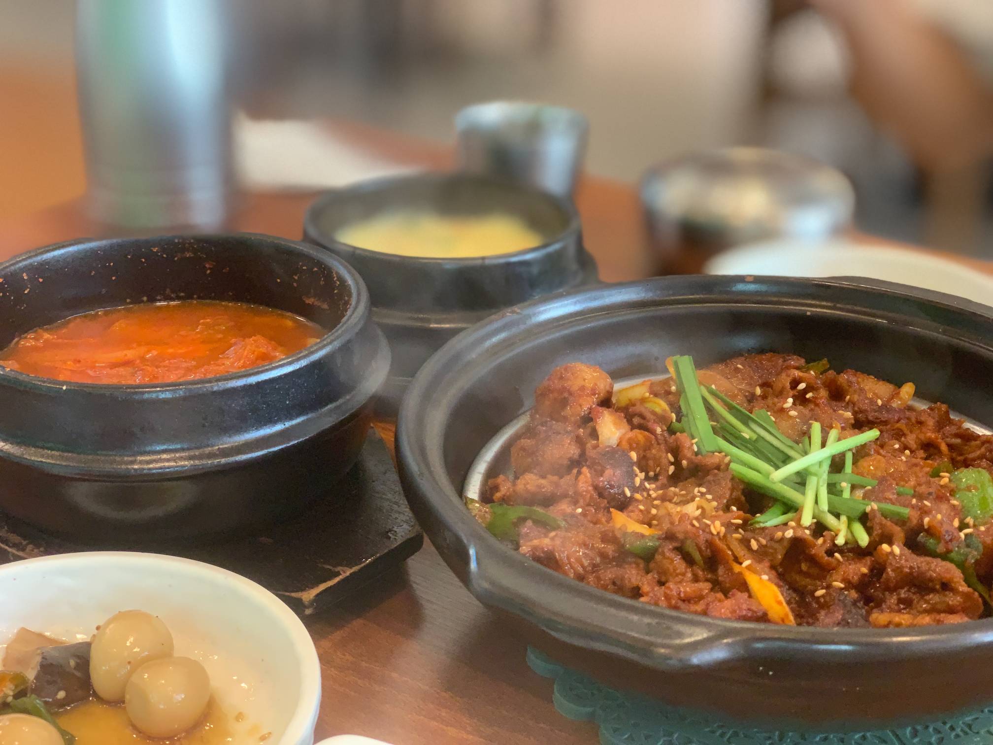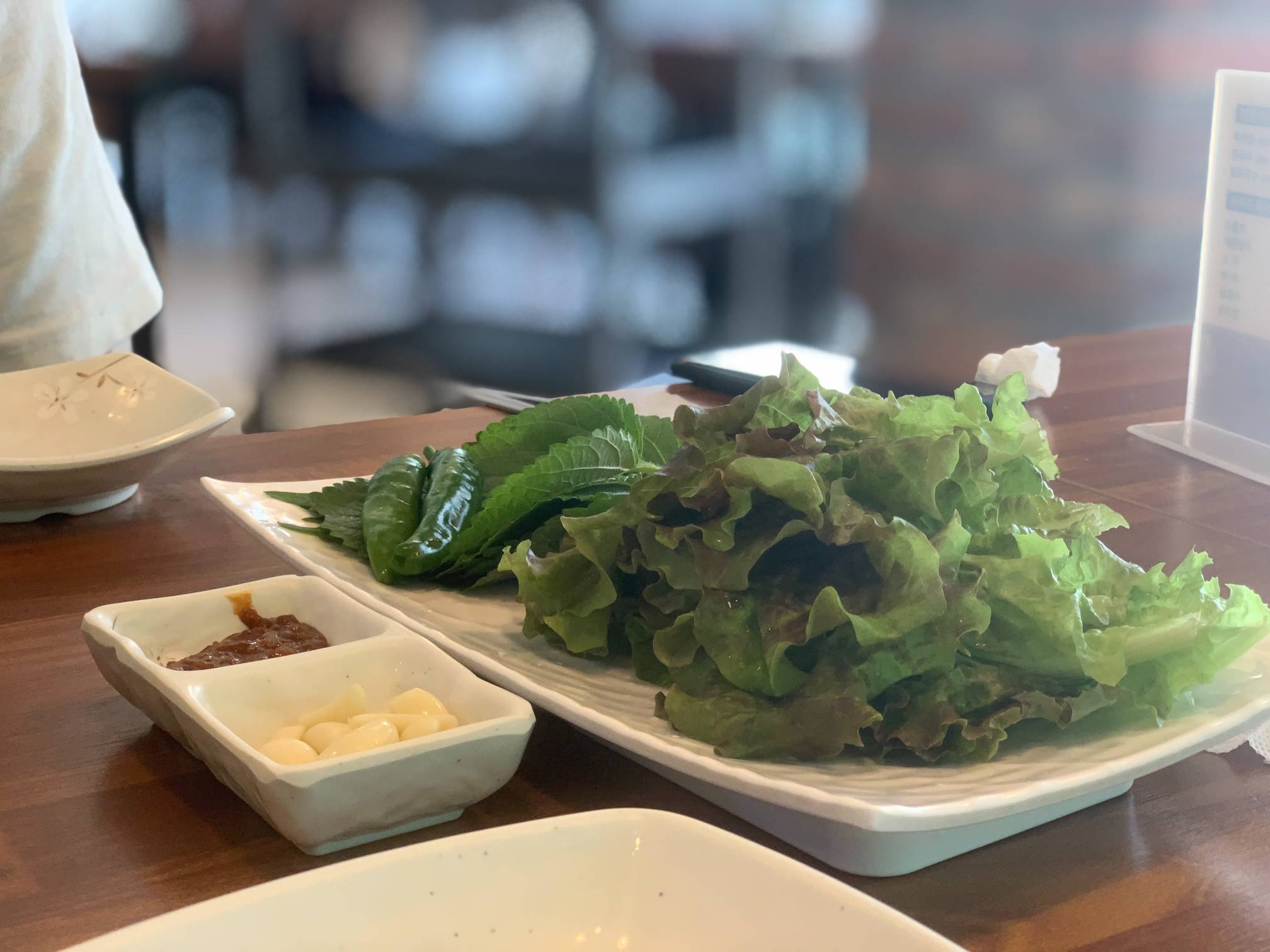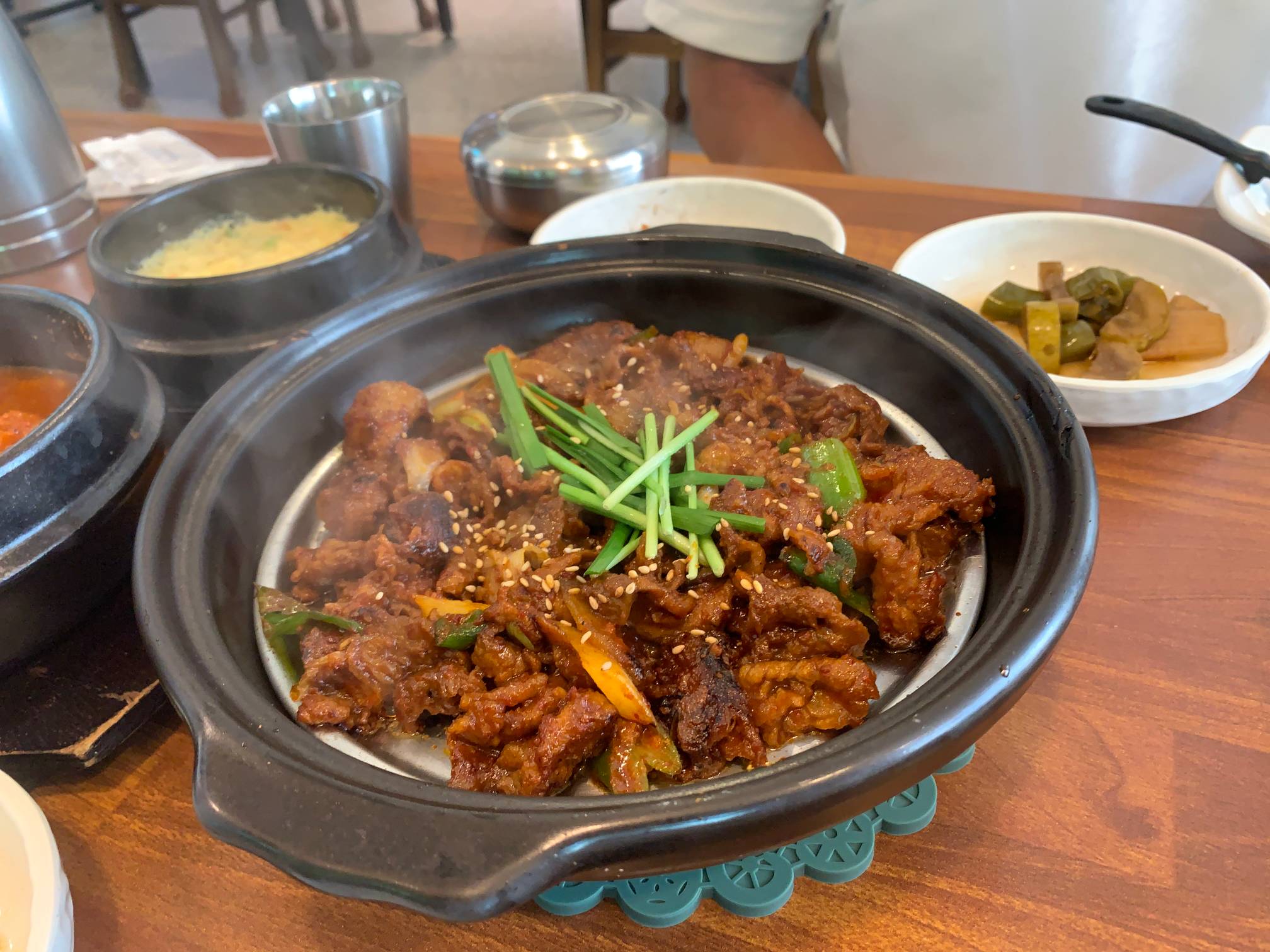 이런 식으로 간단하게 제육, 된장찌개, 쌈이 나온다.