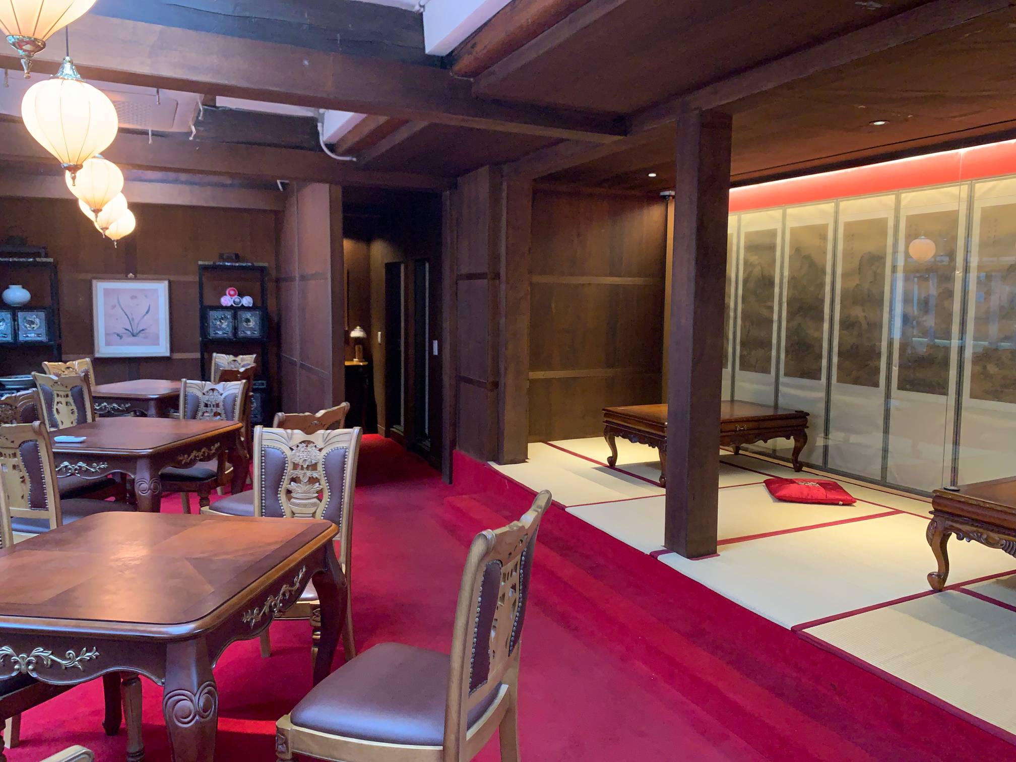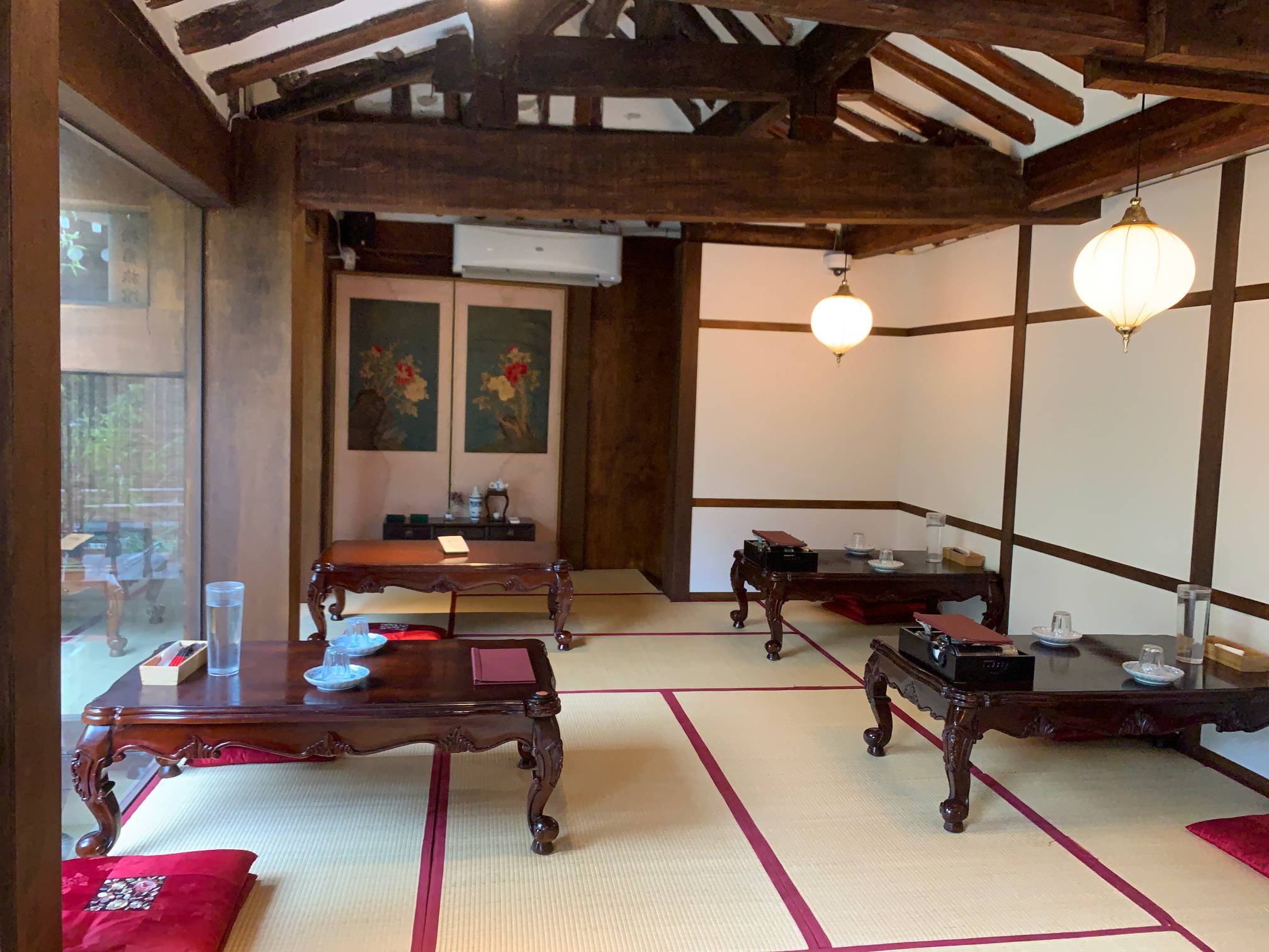 이 자리도 꽤 괜찮은 듯. 어디 고급 중국집 같은 느낌이 들기도 하는데 병풍도 있고 해서 고풍스러운 느낌이 좋다.