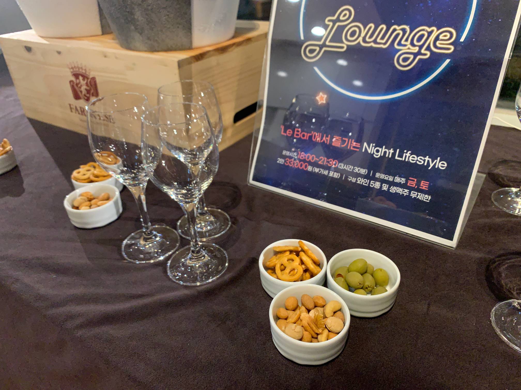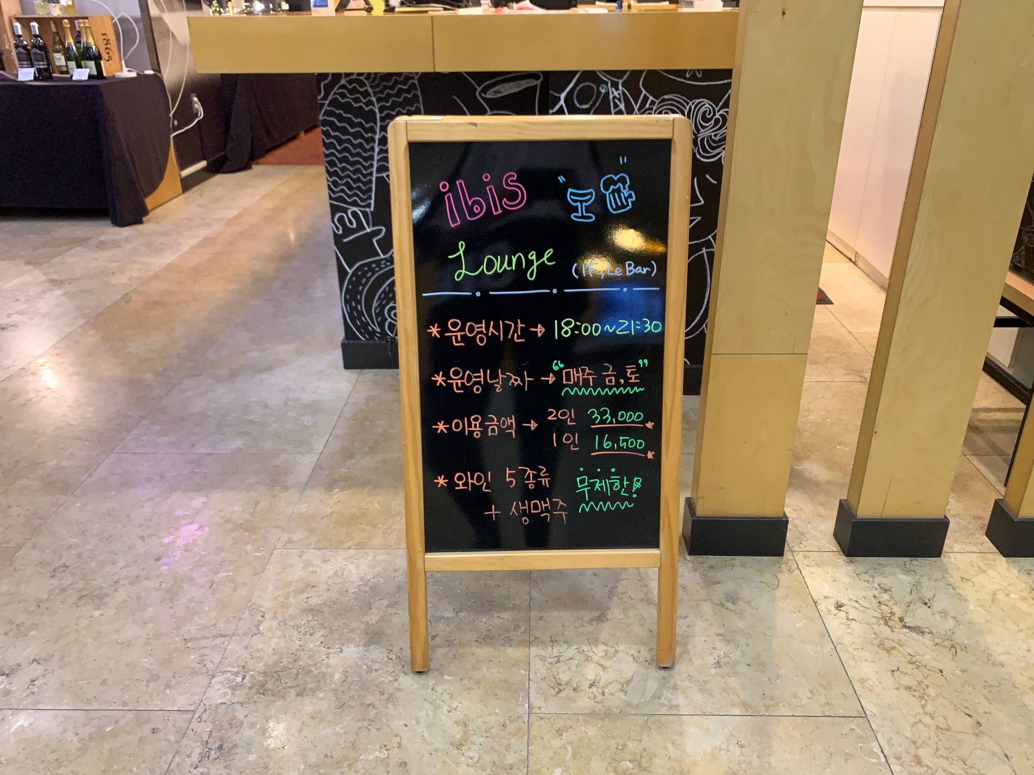 보통 4성급 5성급 호텔에 있는 라운지 같은 건 아니고 그냥 ... 뭐랄까 일층에 있는 와인바 정도라고 생각하면 될 것 같다.