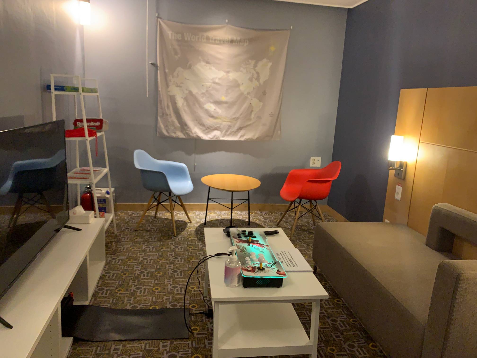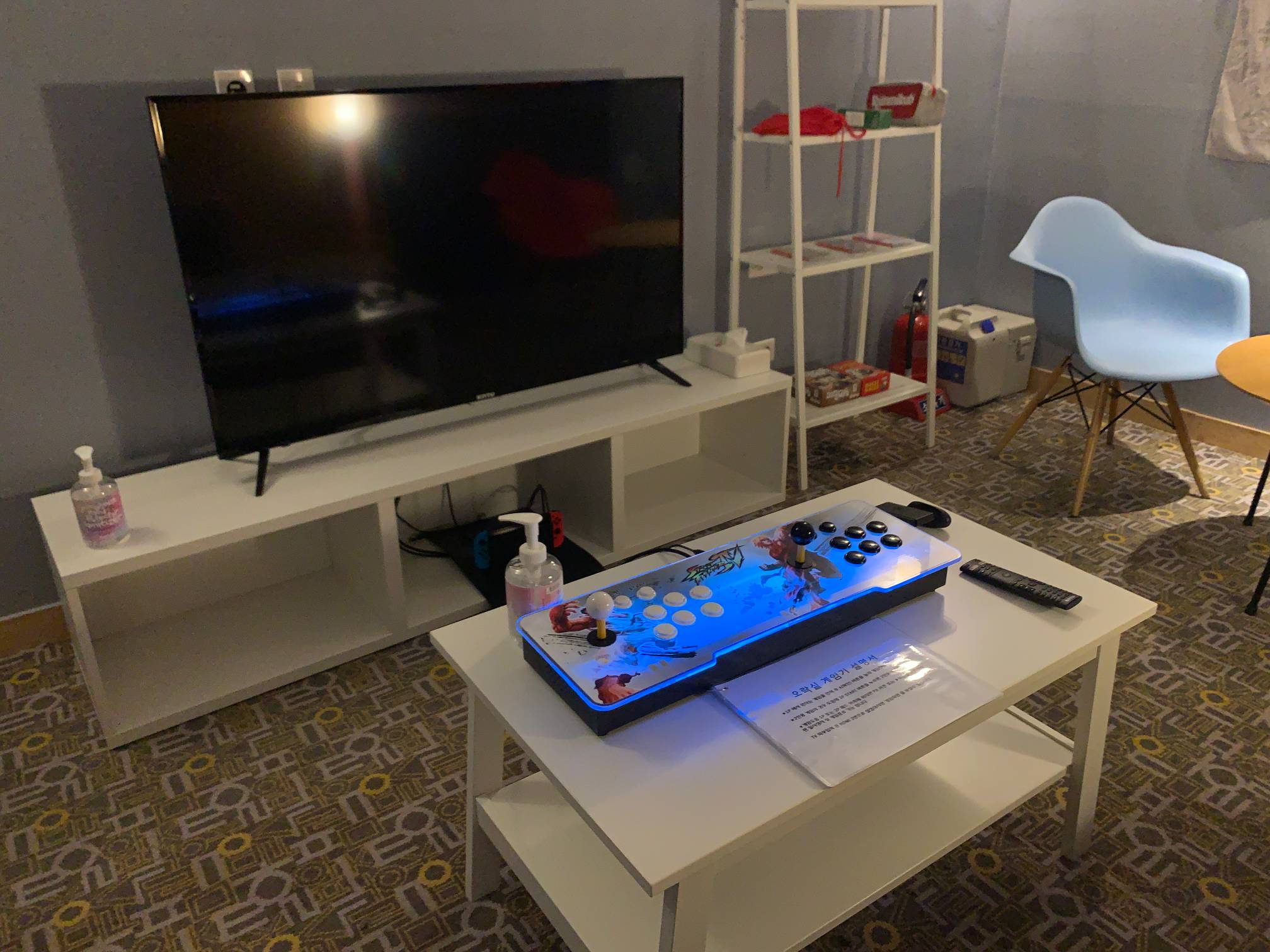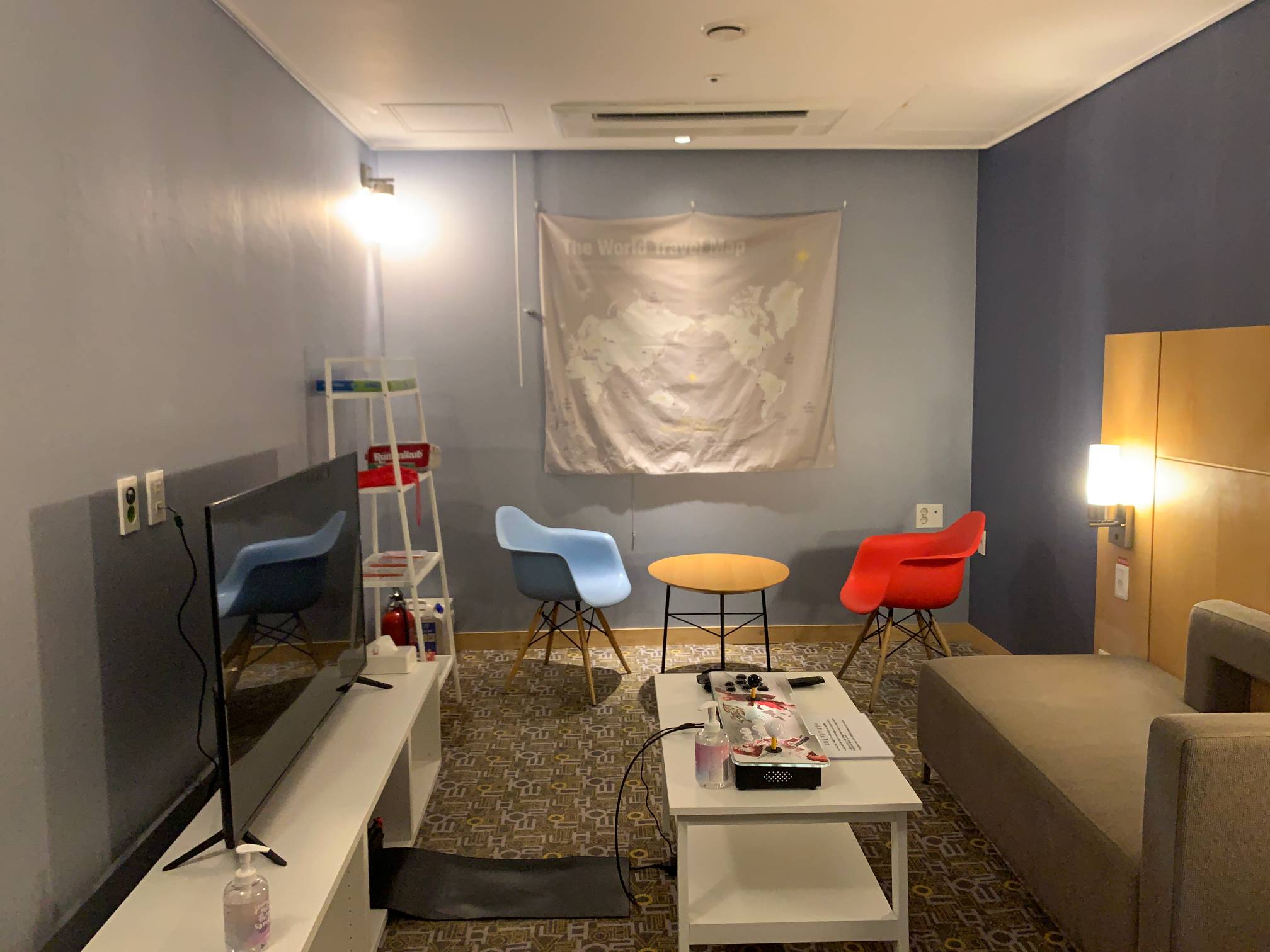 호텔방 하나를 이런 식으로 소파랑 게임기 같은 것들을 가져다놓고 사용할 수 있게 해준다.