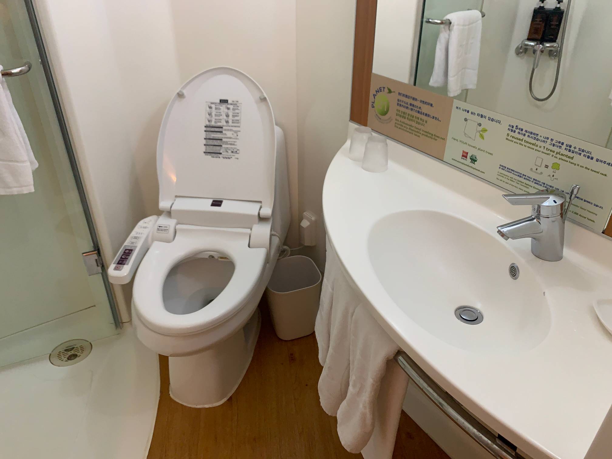 화장실은 이런 식으로 샤워부스가 따로 분리되어 있는 형태이다.