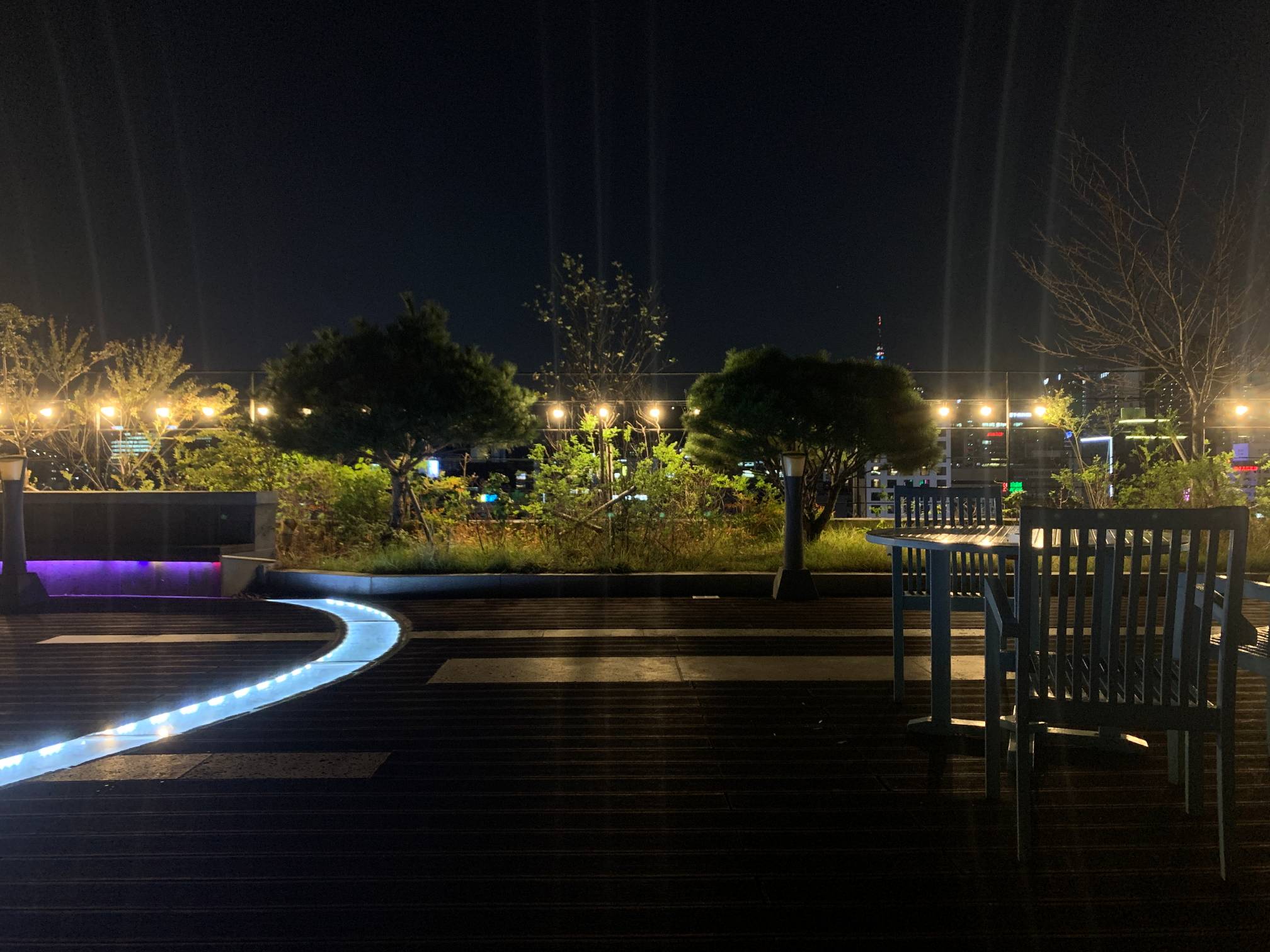 옥상으로 올라가면 이런 식으로 야경 볼 수 있는 곳이 있다.