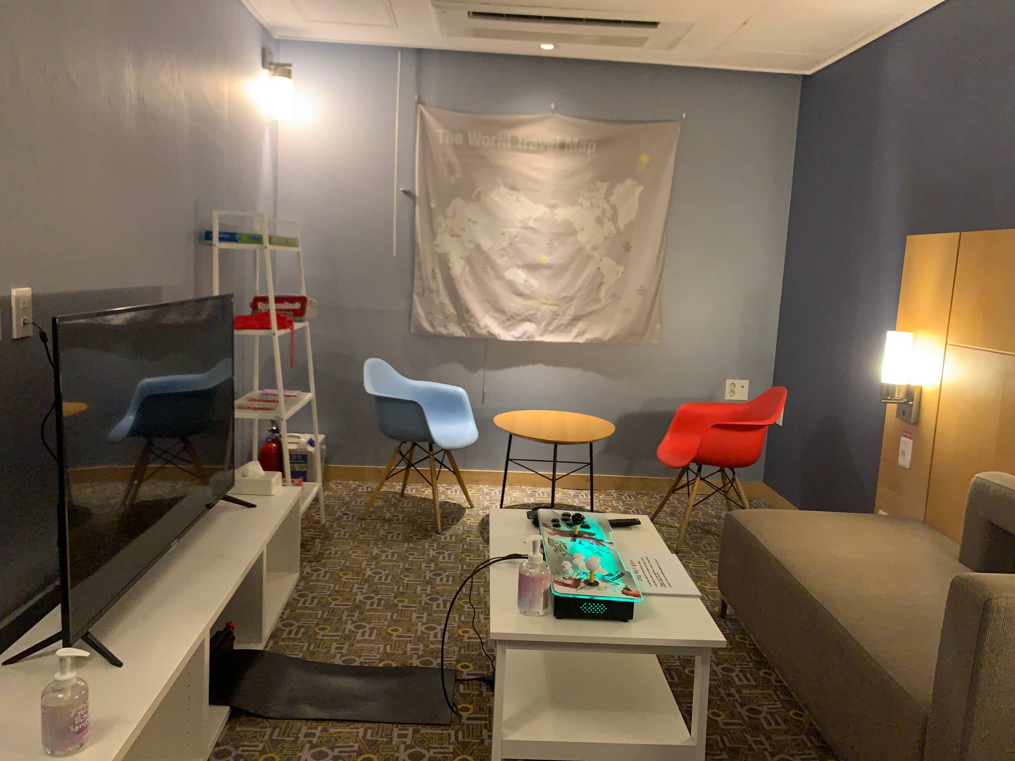 호텔방 하나를 이런 식으로 소파랑 게임기 같은 것들을 가져다놓고 사용할 수 있게 해준다.