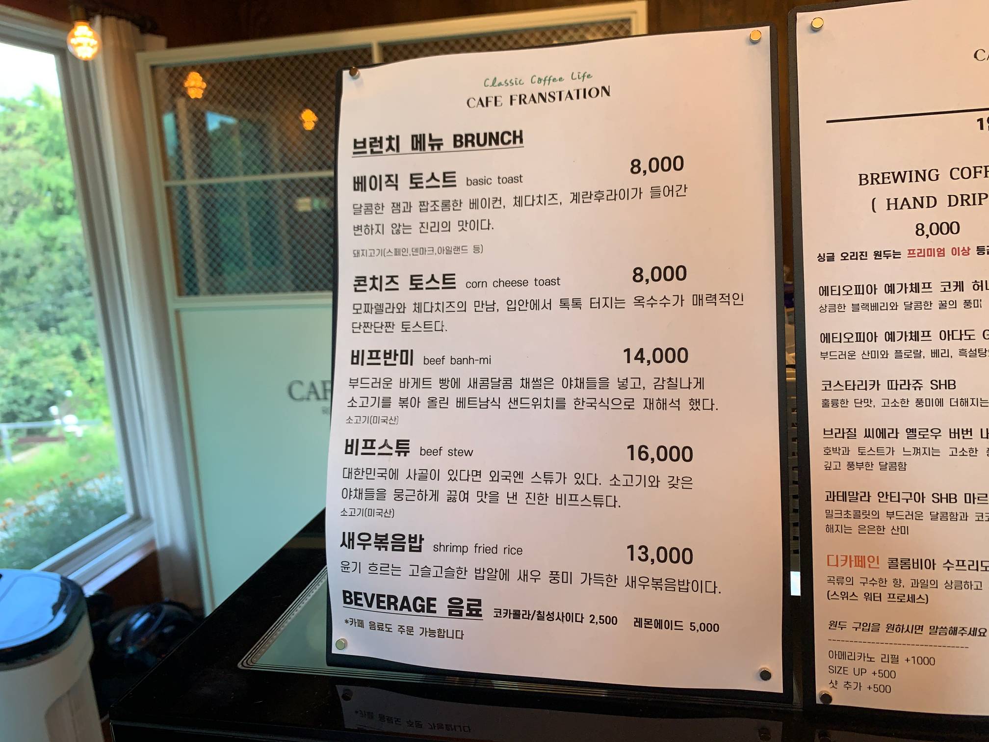 특히 여기 창가 자리에 앉았는데 창가 자리 분위기가 너무 좋았다.
