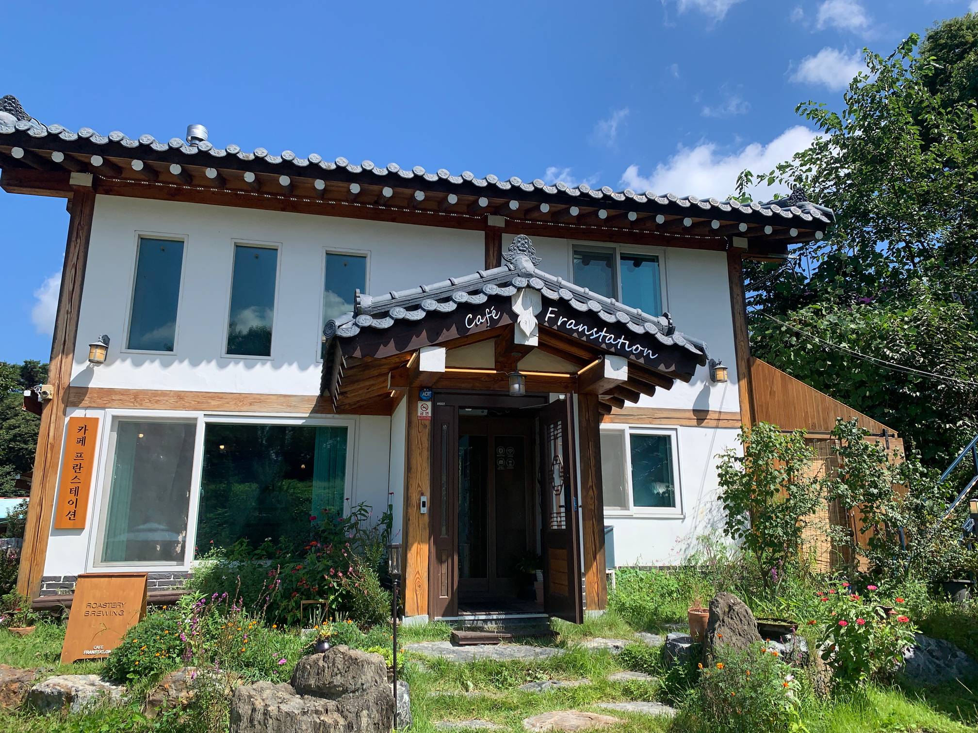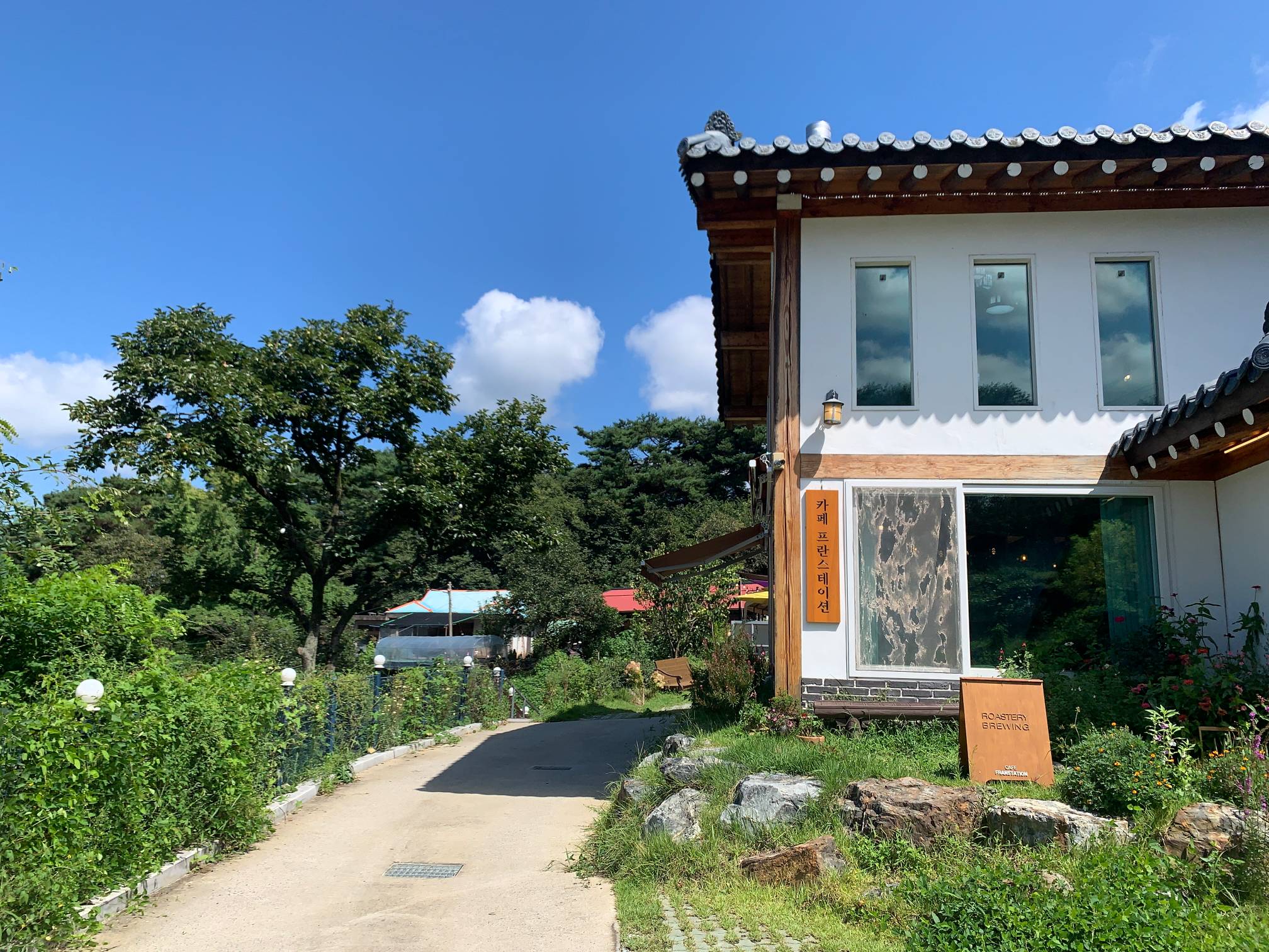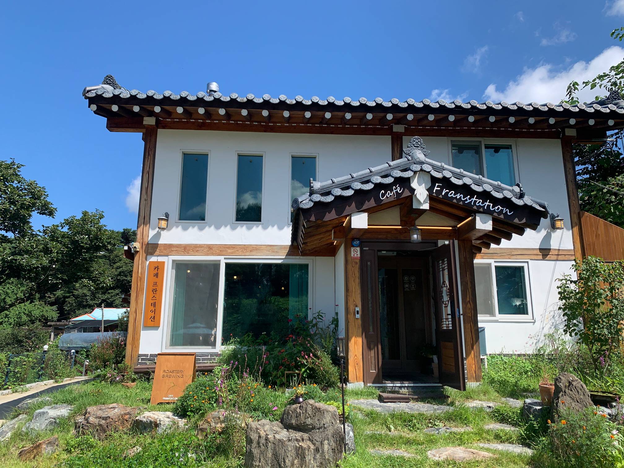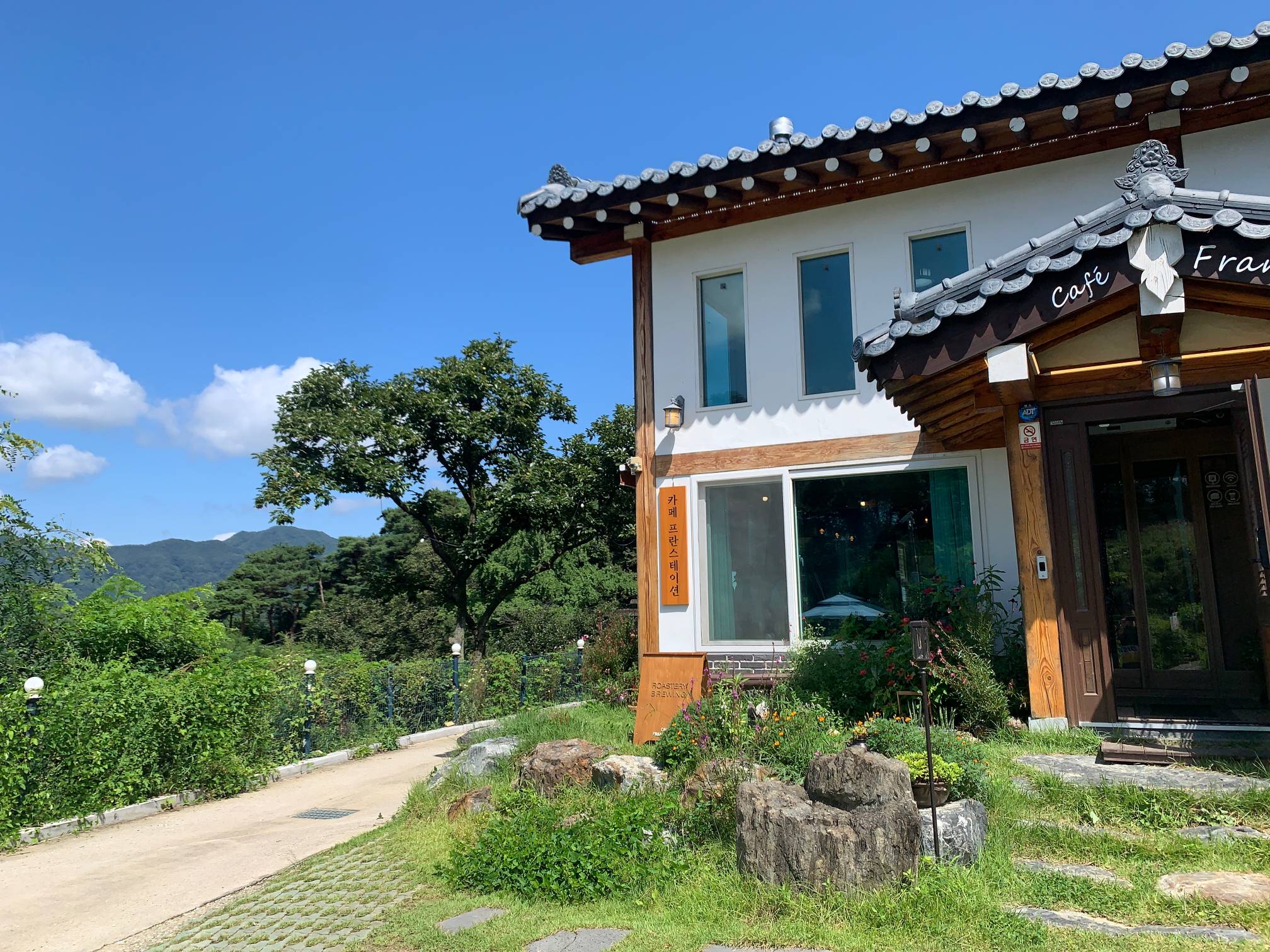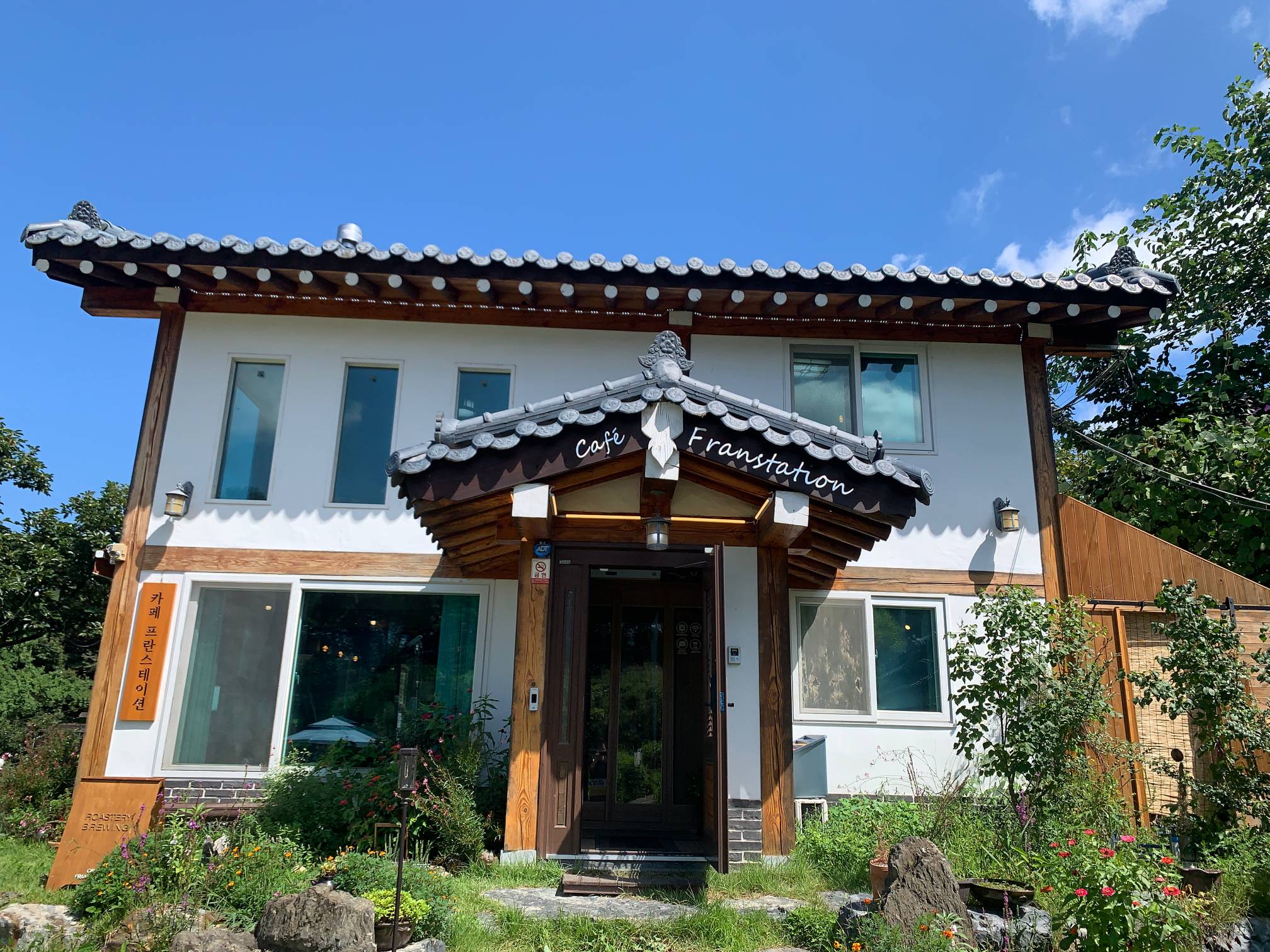 약간 한옥스러운 건물 외관을 가지고 있는데 완전히 한옥은 아니고 그냥 한옥의 느낌을 낸 카페이다.
