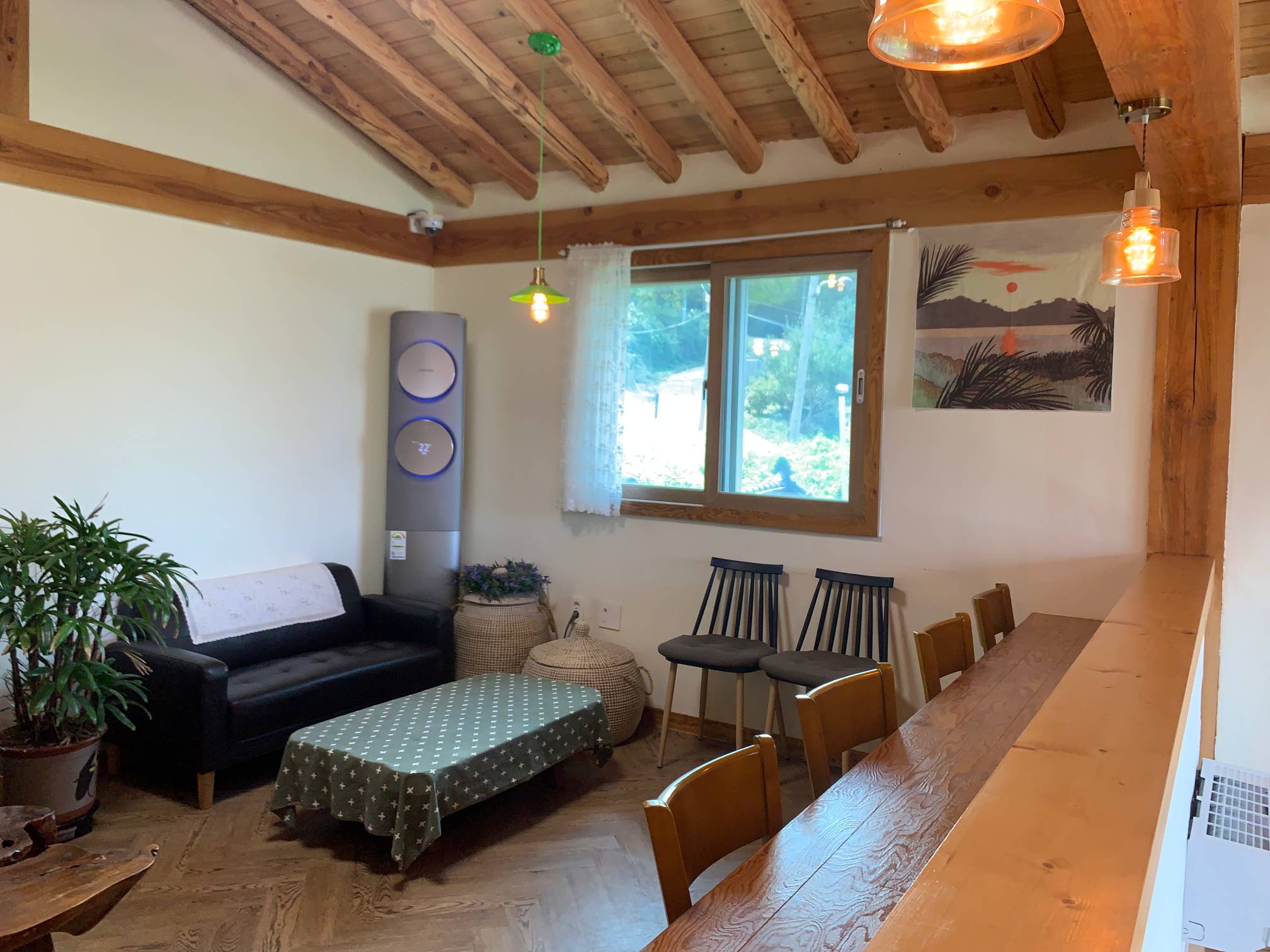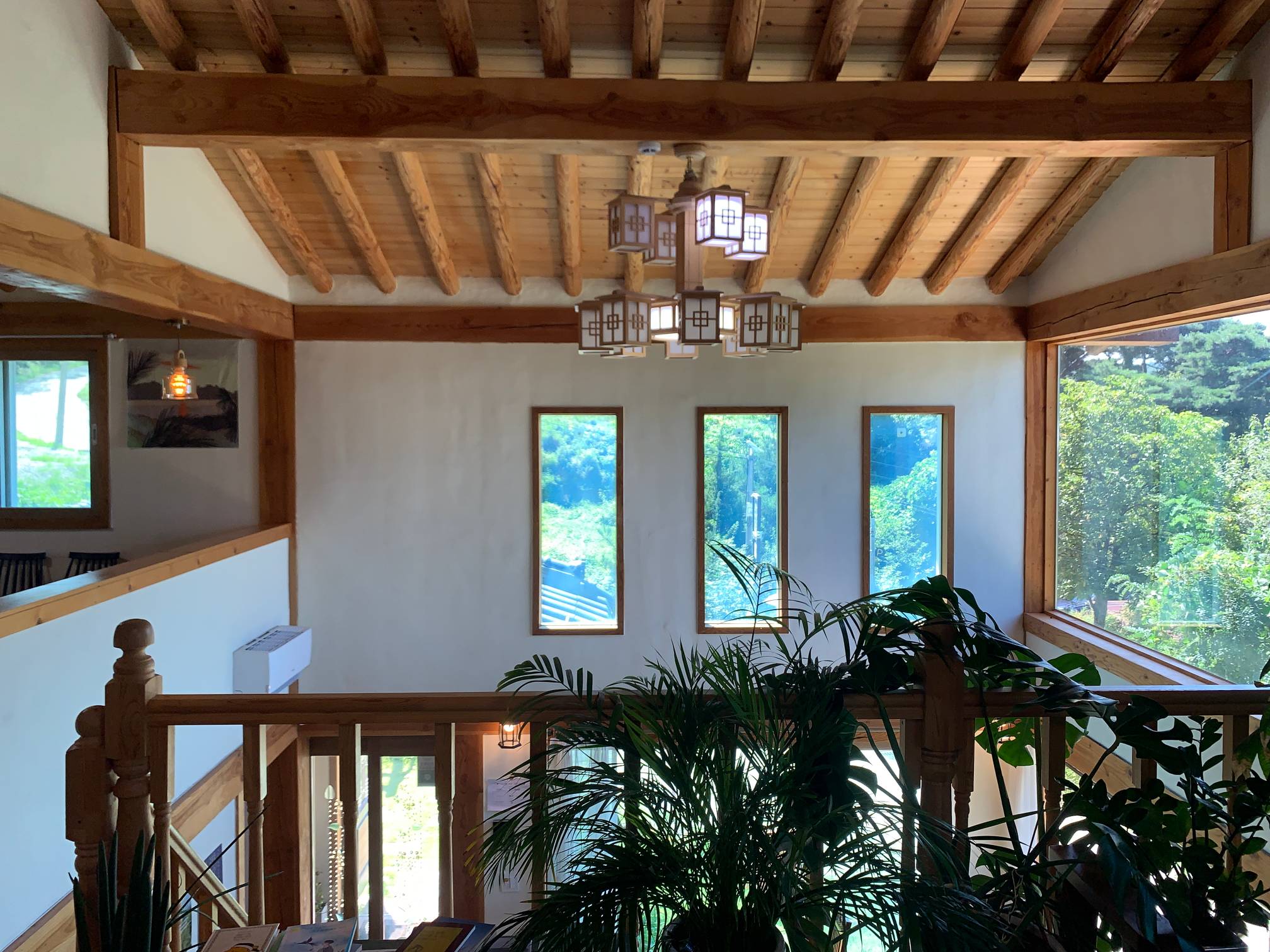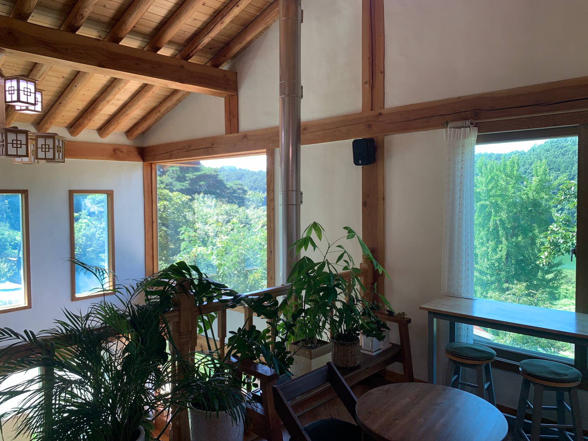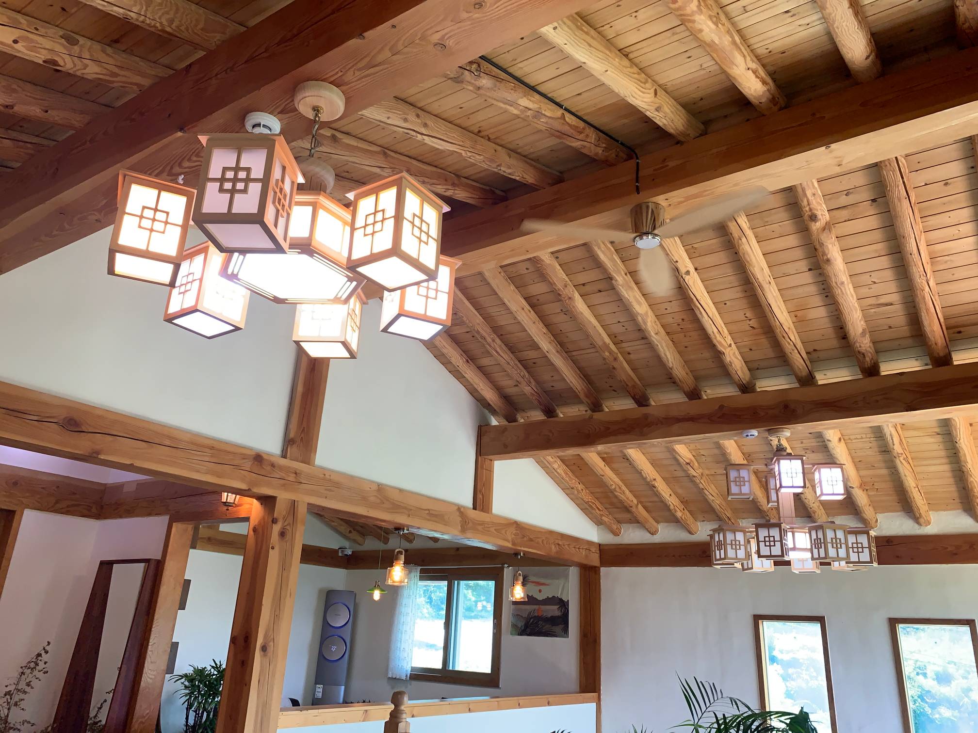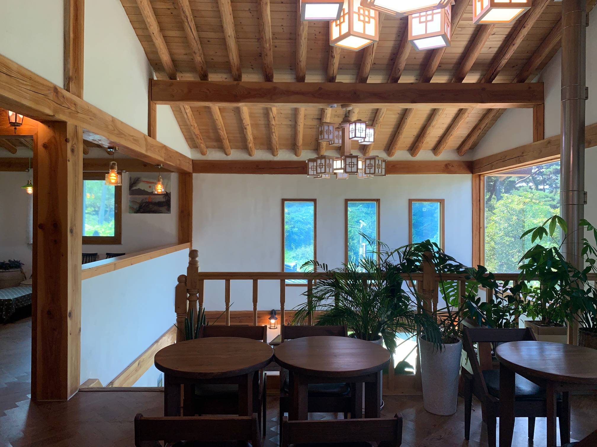 전반적으로 인테리어에 뭔가 통일성이 있지는 않은데 대체로 원목 스타일과 한옥이 잘 어우러진 느낌이 든다