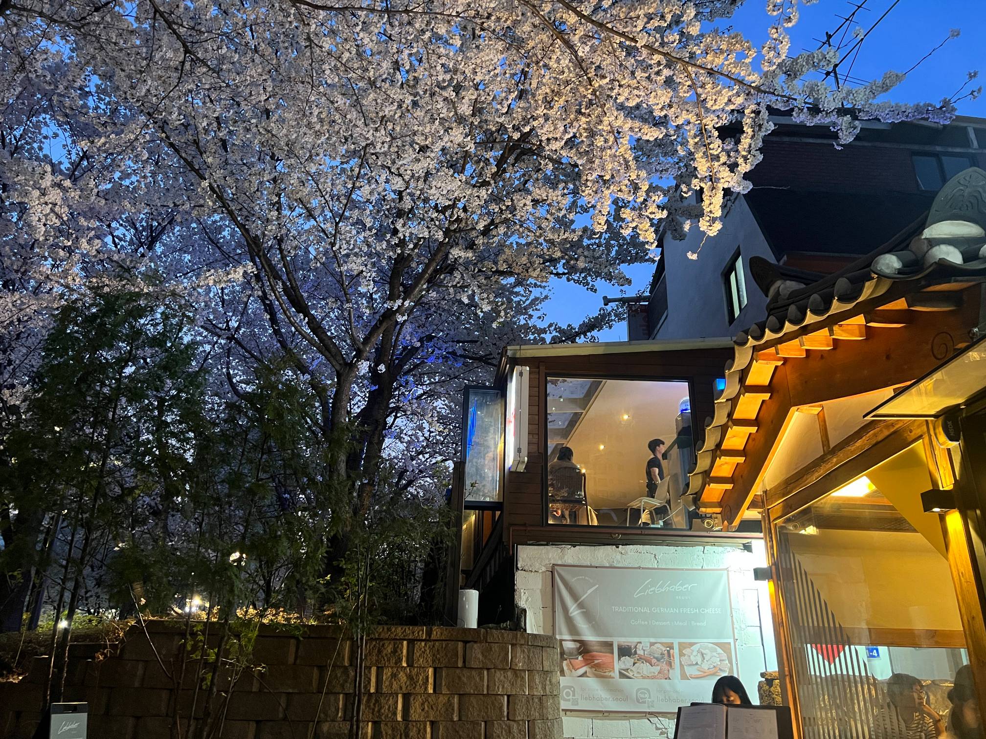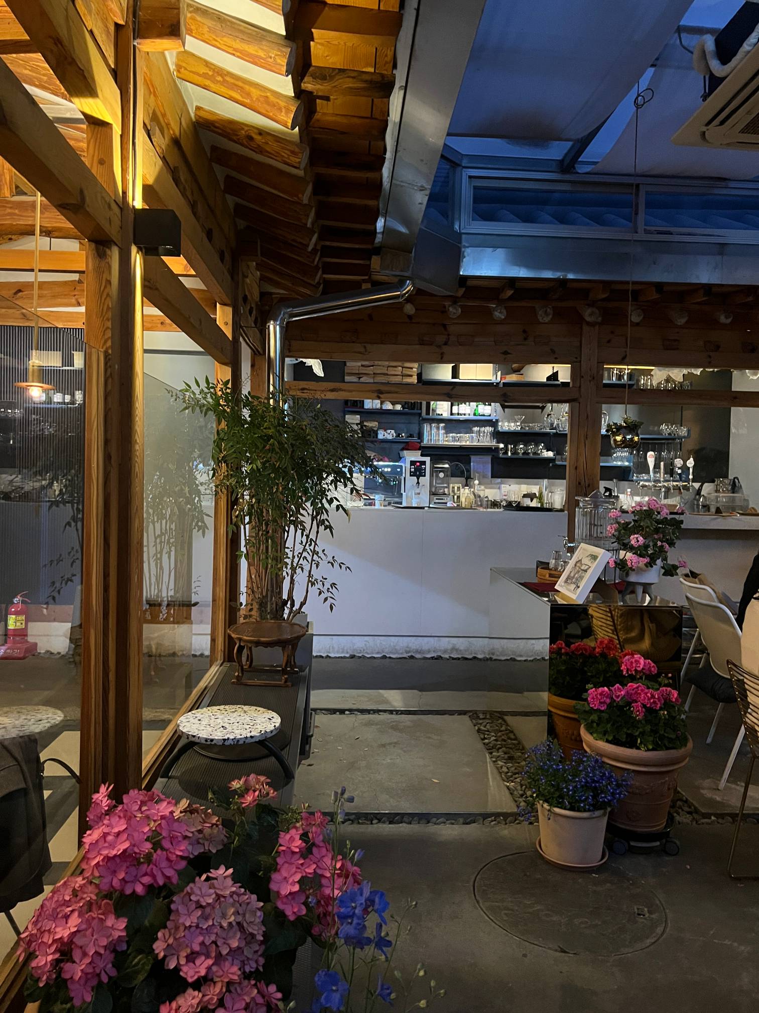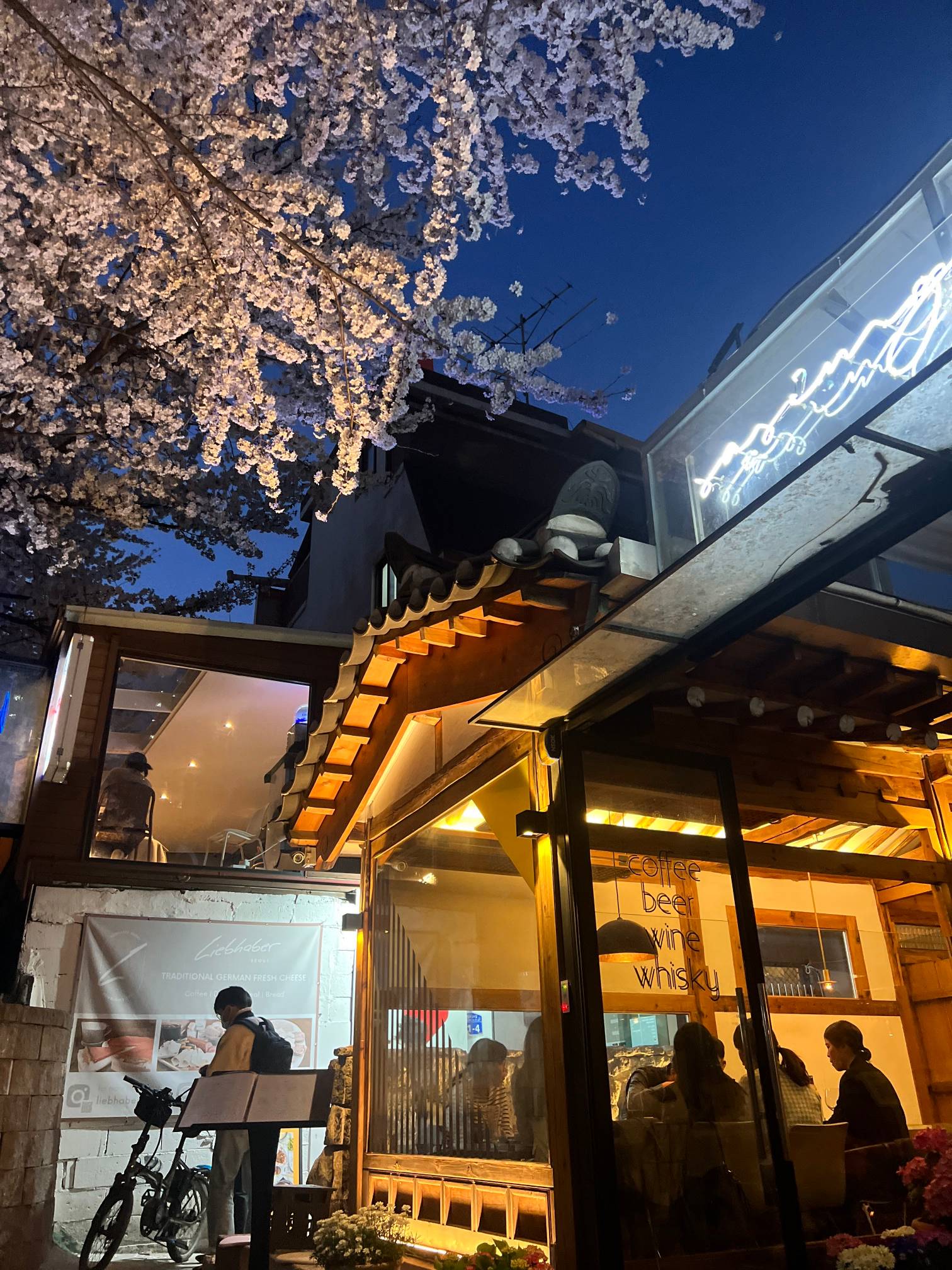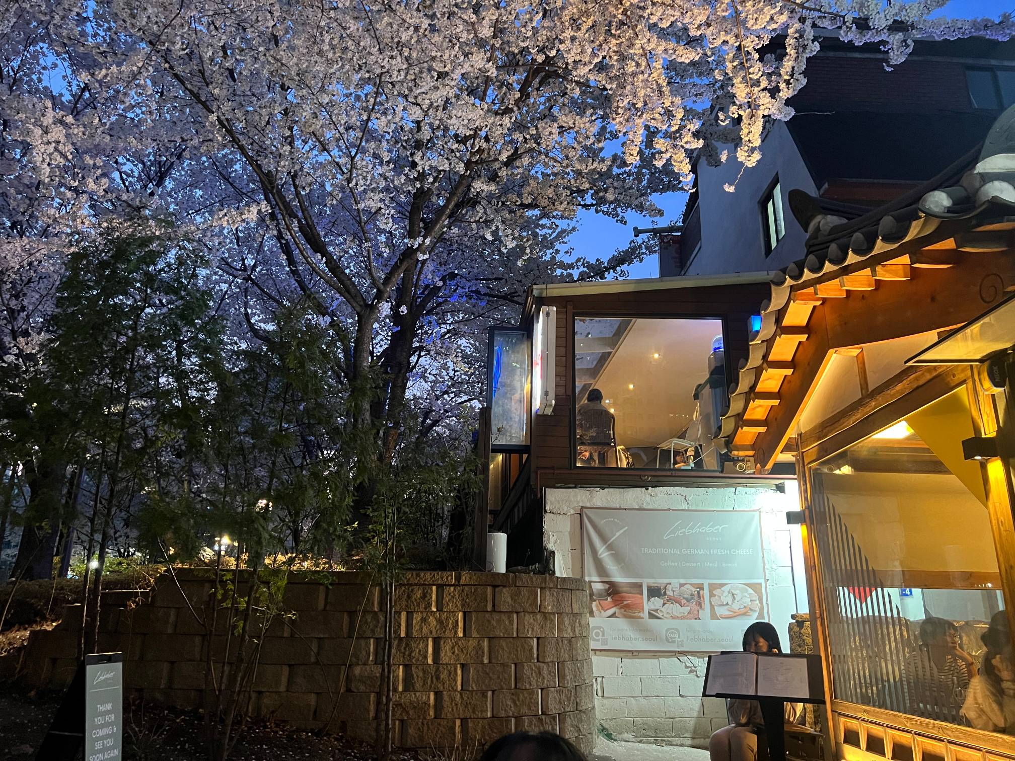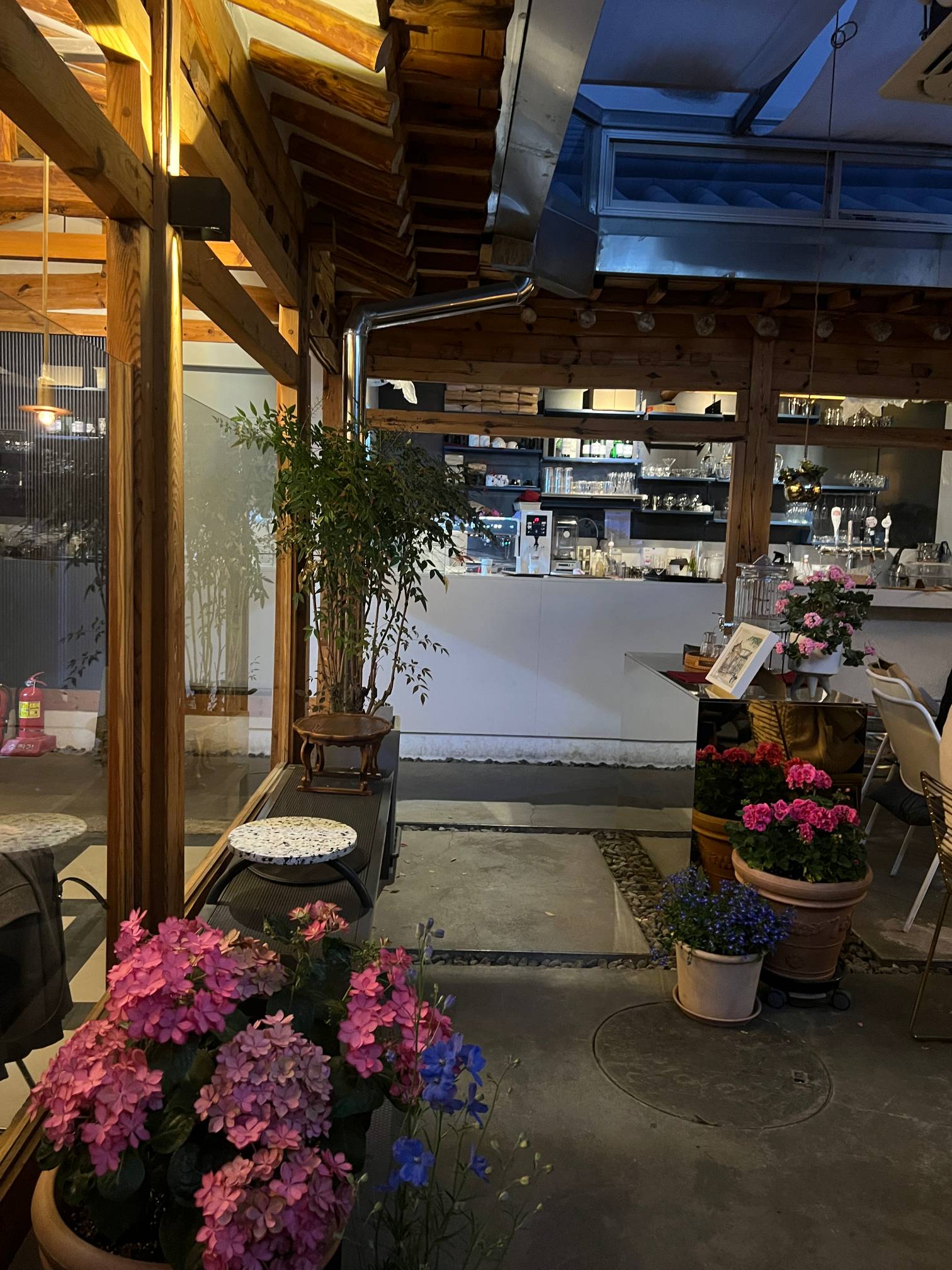전체적으로 분위기는 한옥으로 되어 있어서 굉장히 고즈넉한 느낌이 들고 꽃나무 사이에 자리하고 있기 때문에 벚꽃나무가 피는 시즌의 풍경이 굉장히 좋다.