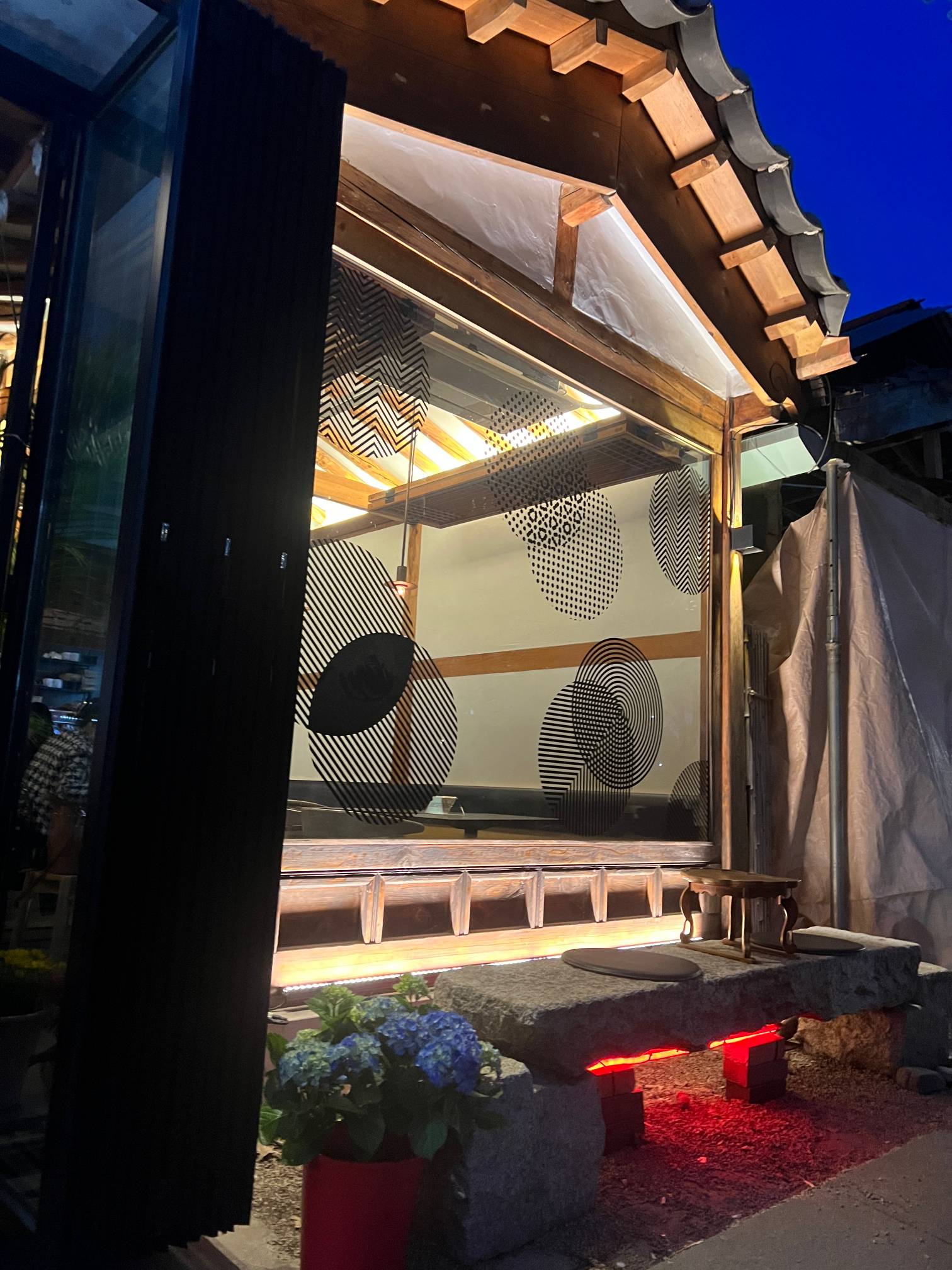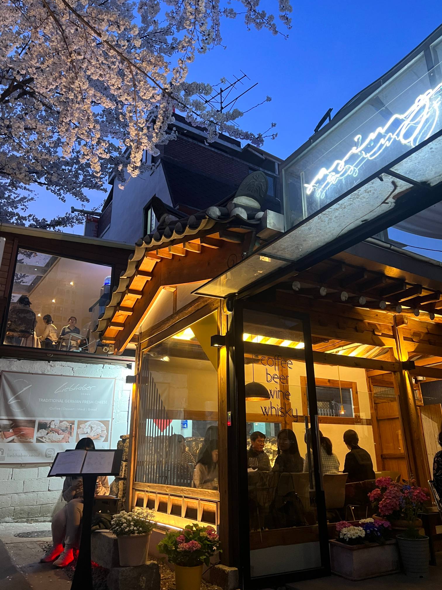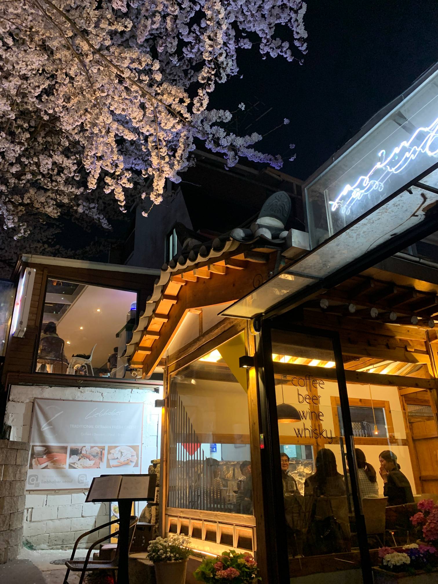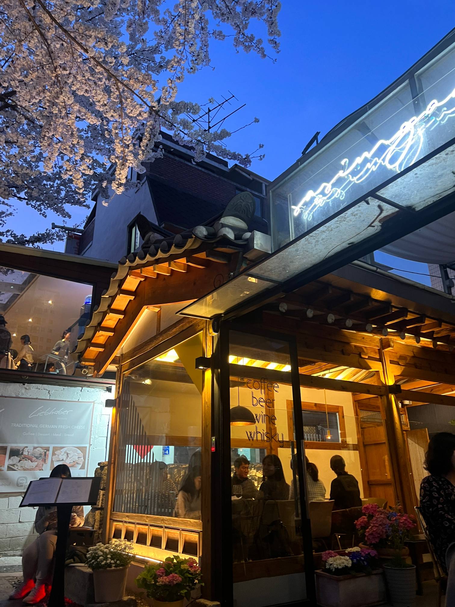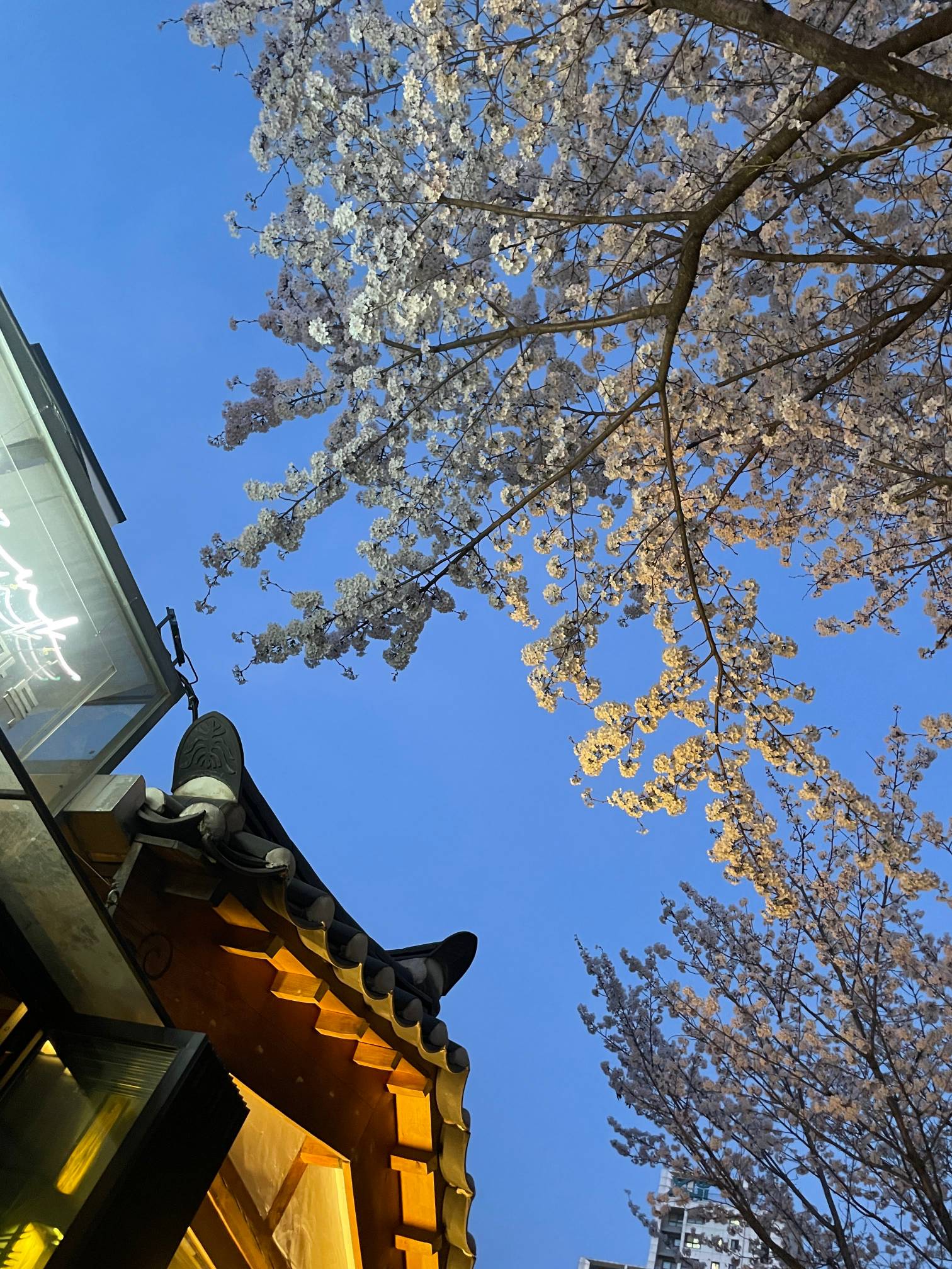 전체적으로 분위기는 한옥으로 되어 있어서 굉장히 고즈넉한 느낌이 들고 꽃나무 사이에 자리하고 있기 때문에 벚꽃나무가 피는 시즌의 풍경이 굉장히 좋다.