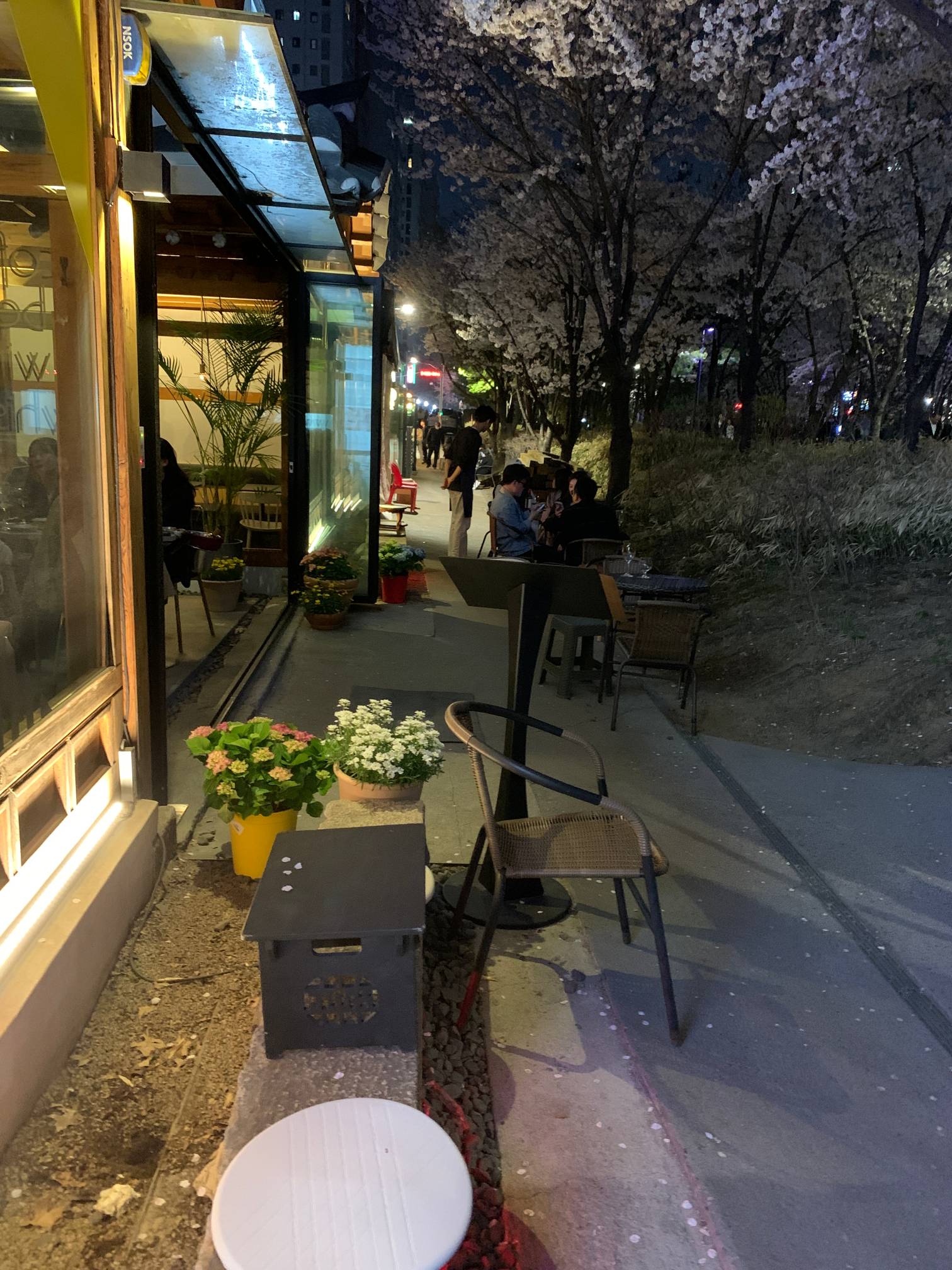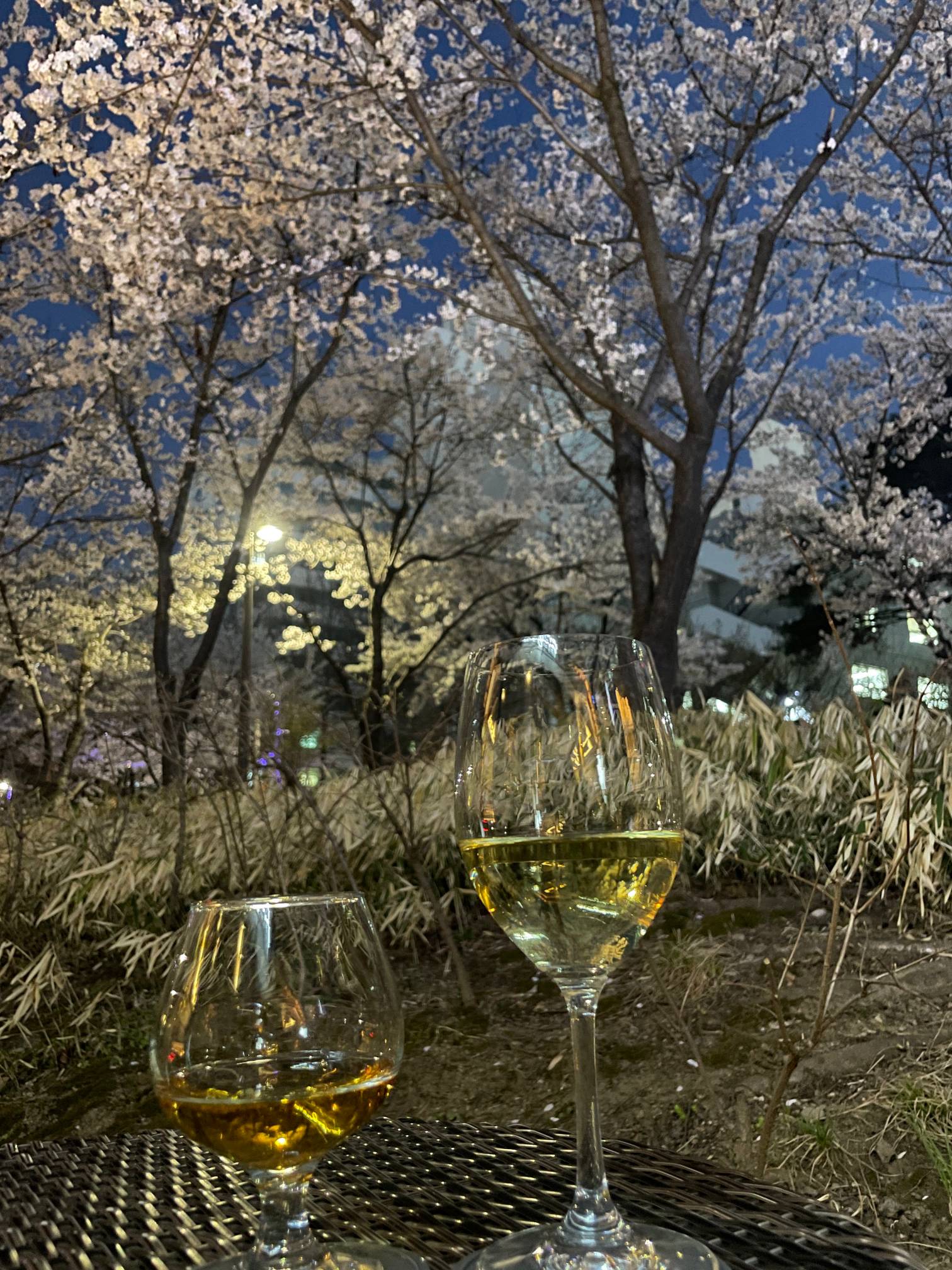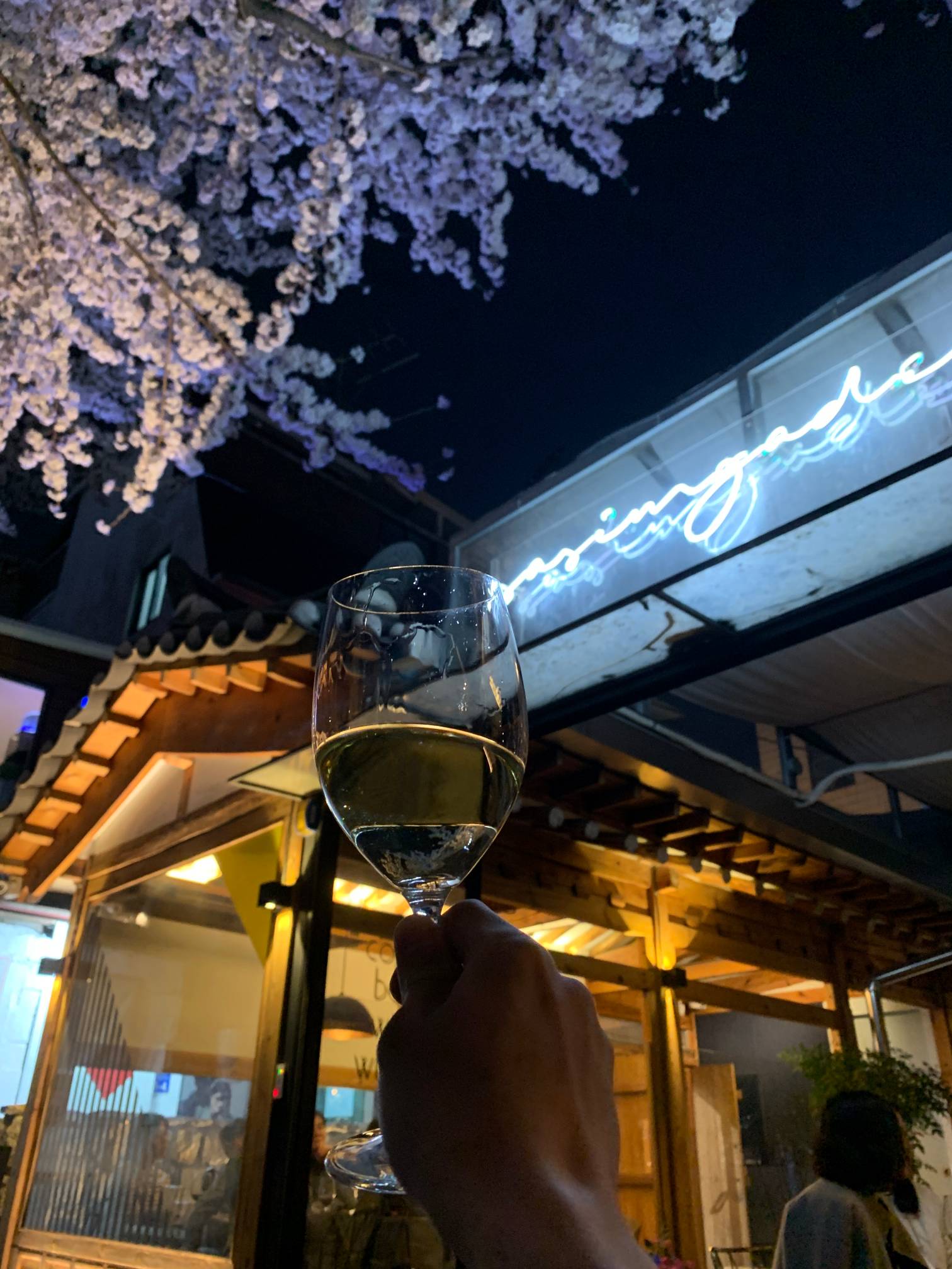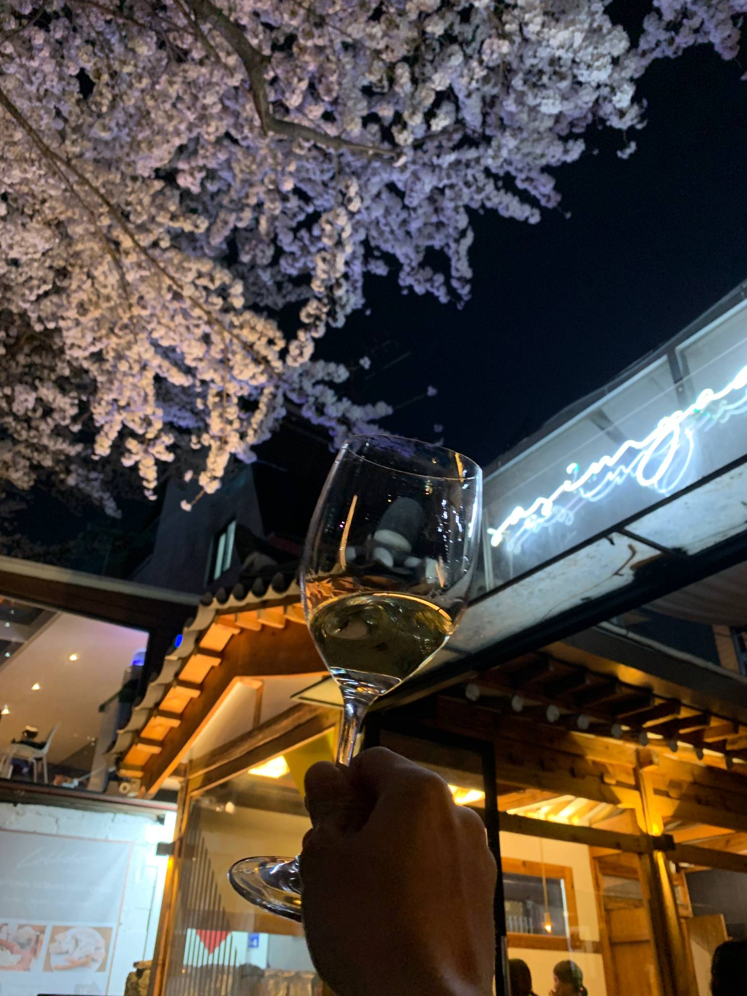 이렇게 바깥에 앉으면 벚꽃나무 바로 옆에서 와인을 한 잔 마실 수 있다 운치가 굉장히 좋다.
