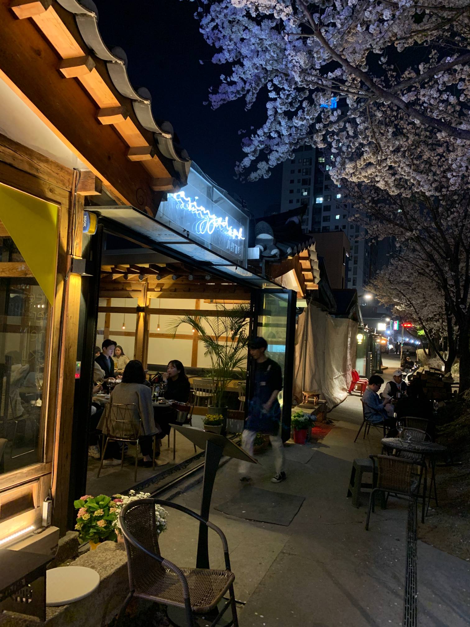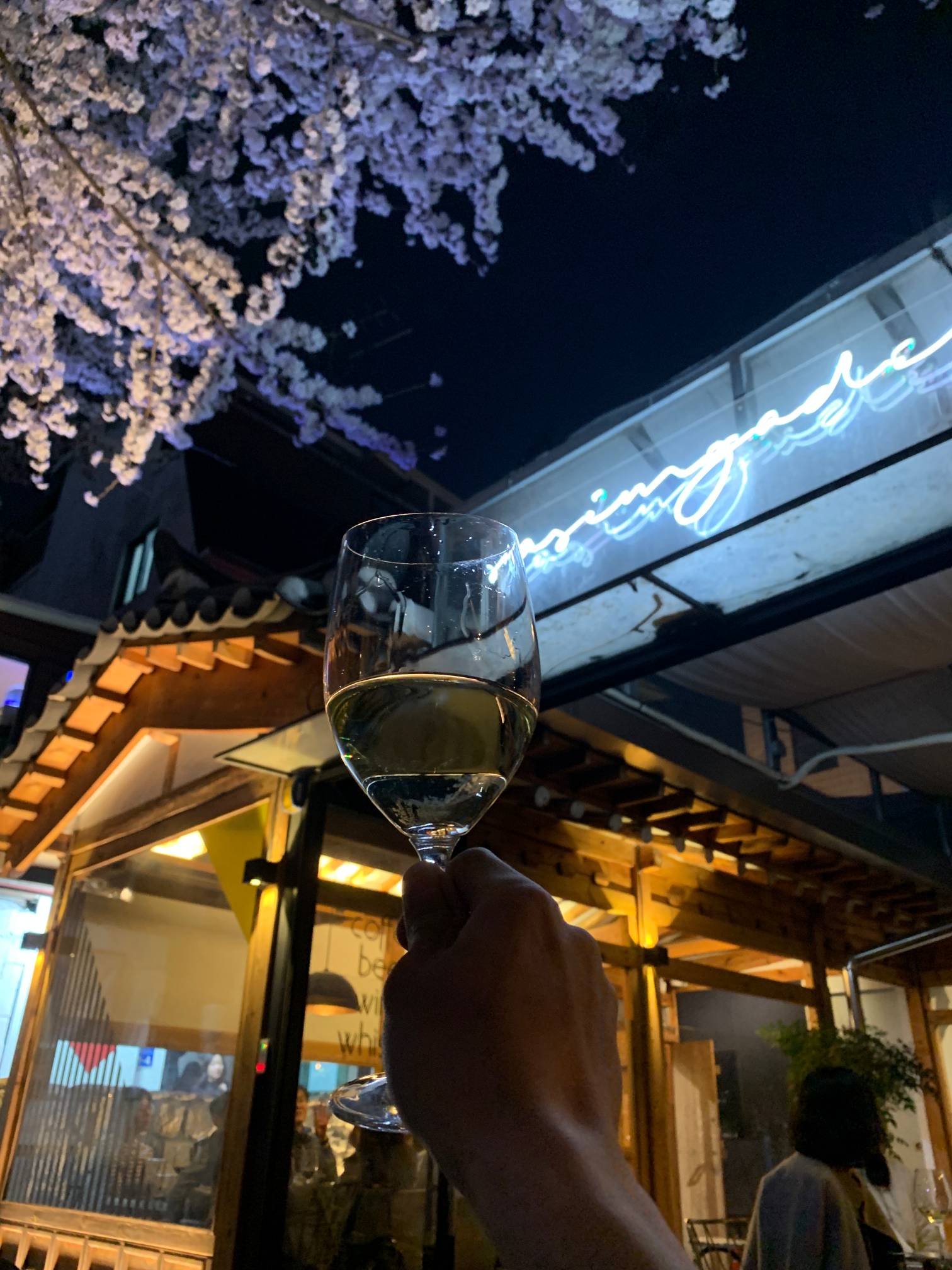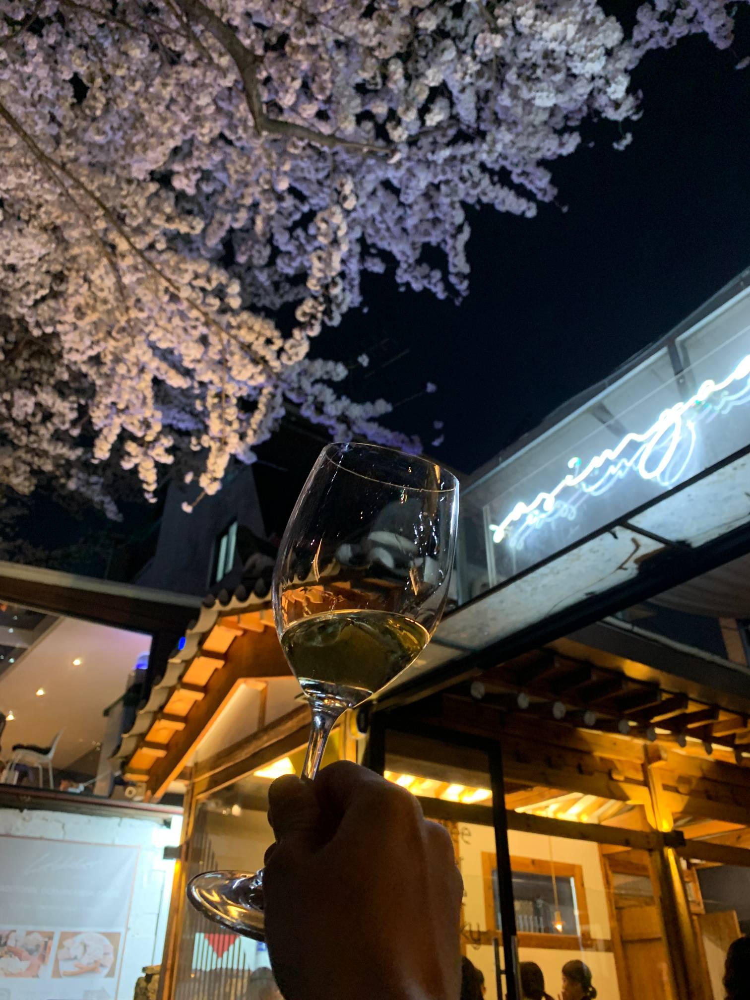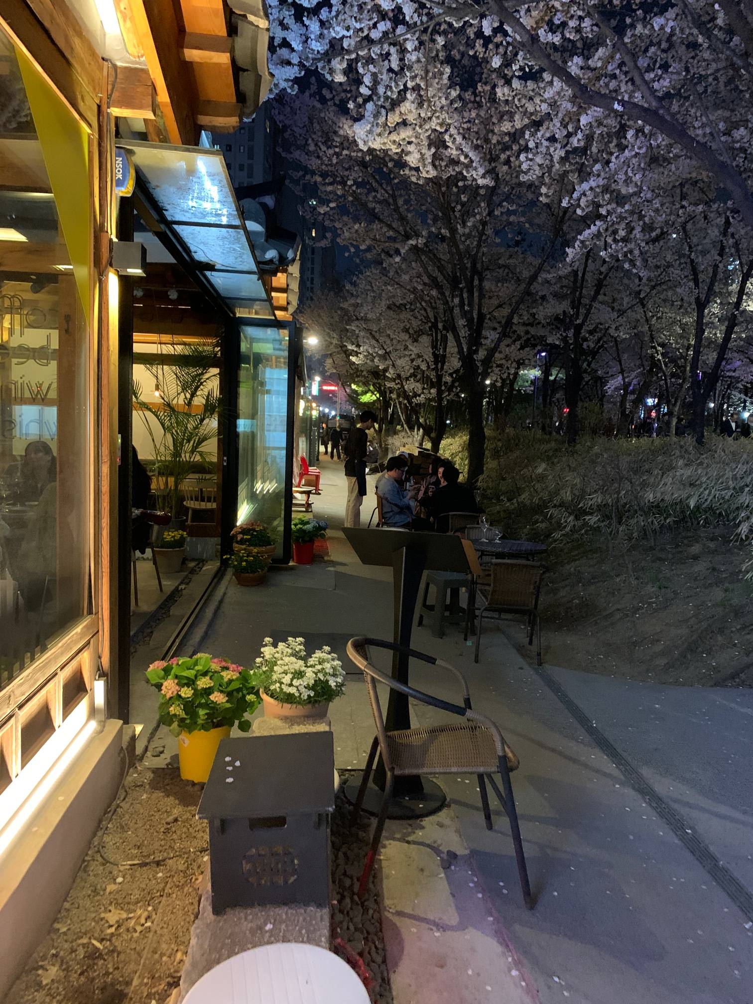 이렇게 바깥에 앉으면 벚꽃나무 바로 옆에서 와인을 한 잔 마실 수 있다 운치가 굉장히 좋다.